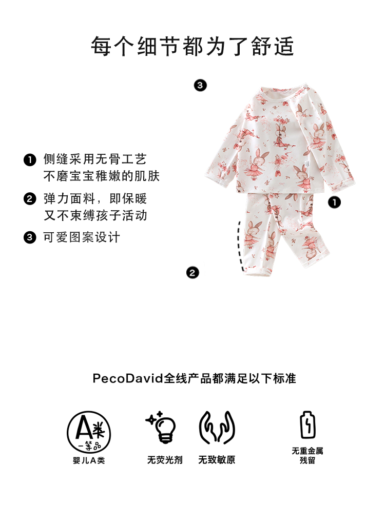 小猪大卫2025秋冬套装莱卡满印无骨内衣套装男童女宝宝秋衣秋裤