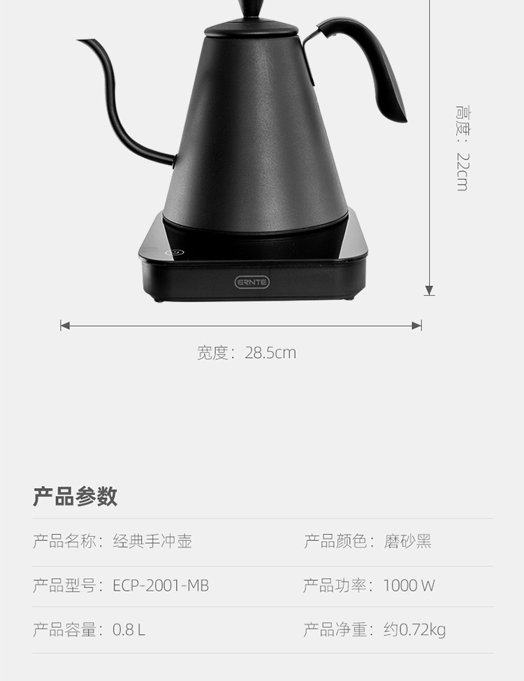德国ernte咖啡手冲壶电热烧水壶小型细嘴保温一体家用恒温保温
