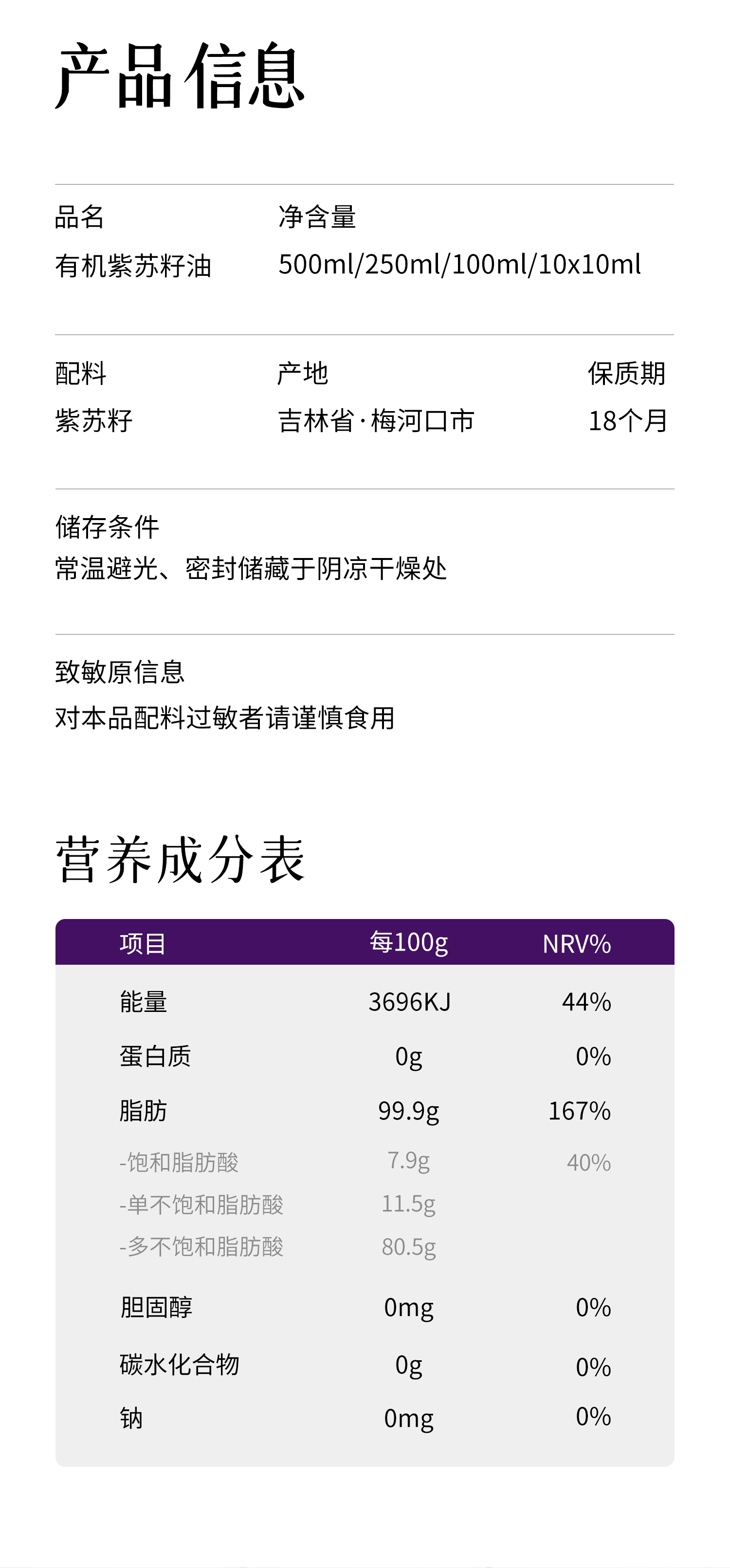 全食物日记 随身便携装有机紫苏籽油100mL(10mL*10支/盒)