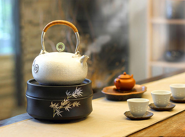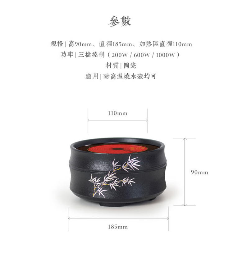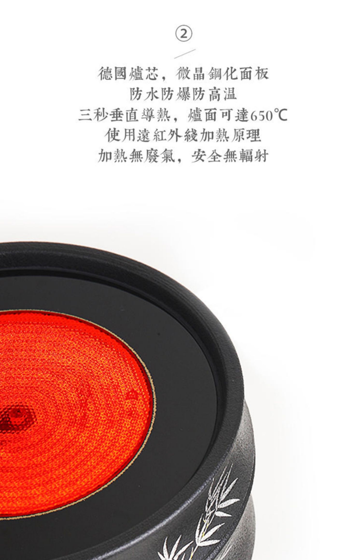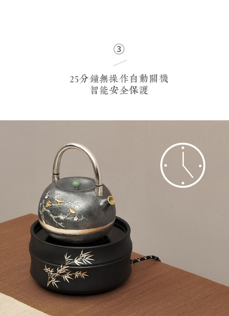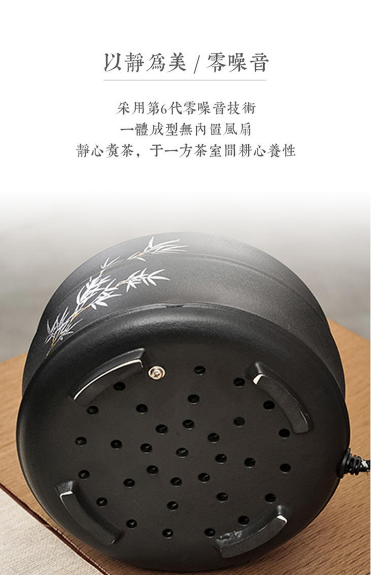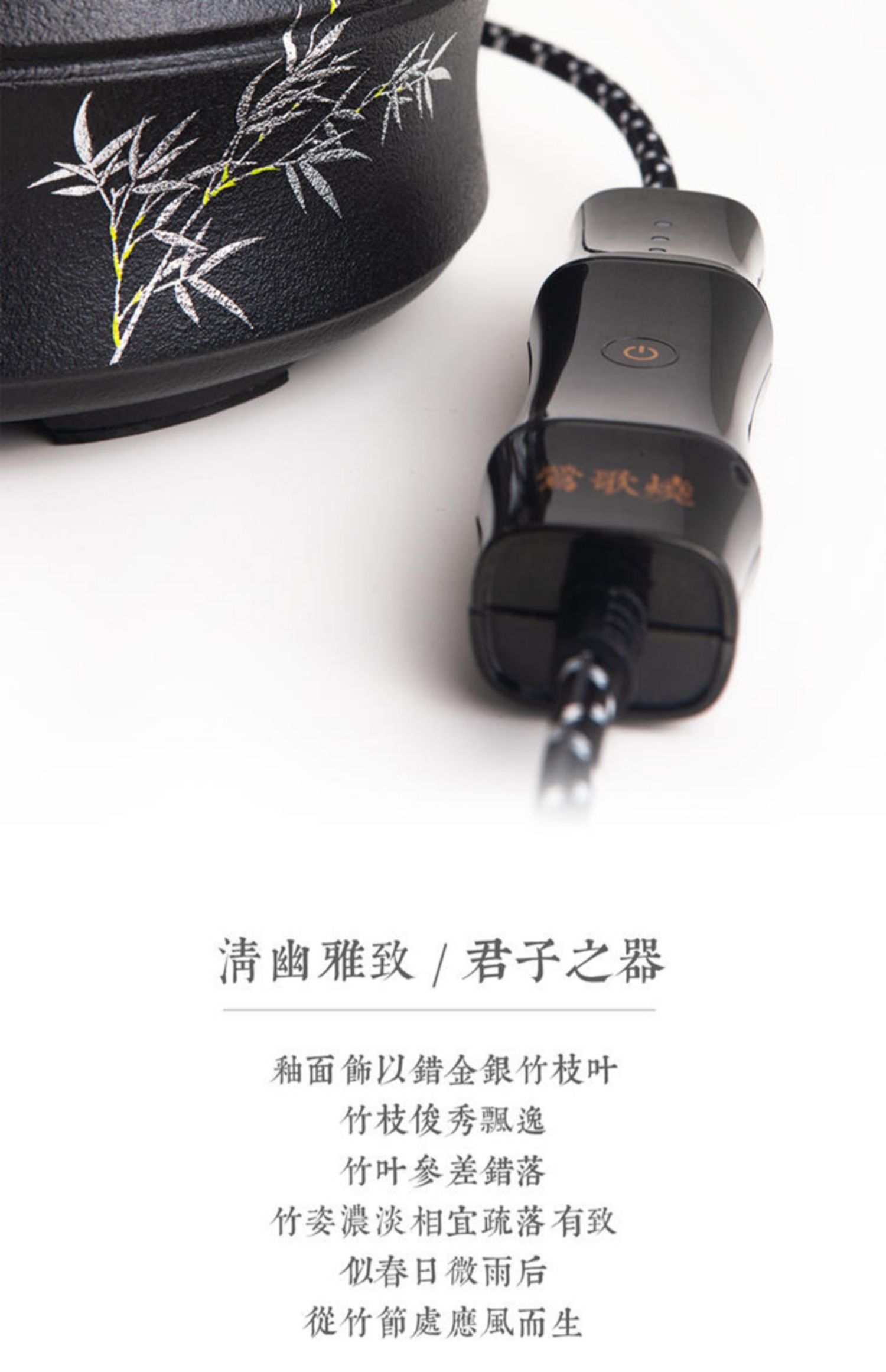 莺歌烧 电陶炉煮茶功夫茶具电茶炉小型 黑底银竹(竹节)静音无线遥控电陶炉