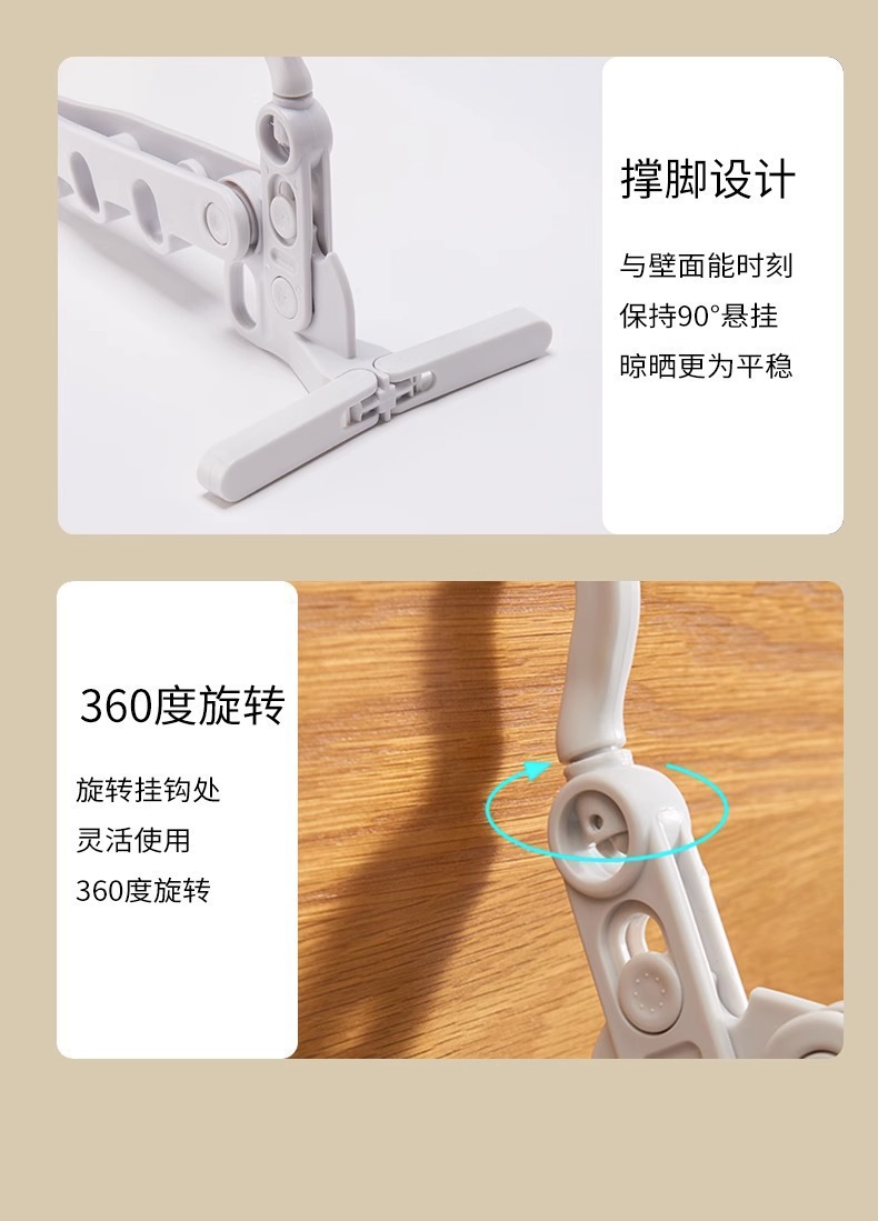 折叠免打孔晾衣架晾晒挂衣架多功能五孔衣架设计便携旅行现代简约 商品图7