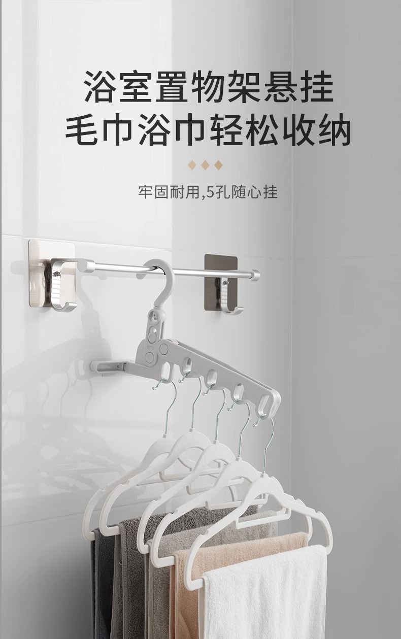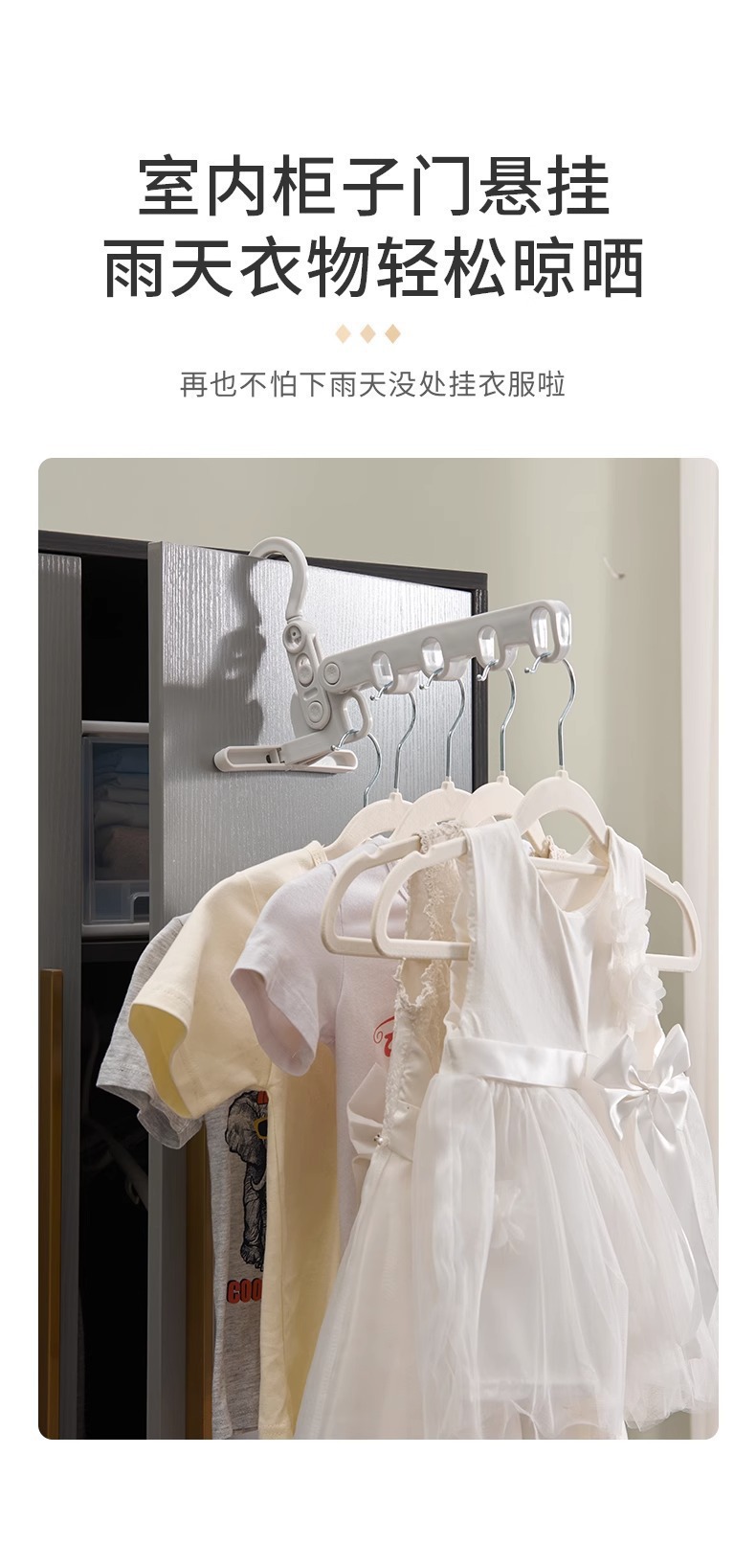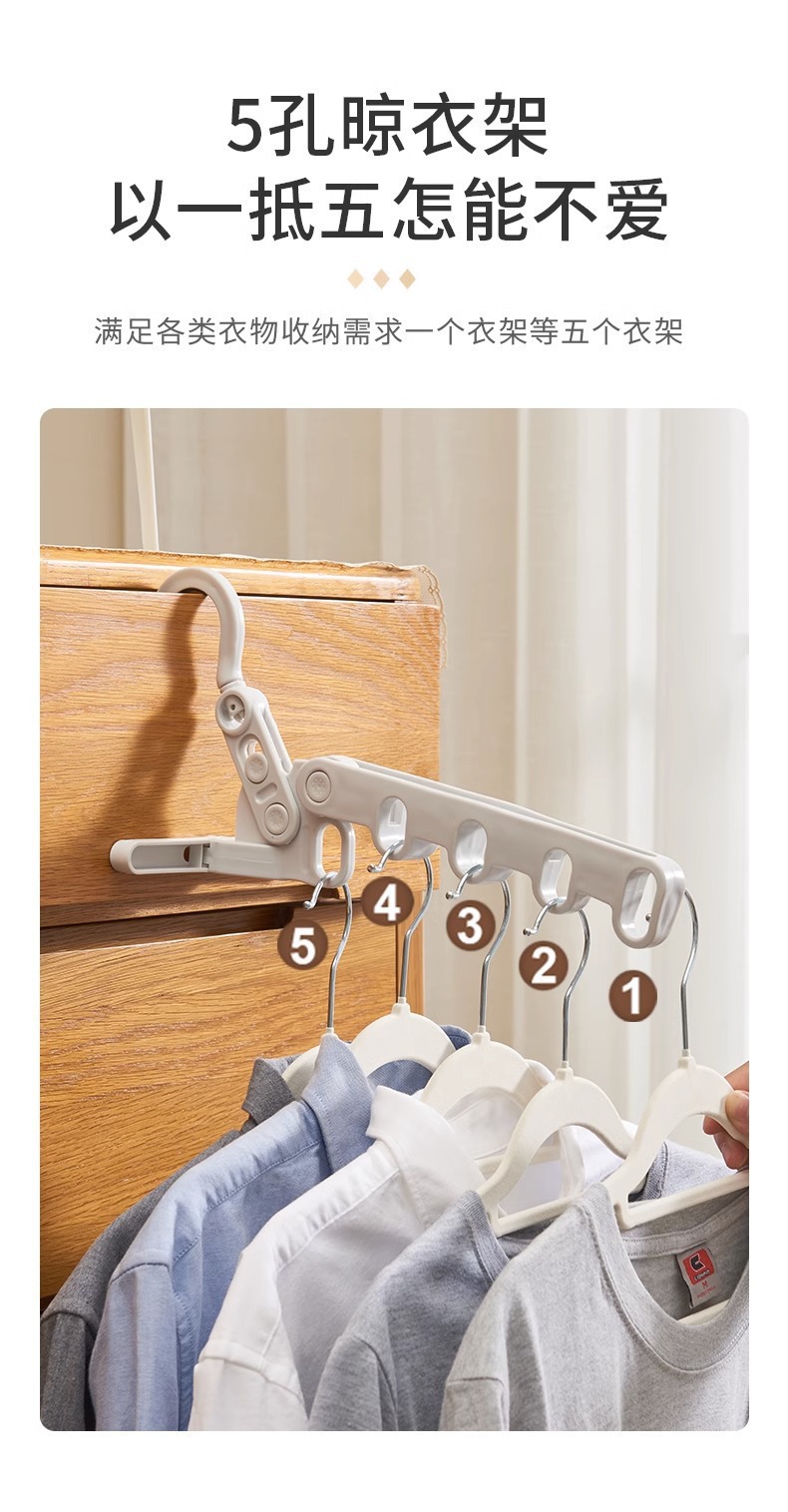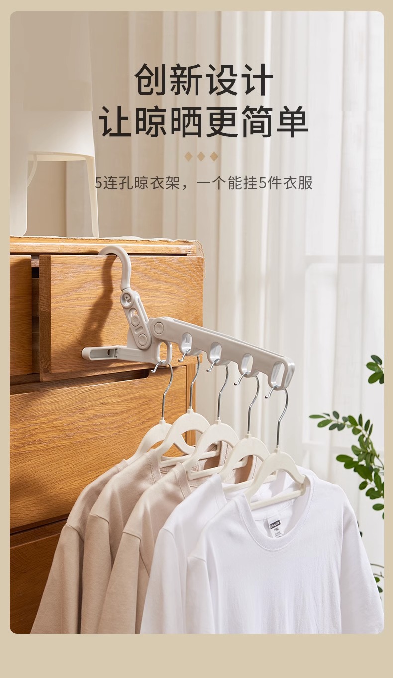 折叠免打孔晾衣架晾晒挂衣架多功能五孔衣架设计便携旅行现代简约