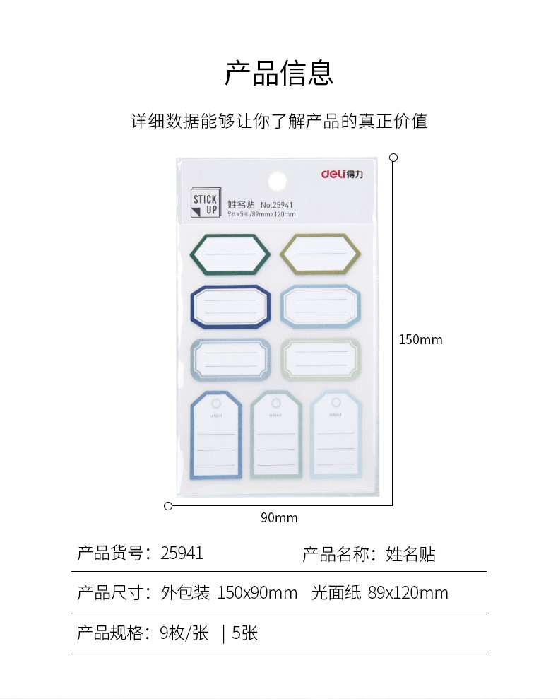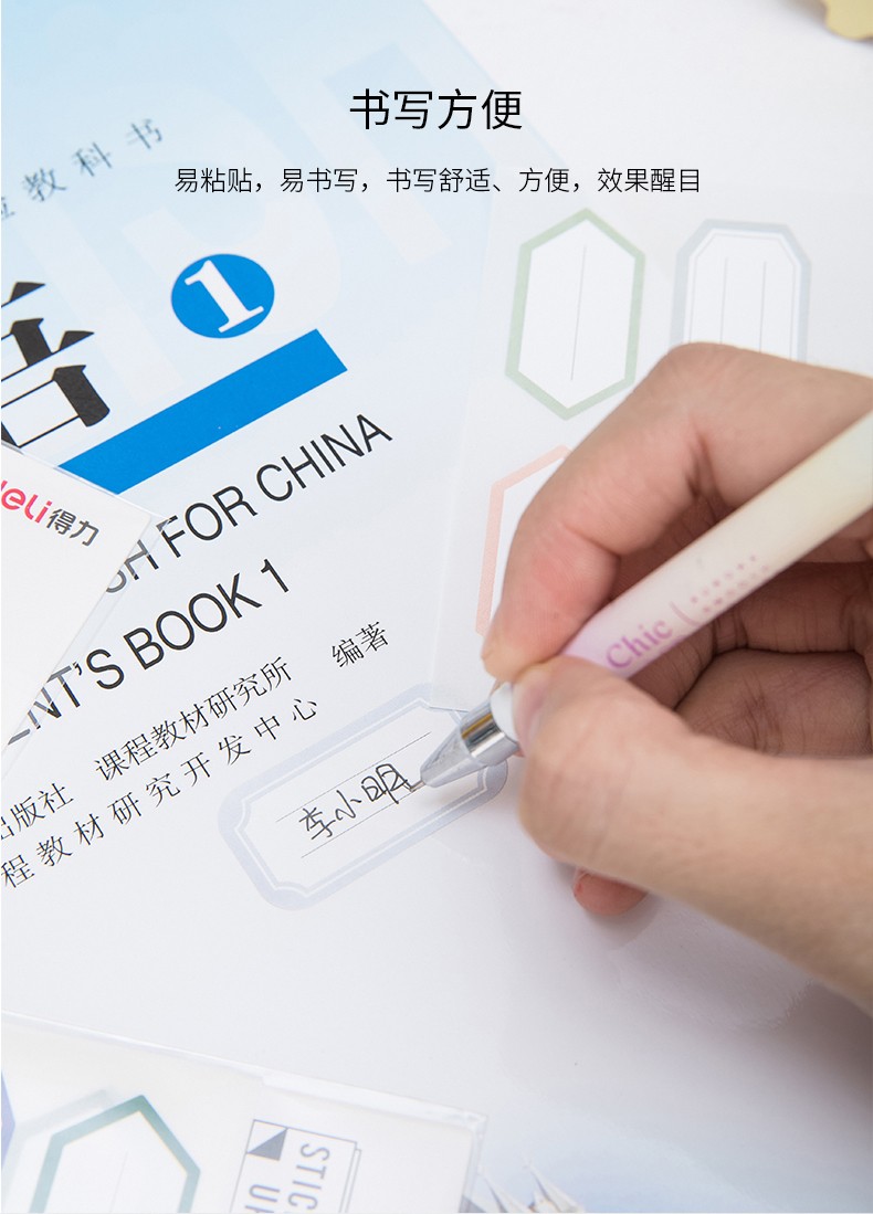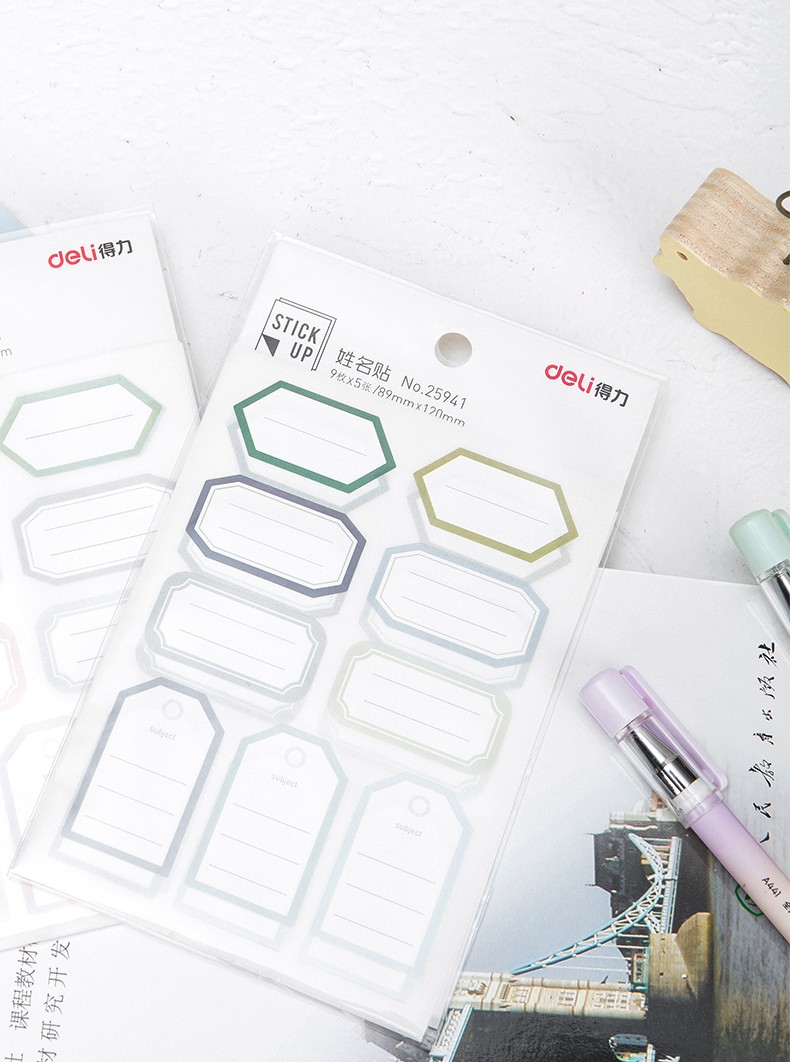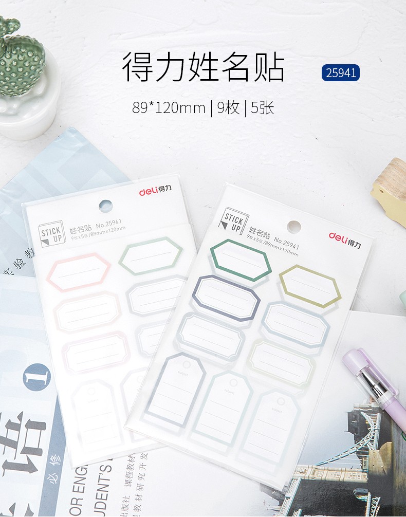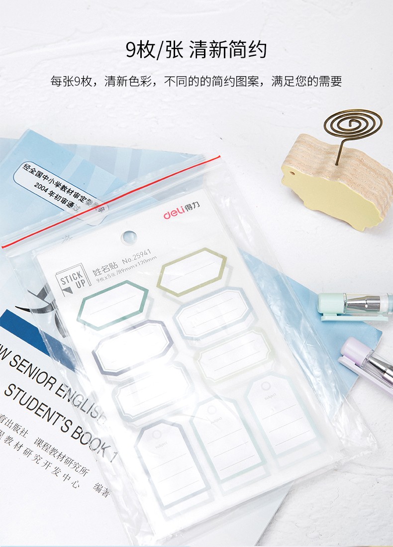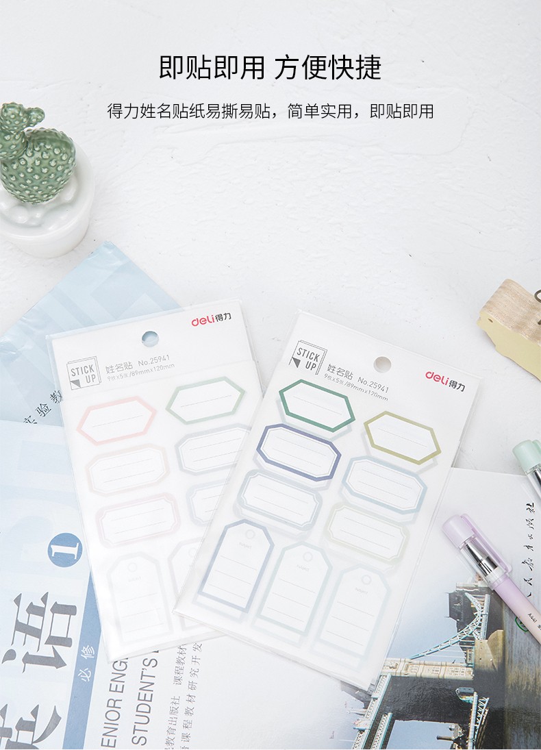 「两款可选!5包装」得力姓名贴防水名字贴不干胶防水幼儿园儿童可爱手账贴纸套装