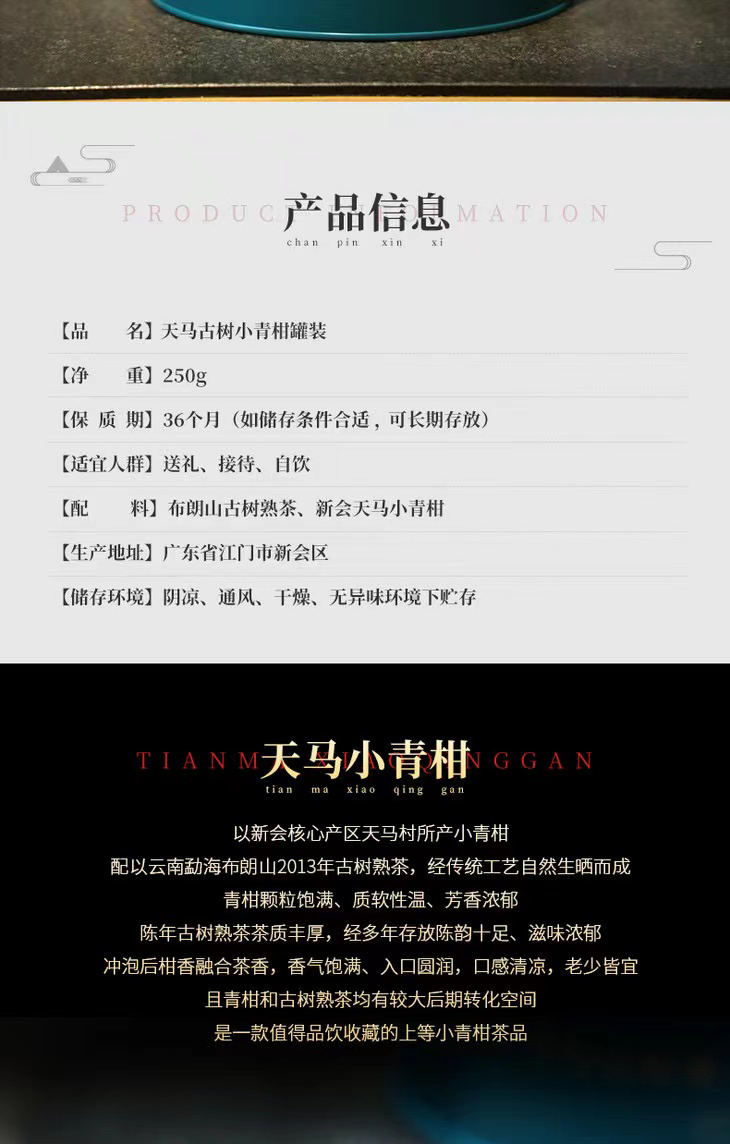 【天月柑普】天马古树小青柑罐装 新会青柑核心产区+陈年布朗山古树熟普 250g