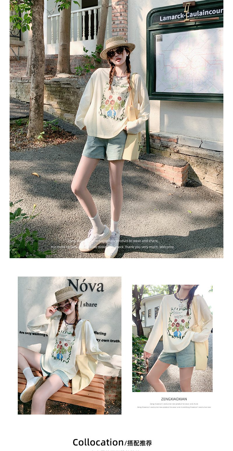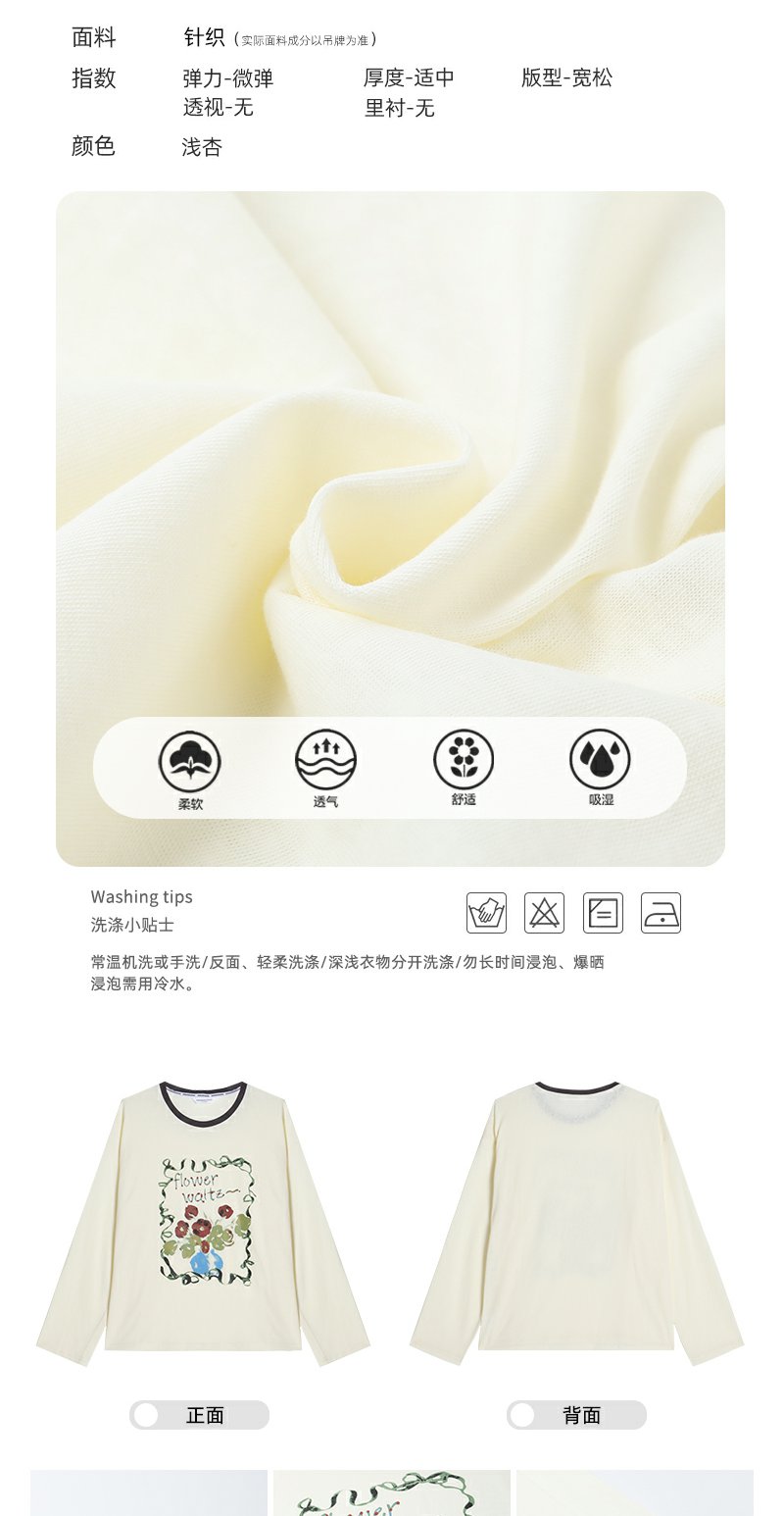 <曾小咸推荐>现货秒杀!最后一波 !抢到赚到!杏色花朵印花撞色圆领长袖 日常129.99 立减70 秒杀59.99!