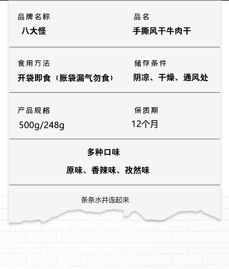 新疆八大怪手撕牛肉干 孜然500g【XPTX】