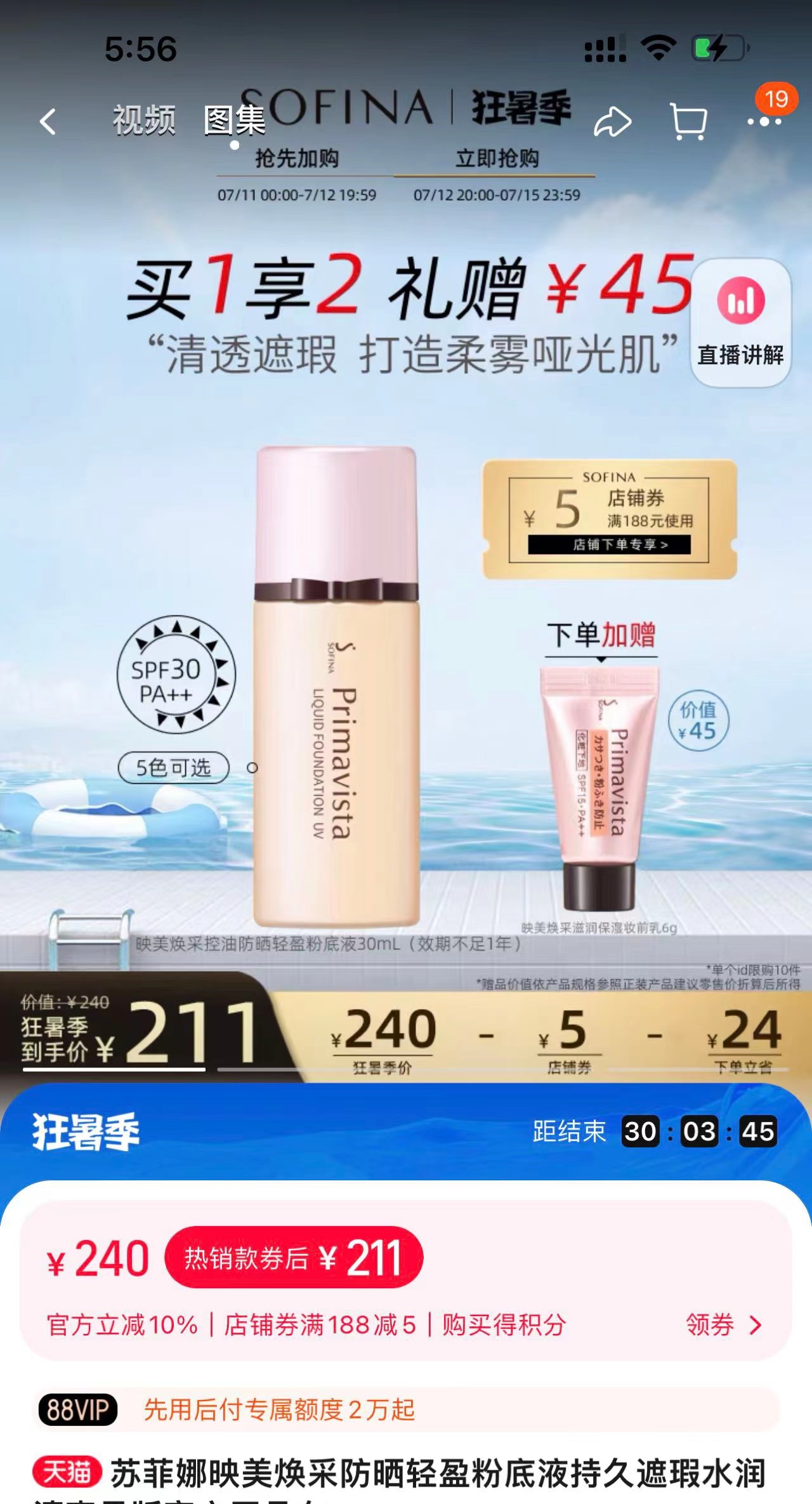 【商品名称】SOFINA控油防晒轻盈粉底液30ml #OC03