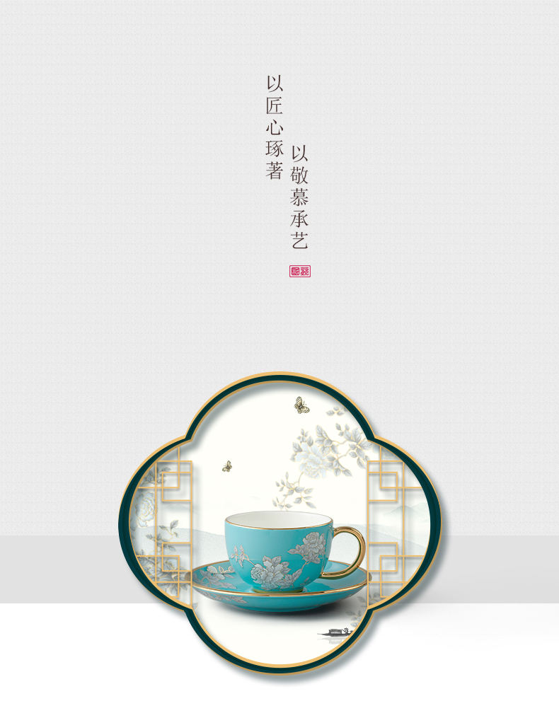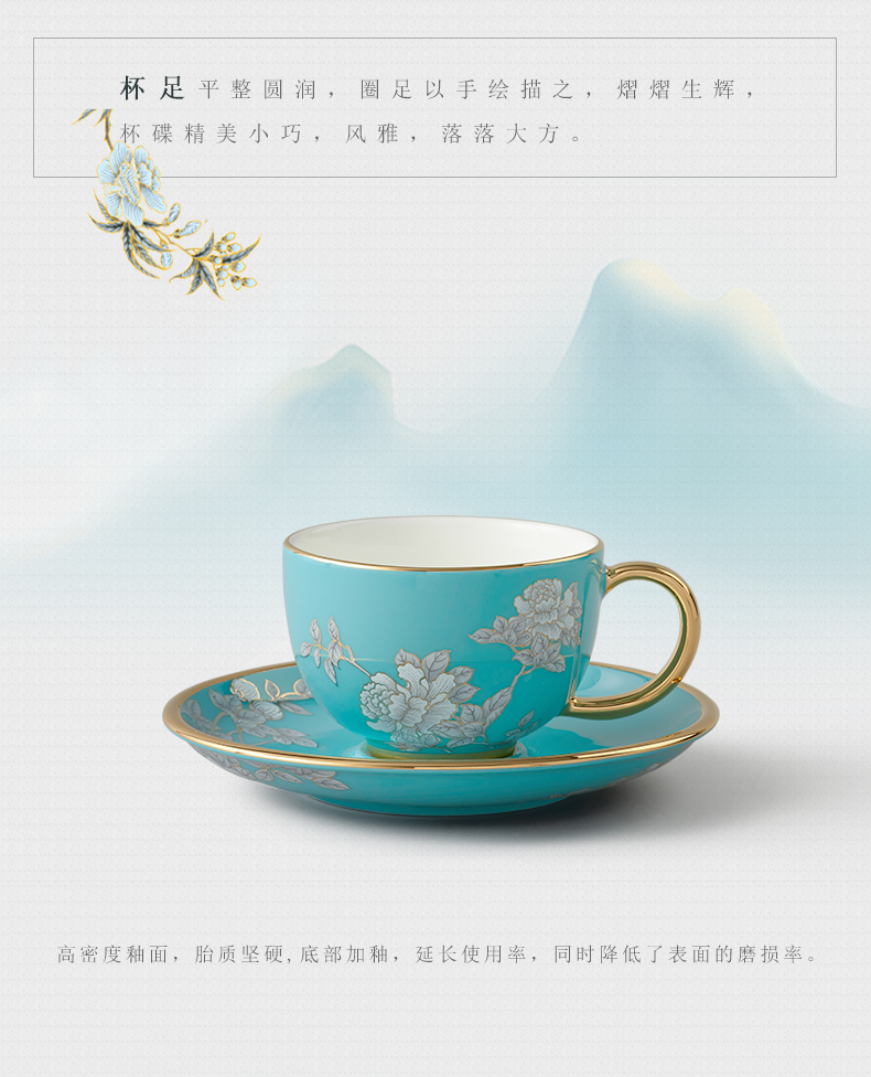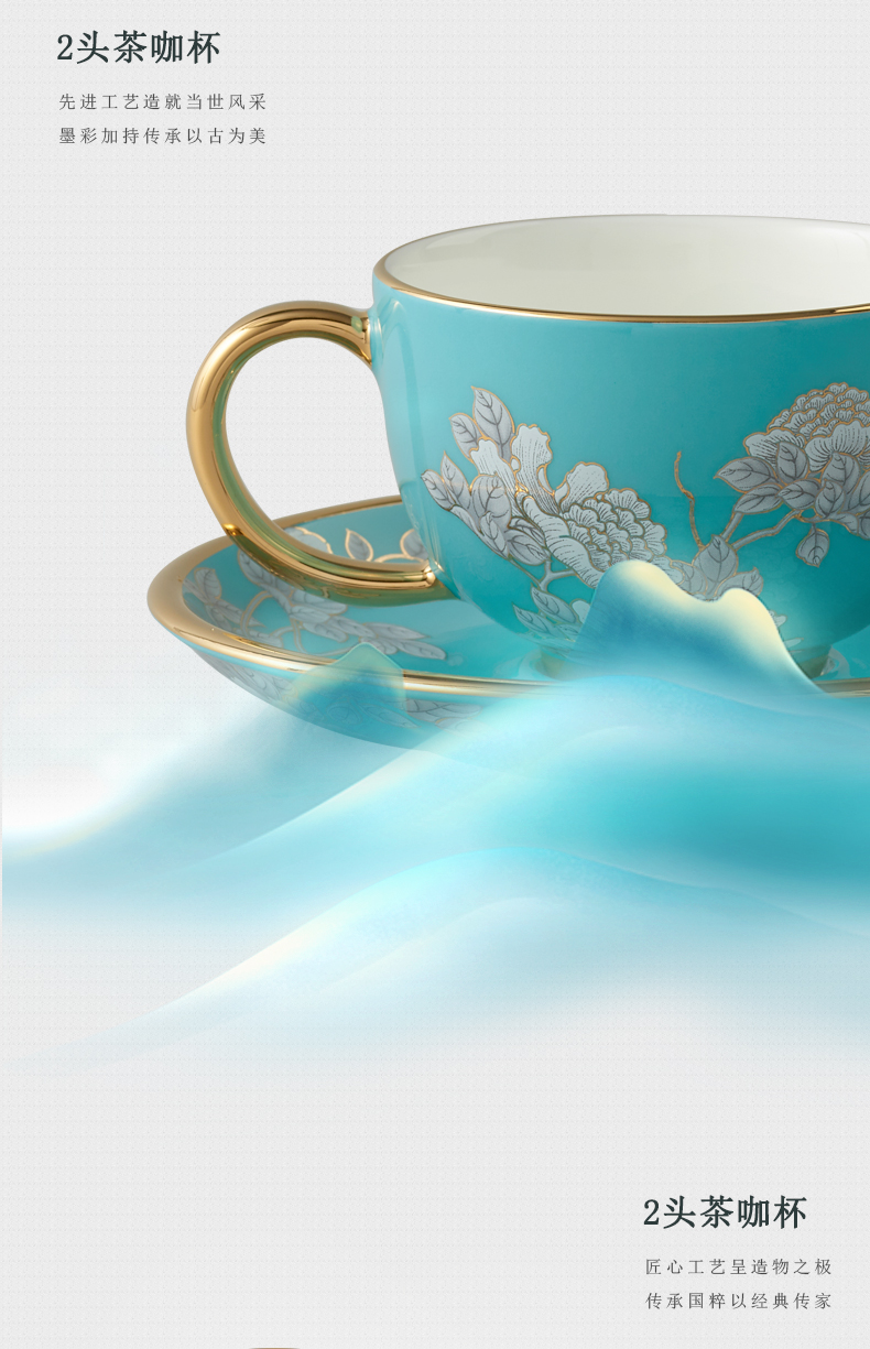水墨牡丹2头咖啡杯