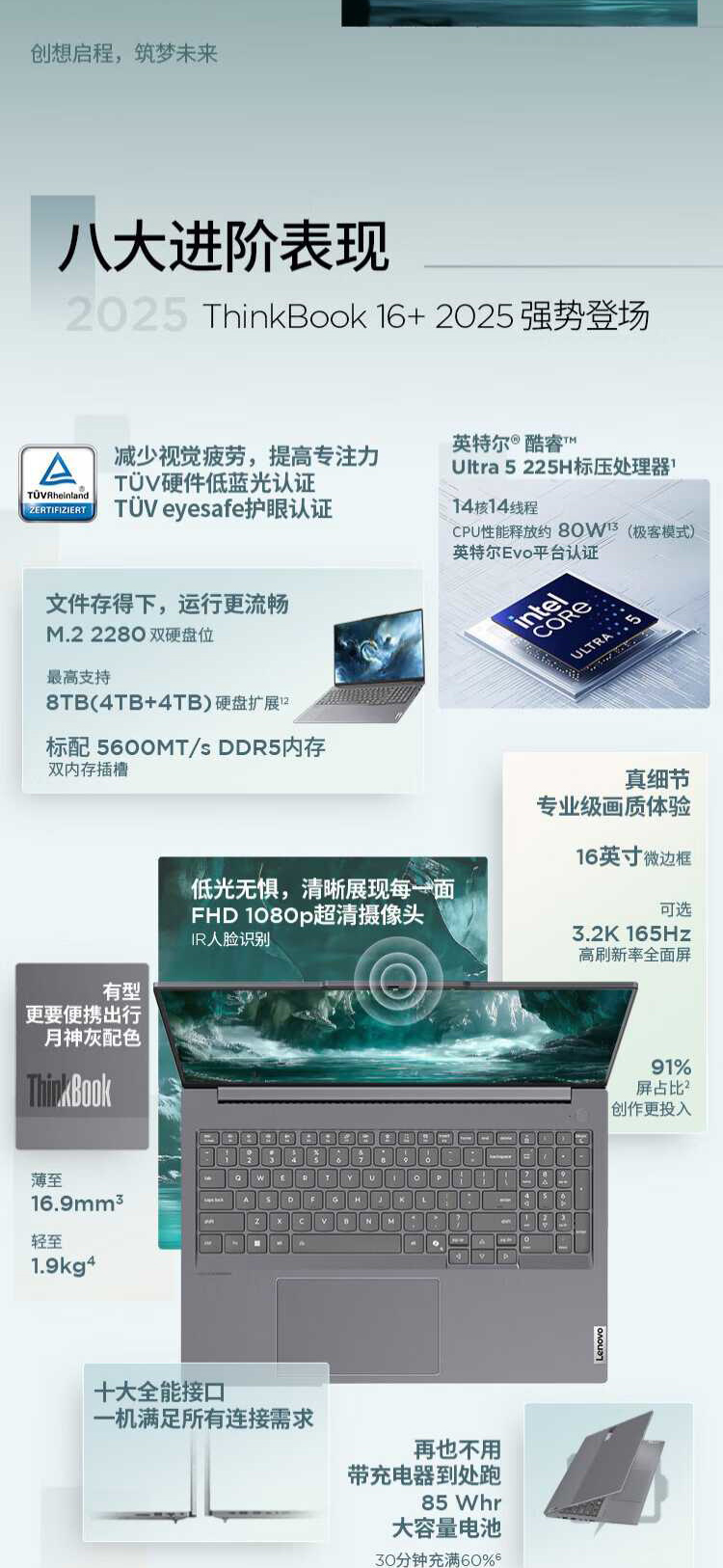 ThinkBook16-8VCD | Ultra5-225H/32G/1TSSD/集显/WiFi6/摄像头/16"2.5K/Win11 |