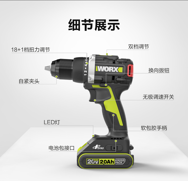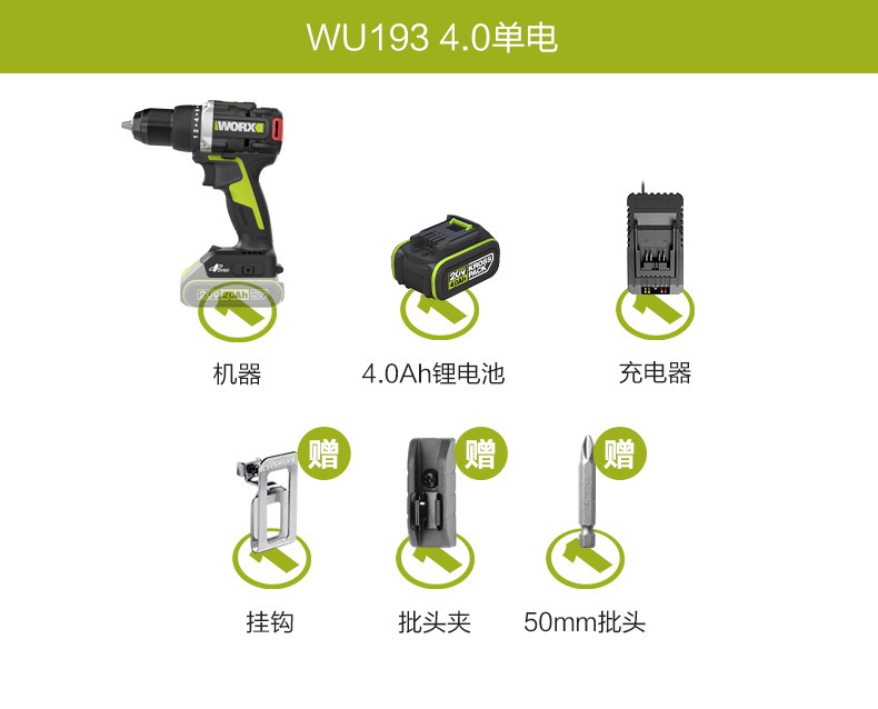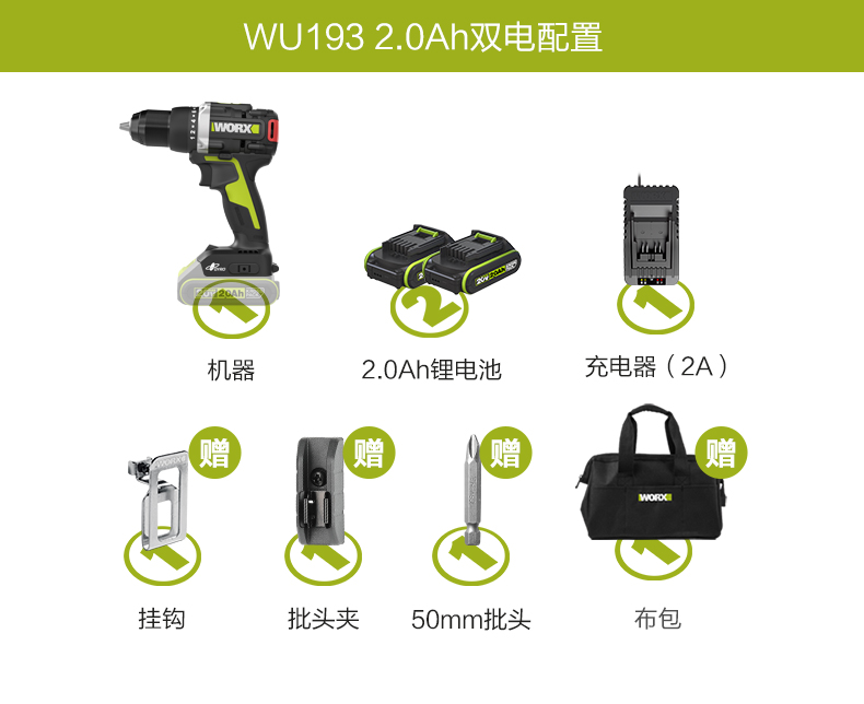 【疯狂星期四】威克士WU193 无线大扭力专业无刷充电式手电钻锂电螺丝刀电动工具