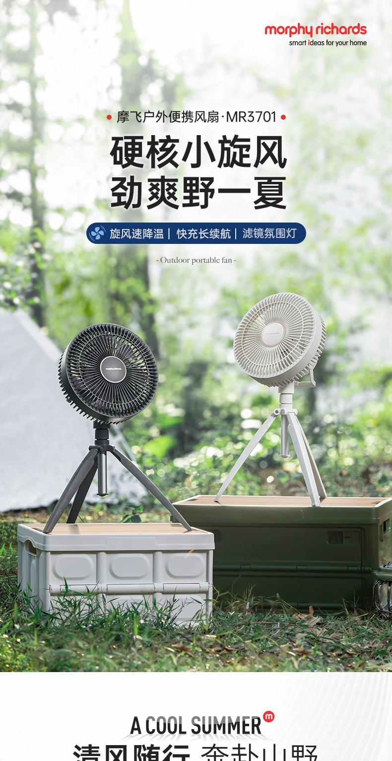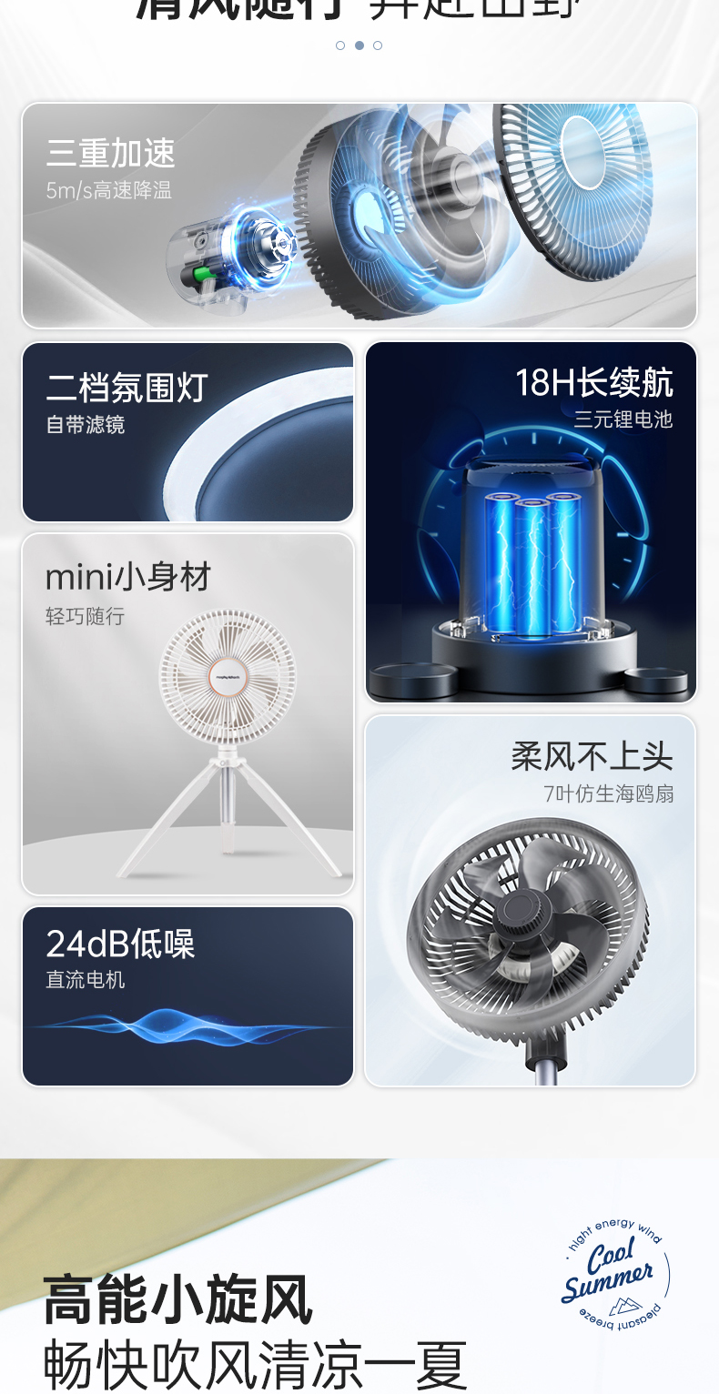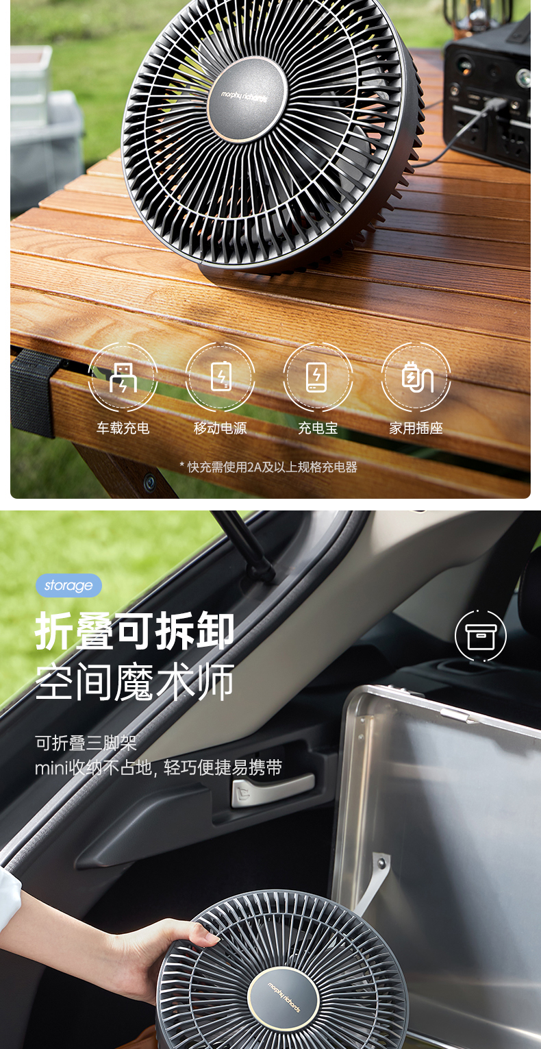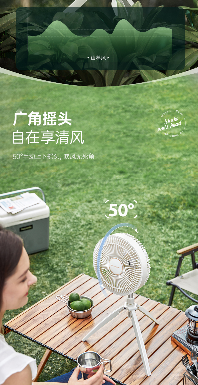 【摩飞户外露营可折叠风扇】摩飞电风扇户外露营多功能充电风扇钓鱼便携折叠小风扇家用落地扇
