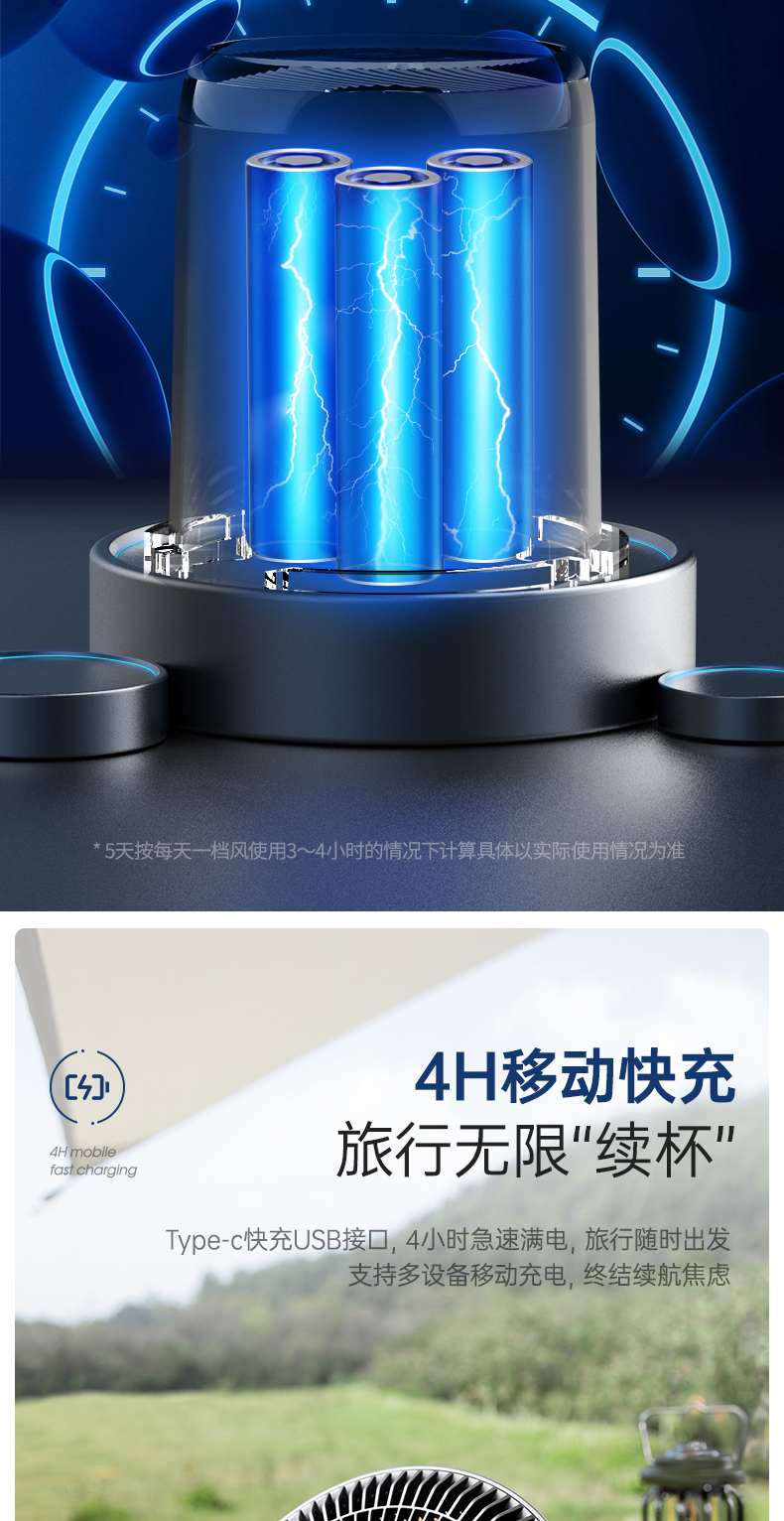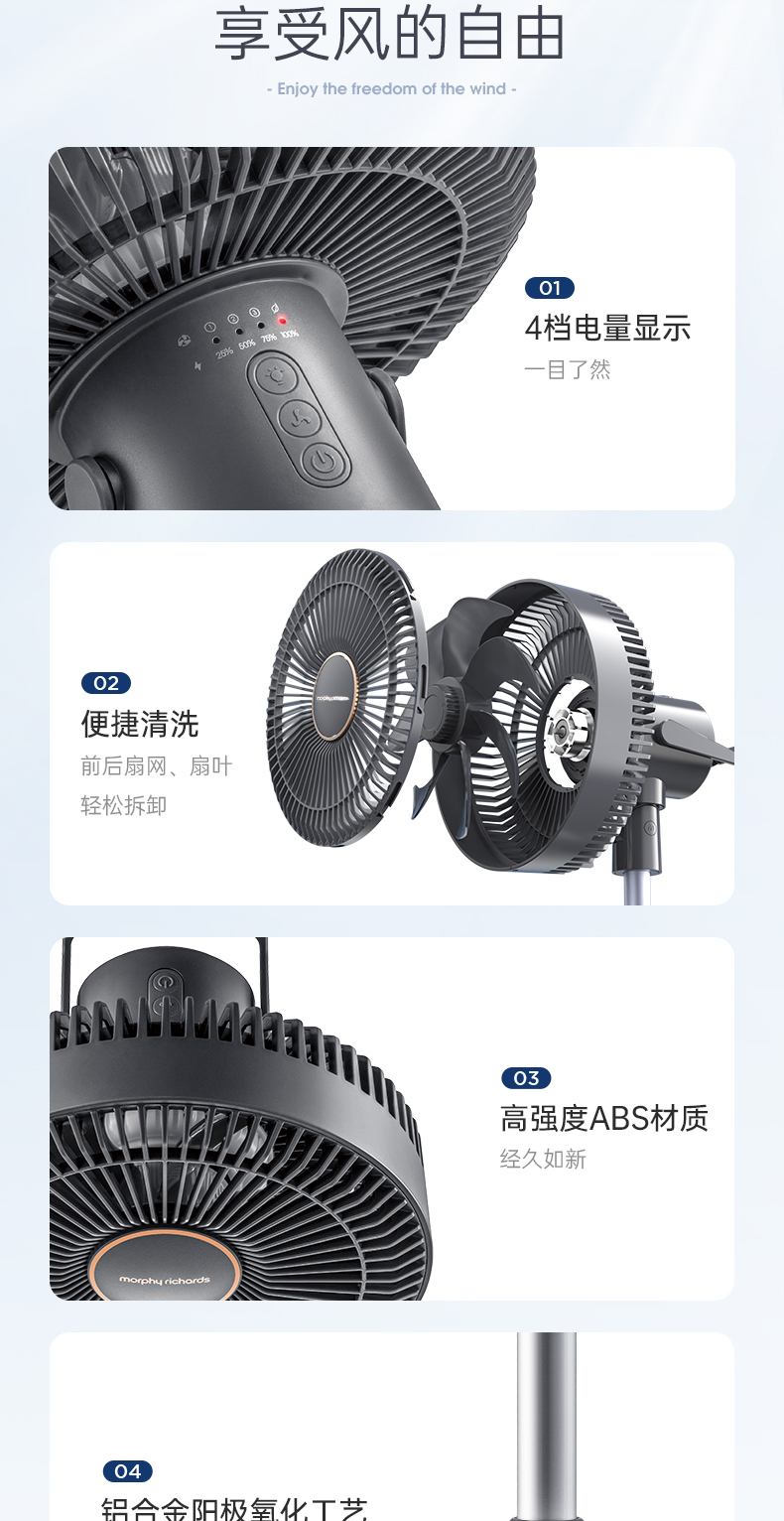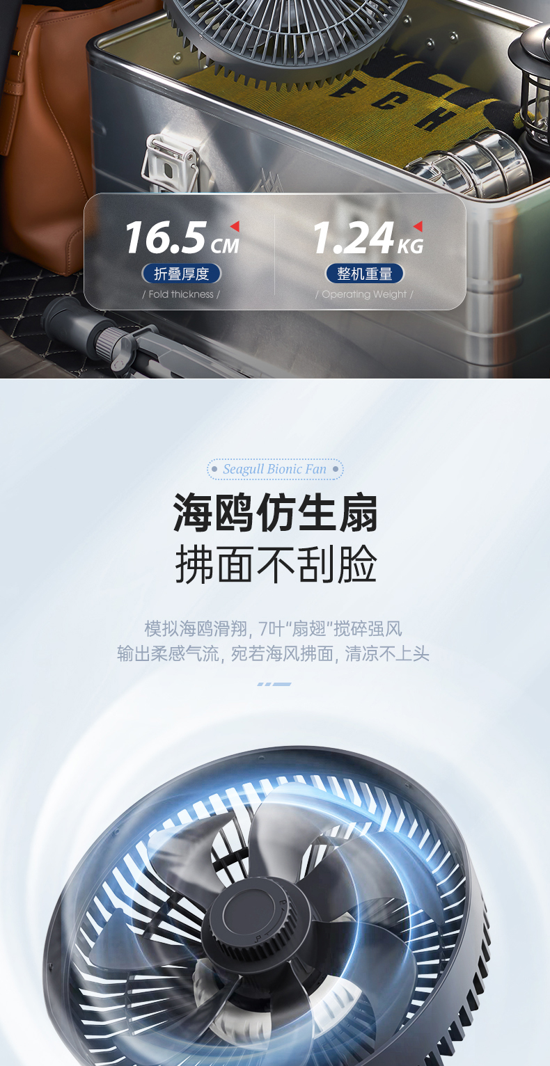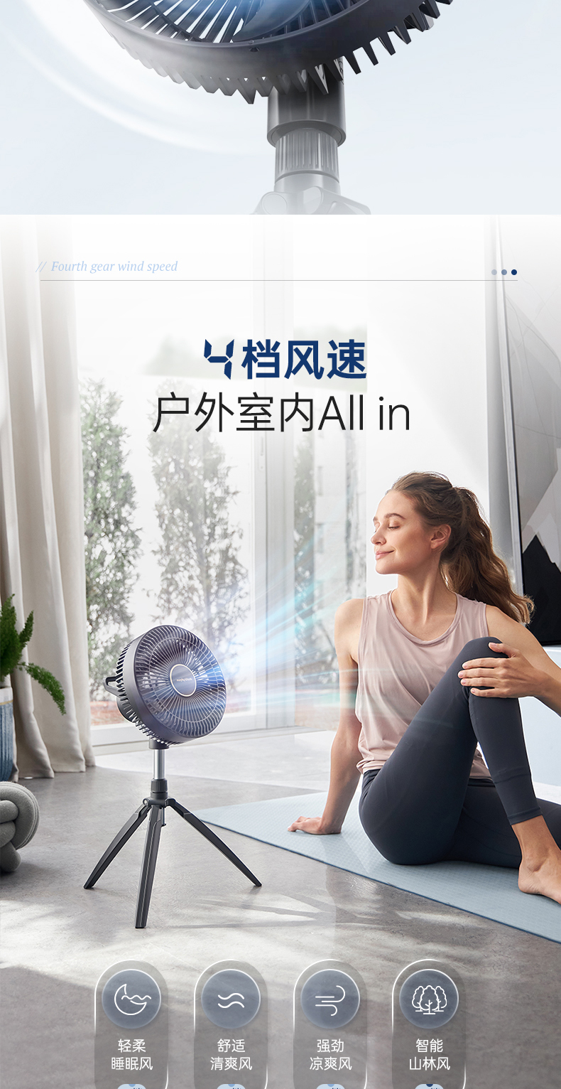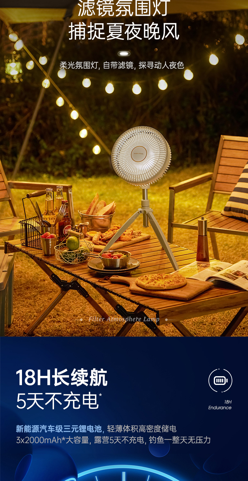 【摩飞户外露营可折叠风扇】摩飞电风扇户外露营多功能充电风扇钓鱼便携折叠小风扇家用落地扇