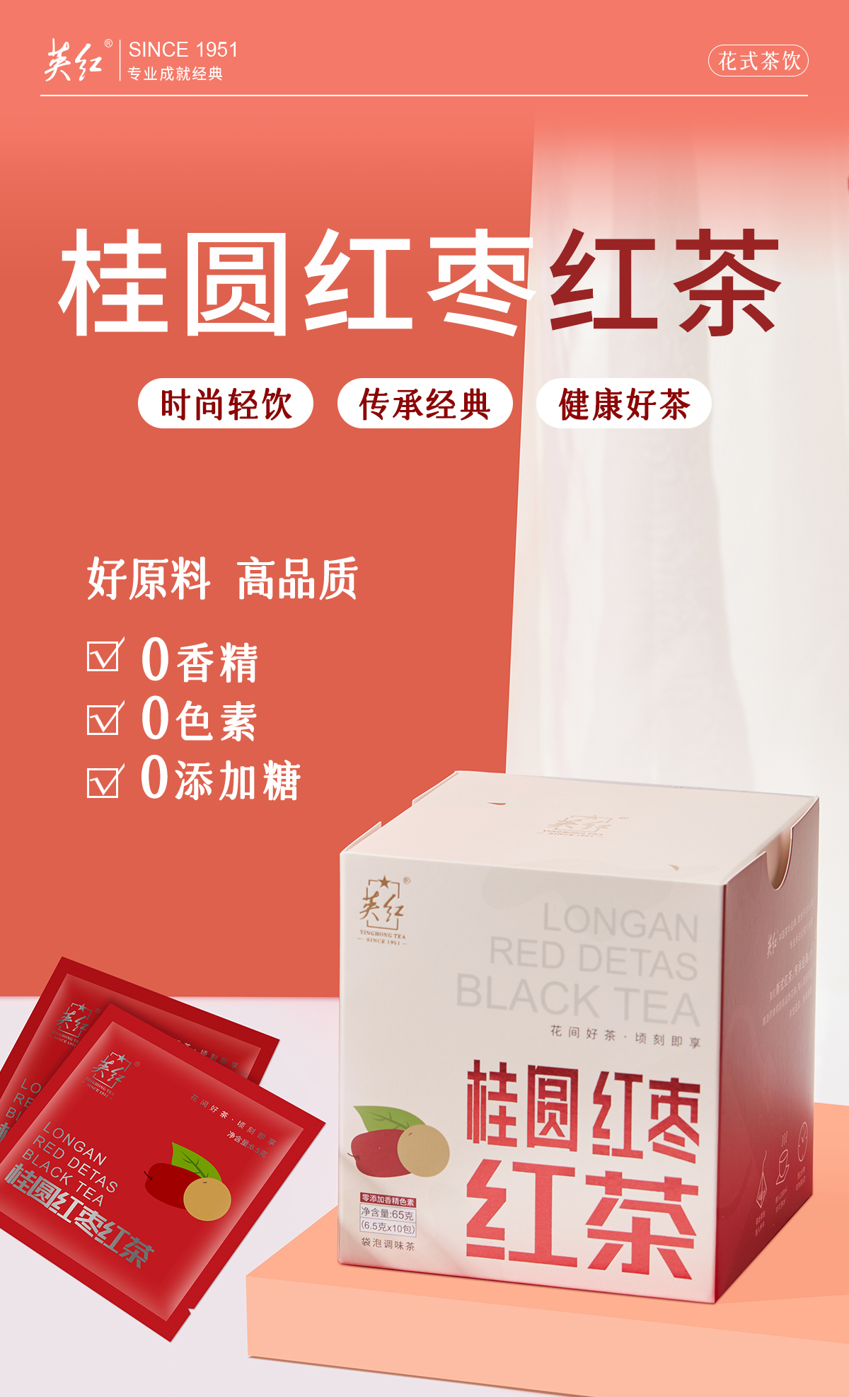 【暖暖三宝茶】英红牌 英德红茶 桂圆红枣枸杞红茶 袋泡茶 10小包/盒 65g/盒(京东同款)