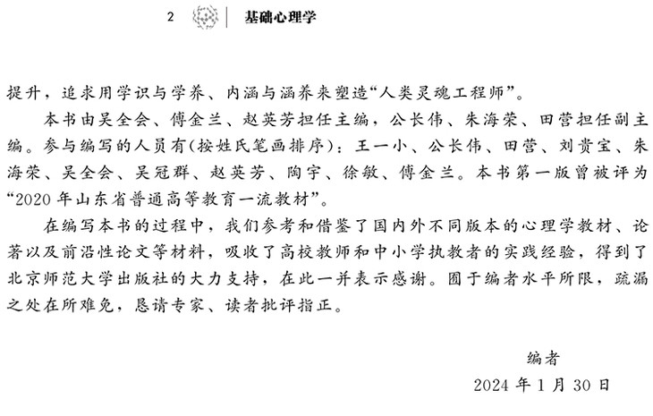 基础心理学(第2版)9787303293315 吴全会 傅金兰 赵英芳/主编,公长伟 朱海荣 田营/副主编 新世纪高等学校教材 教育学专业基础课系列教材 北京师范大学出版社 正版书籍