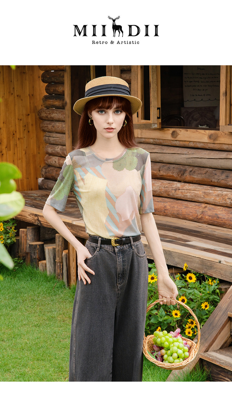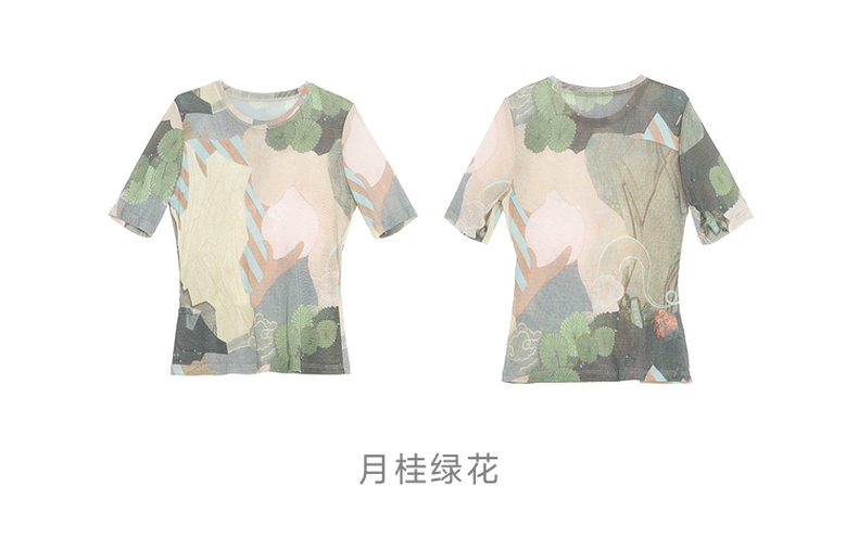 谜底网纱T恤短袖女2025秋季新款复古风圆领薄款修身上衣257MT7811