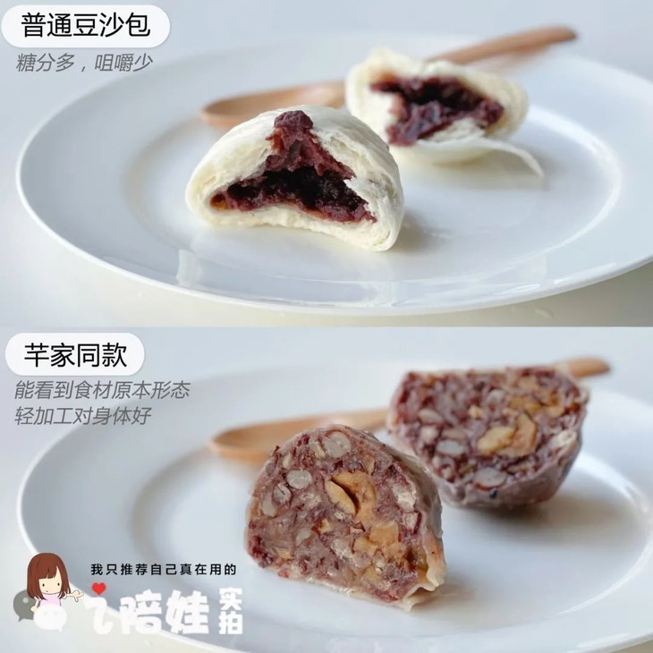 像这个粘豆包是粗粮主食,比细粮的豆沙包热量低。