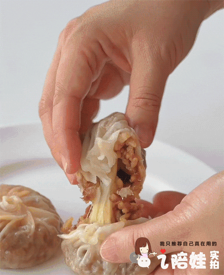 还有小笼包,想找口味不输早餐店的不难,但同时达到“妈妈级用料”的,我在吃的这款嵊州非遗小笼包做到了。