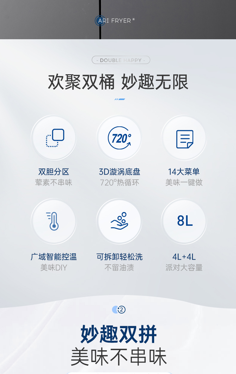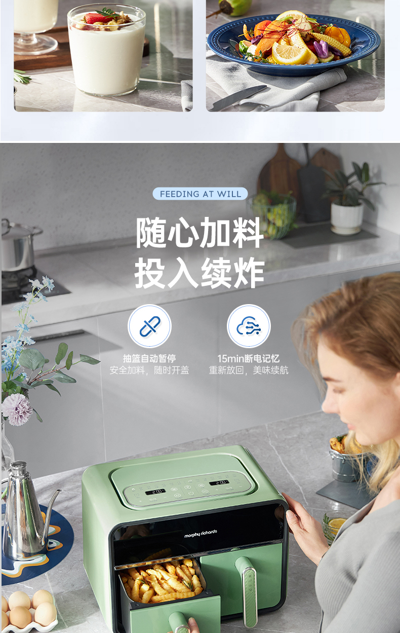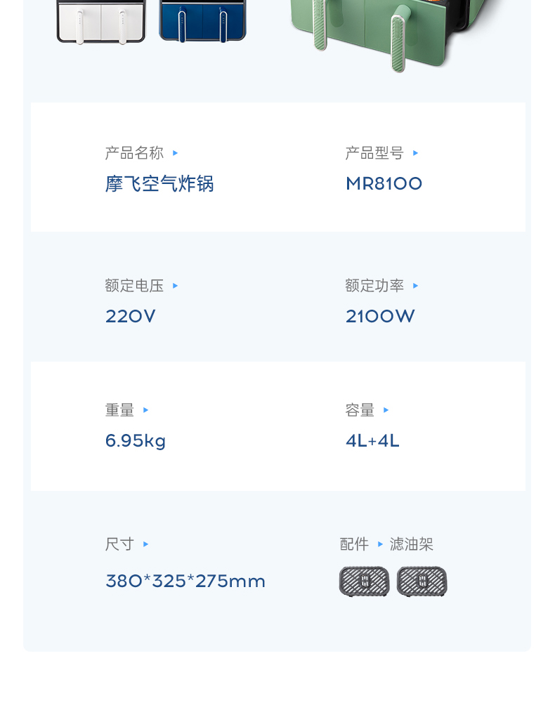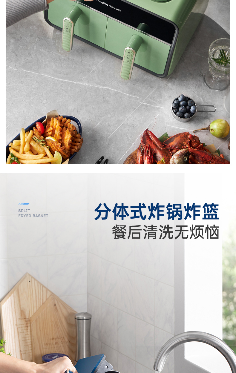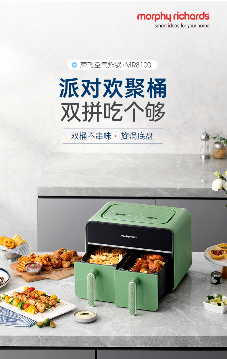 【样品清仓无原包装,介意者慎拍】摩飞空气炸锅家用电炸锅MR8100新款双仓大容量多功能
