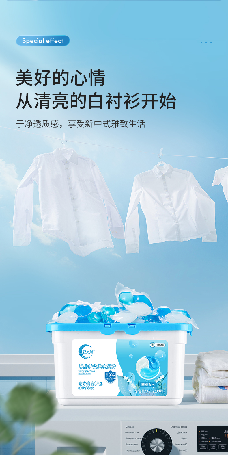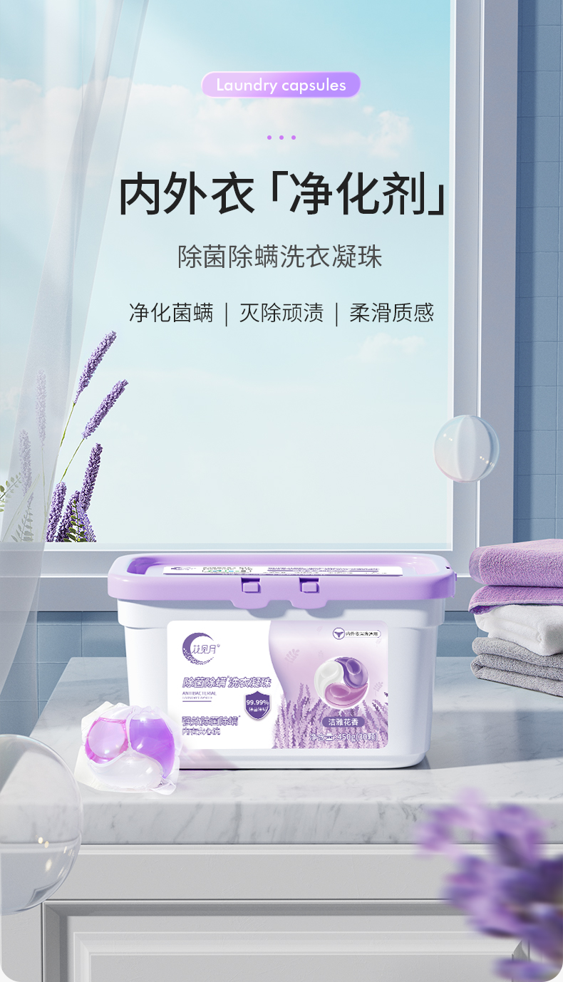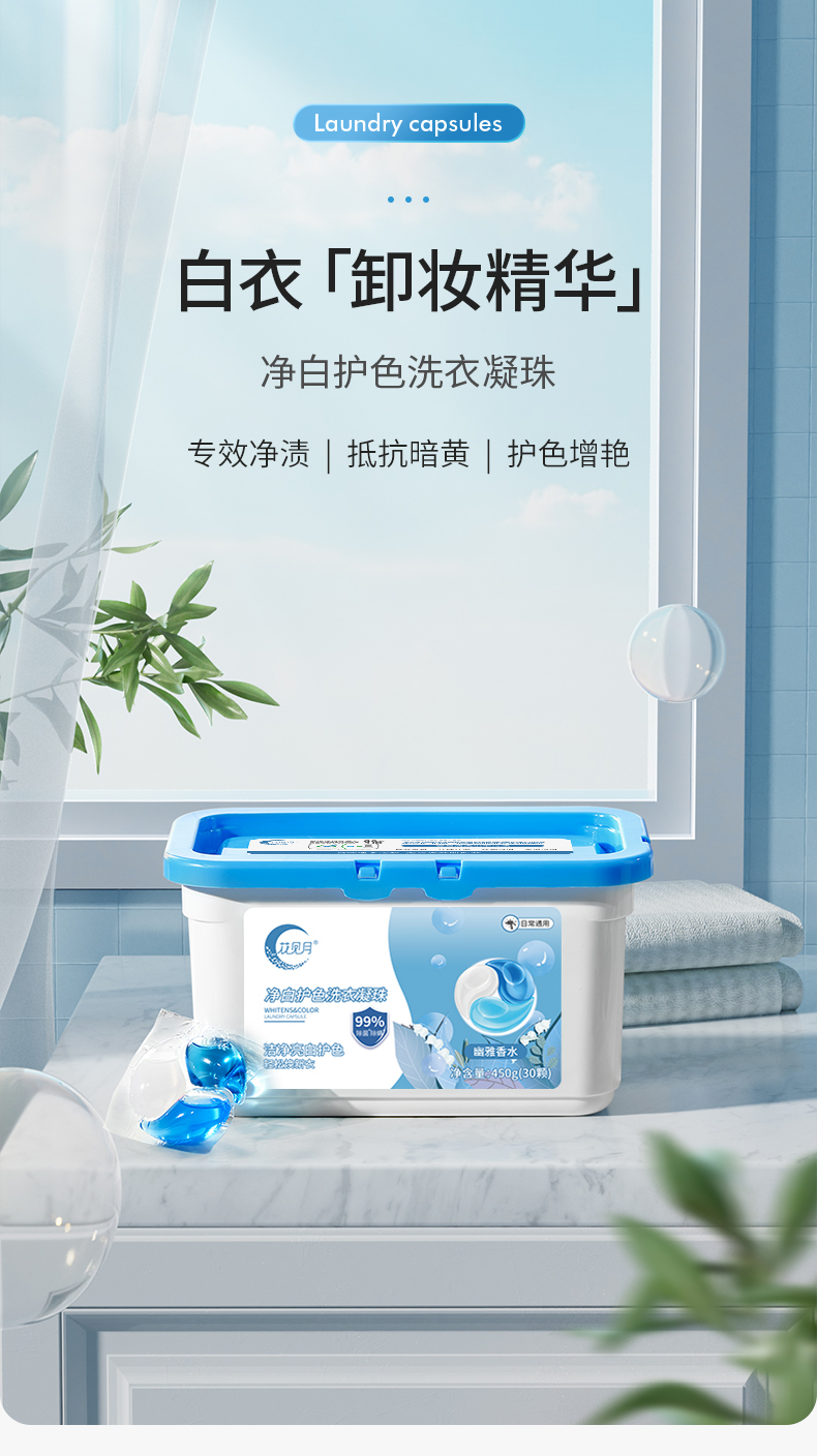 【4盒装】偶爱你 花见月洗衣凝珠 除菌除螨/净白护色 450g/盒