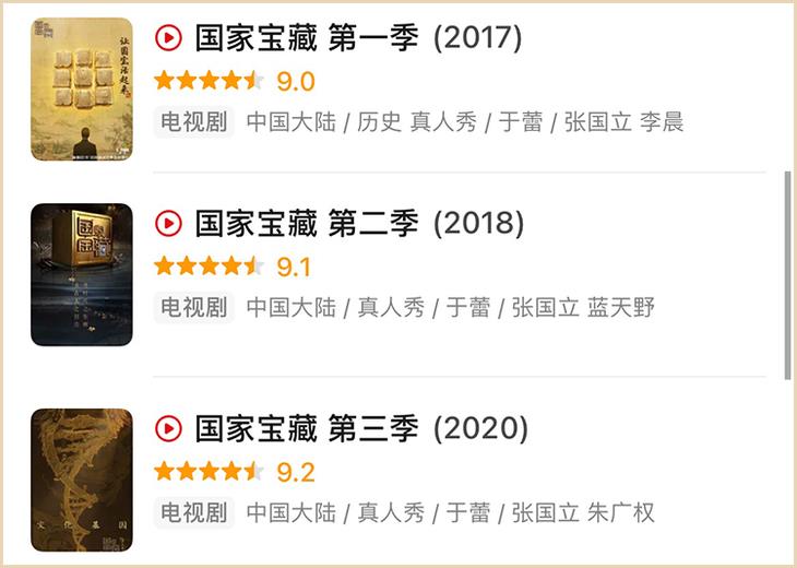 曾经爆火的央视节目《国家宝藏》季季评分长期稳居9分以上的高分~