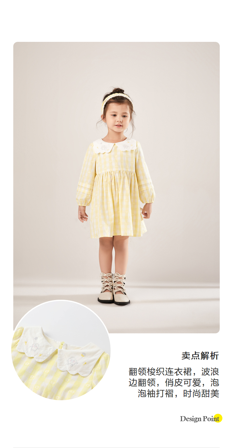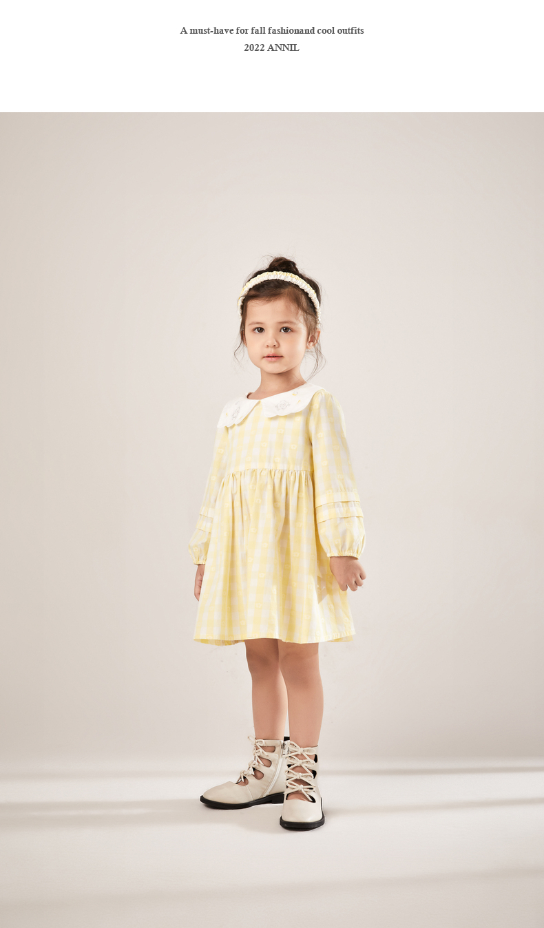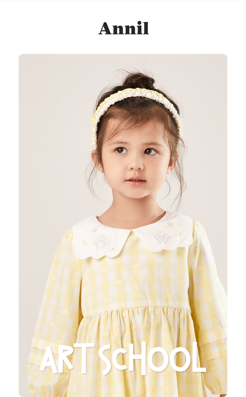 安奈儿女童翻领长袖连衣裙xg213522