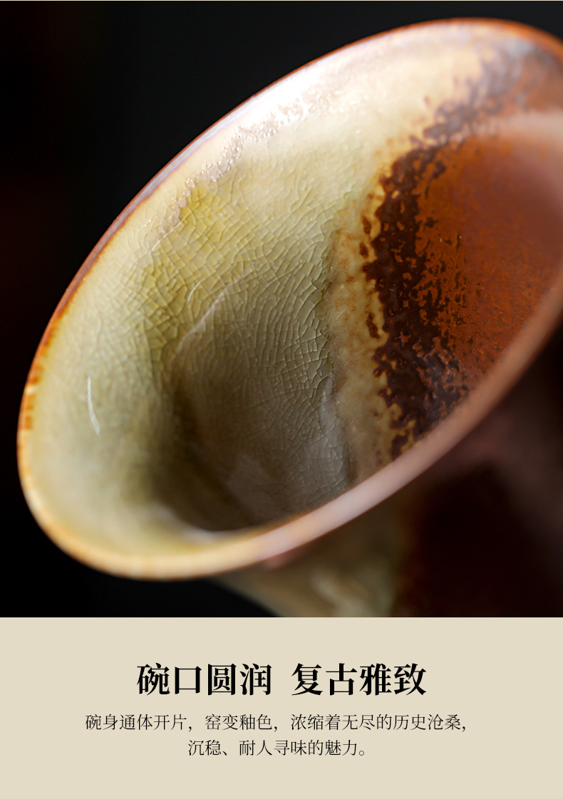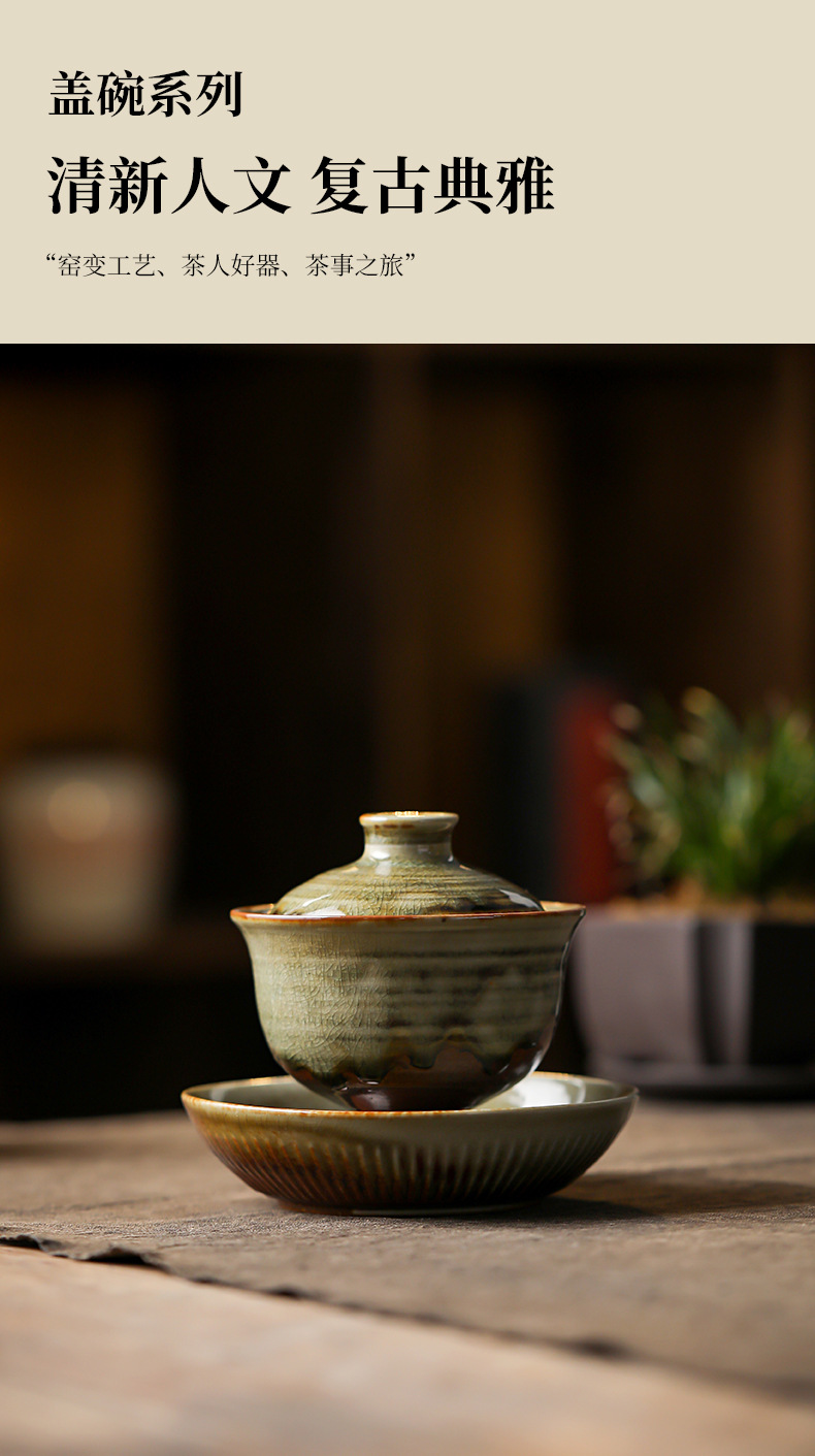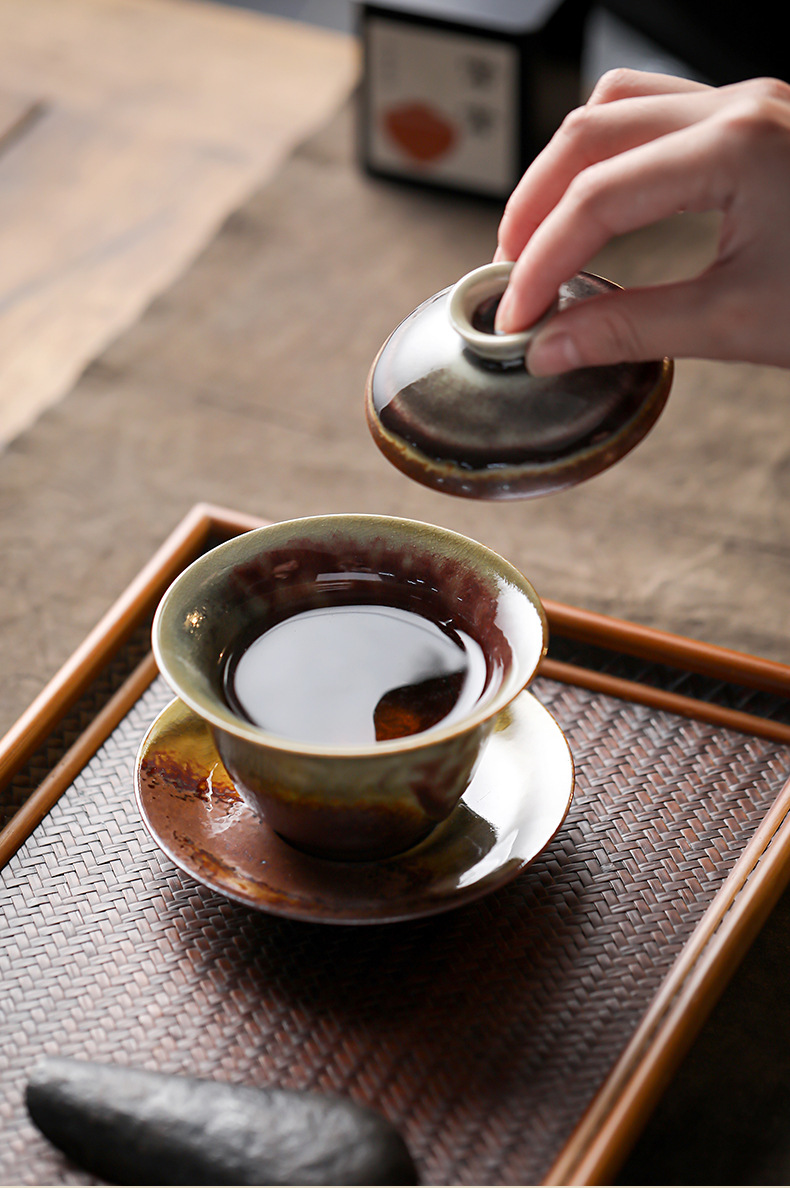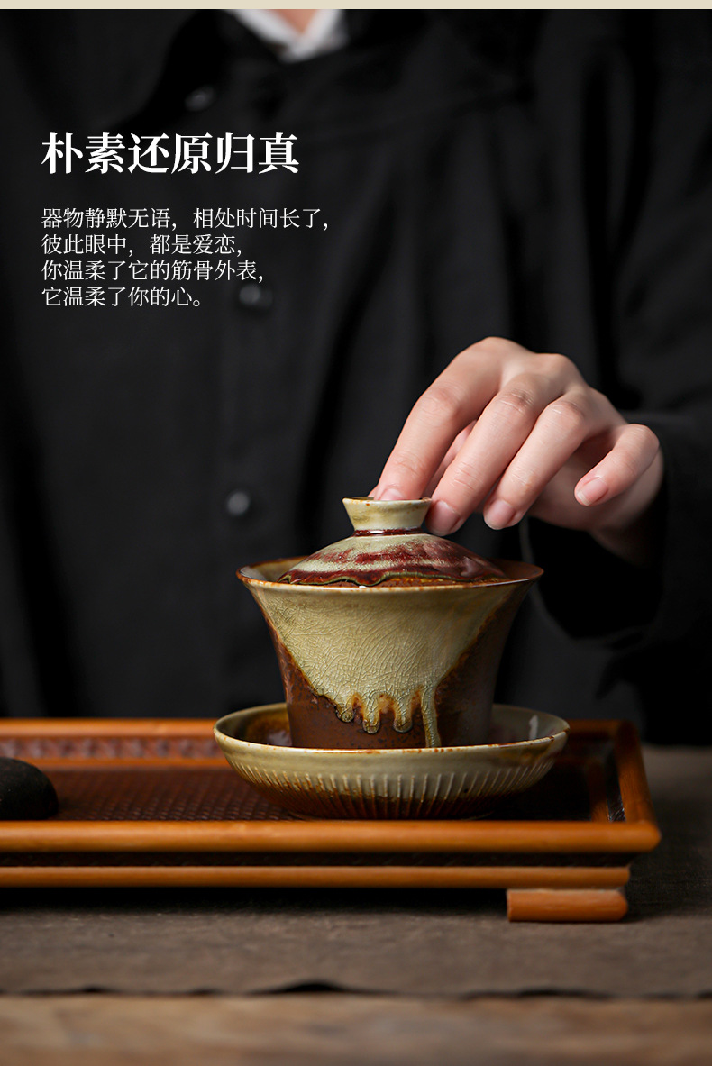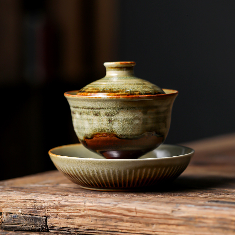 柴烧陶土盖碗景德镇陶瓷茶杯三才泡茶碗单个不烫手功夫茶具手抓碗
