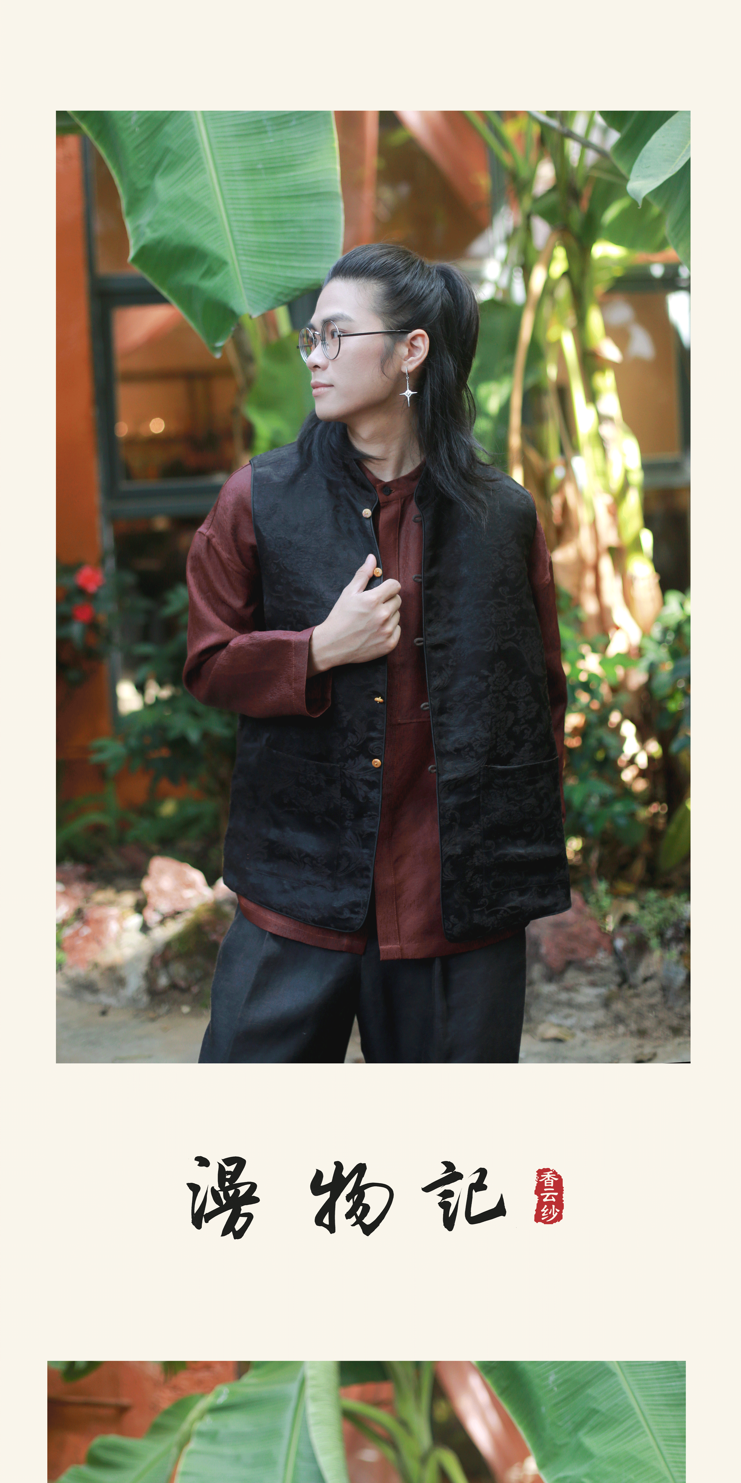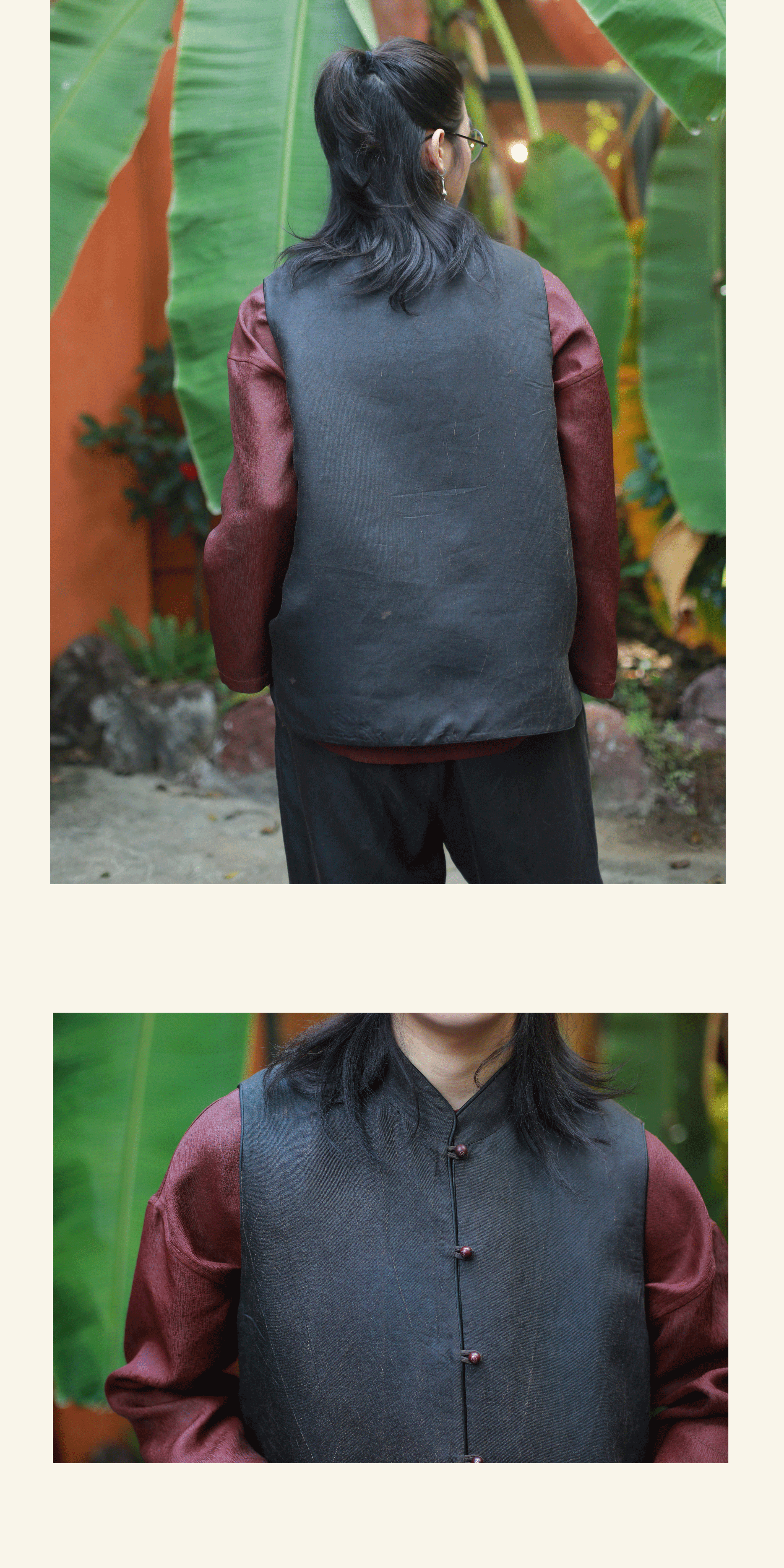 漫物记丝麻双口袋双面马甲M130