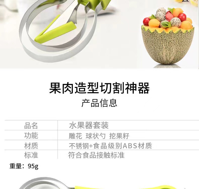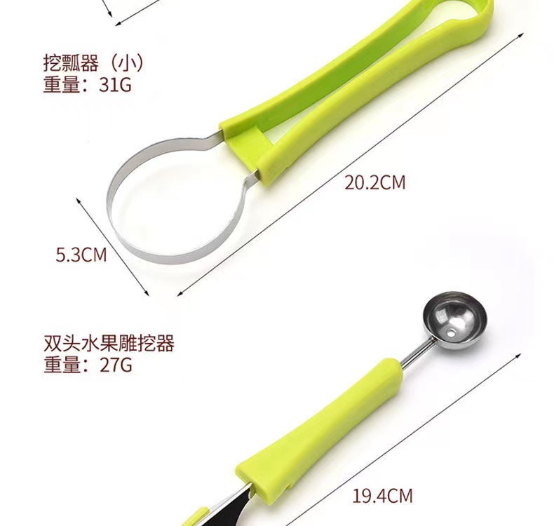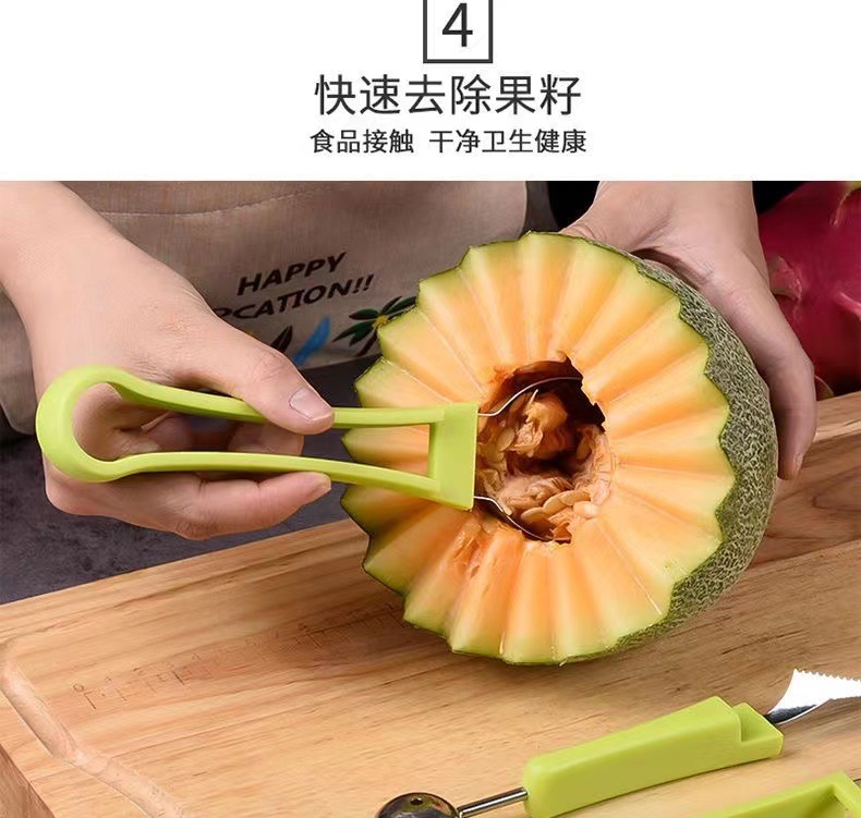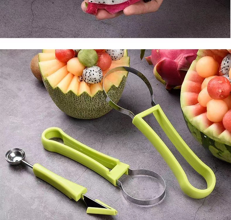 「9.9元包邮!三合一款」三合一水果挖球器 双头多功能西瓜挖球勺哈密瓜取瓤水果挖三件套厨房用品