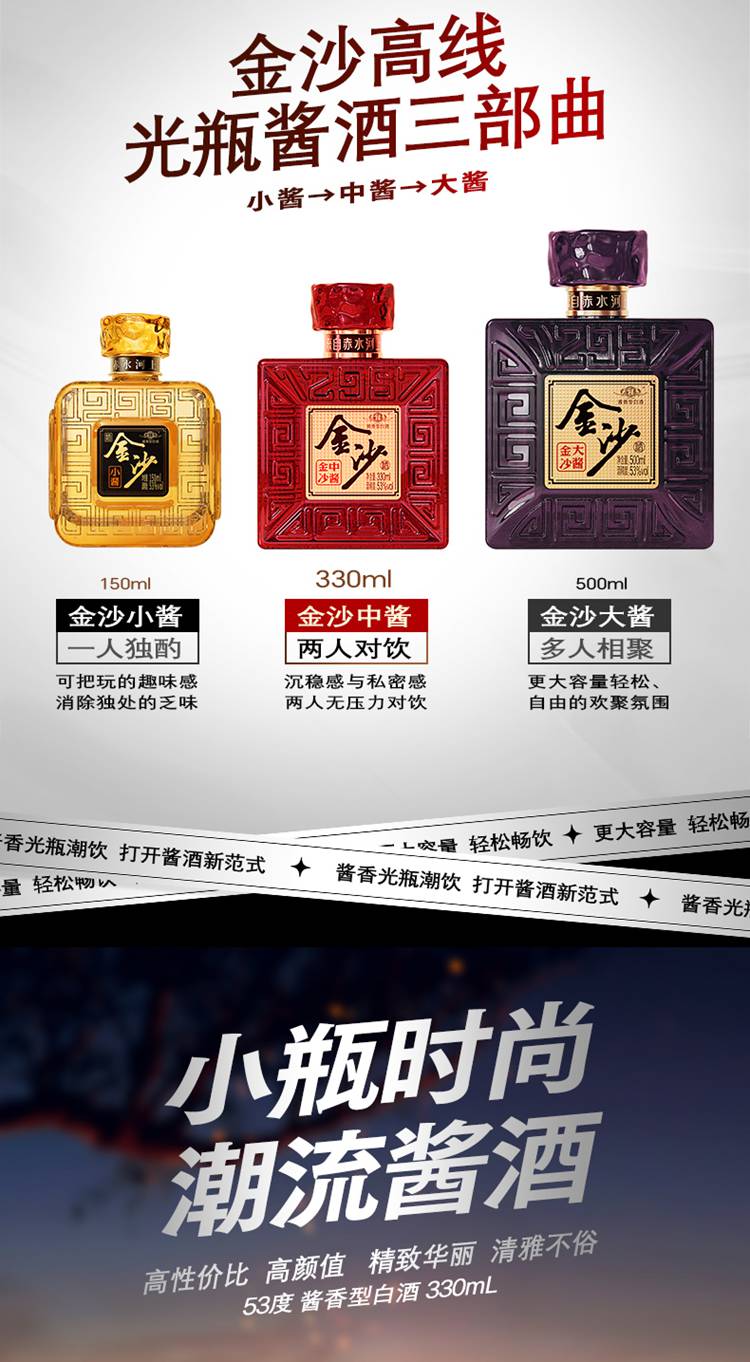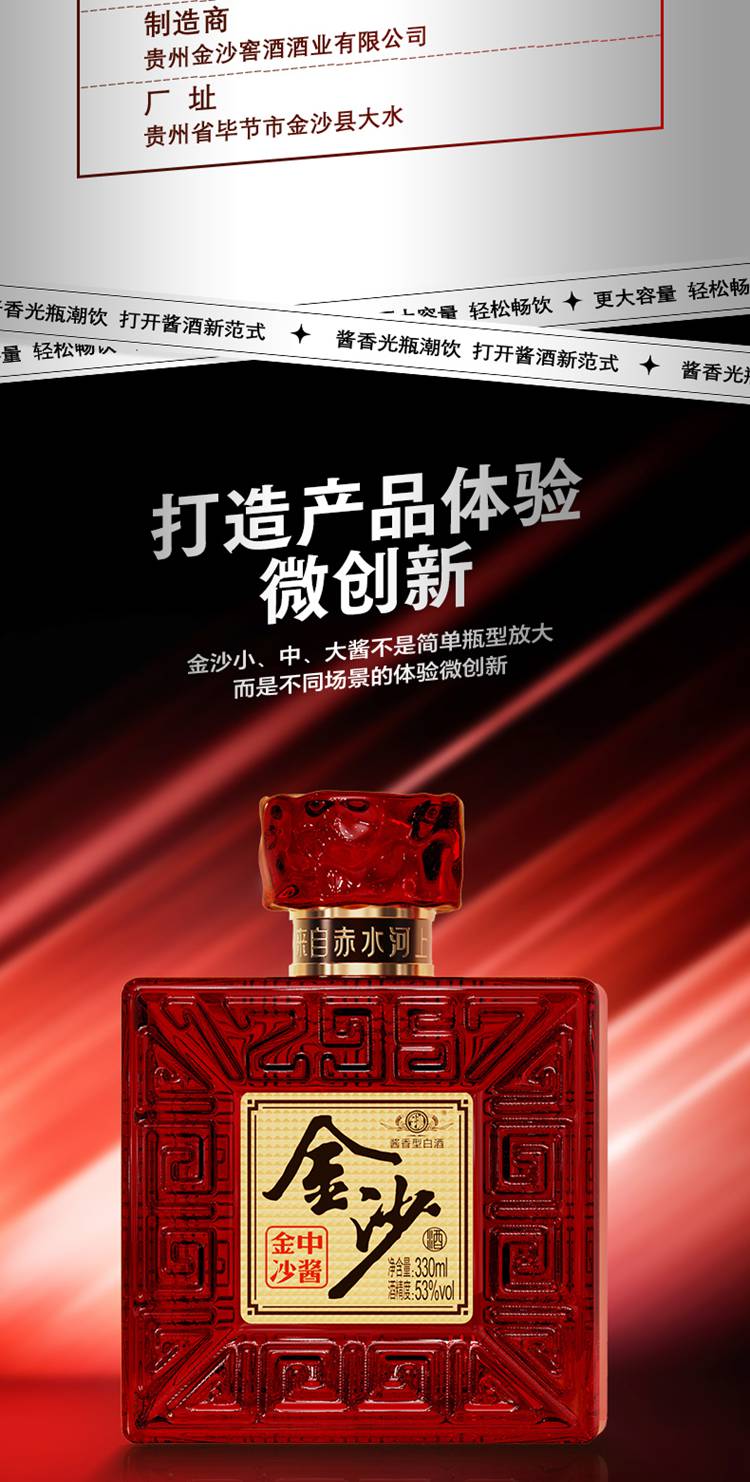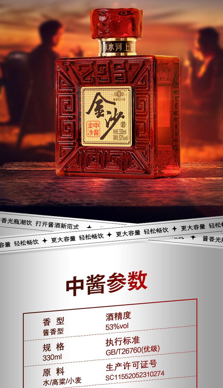 53度金沙中酱酒 330ml*12瓶/箱【包邮直发】【GA】