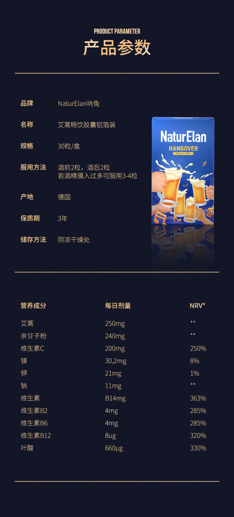 【保税仓】NaturElan 呐兔 解酒胶囊 30粒/盒 (效期至27年3月)