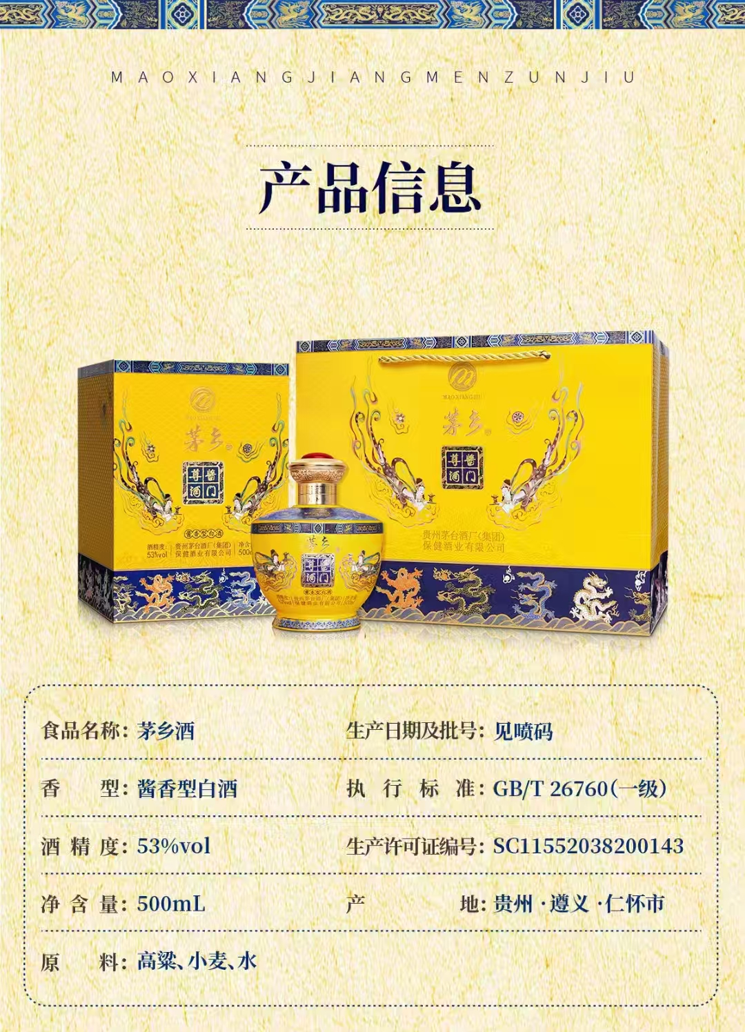 【自营】茅乡酱门尊酒贵州茅台集团53度酱香型白酒500ml整箱礼盒送礼 53度 500mL 4瓶