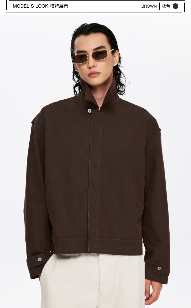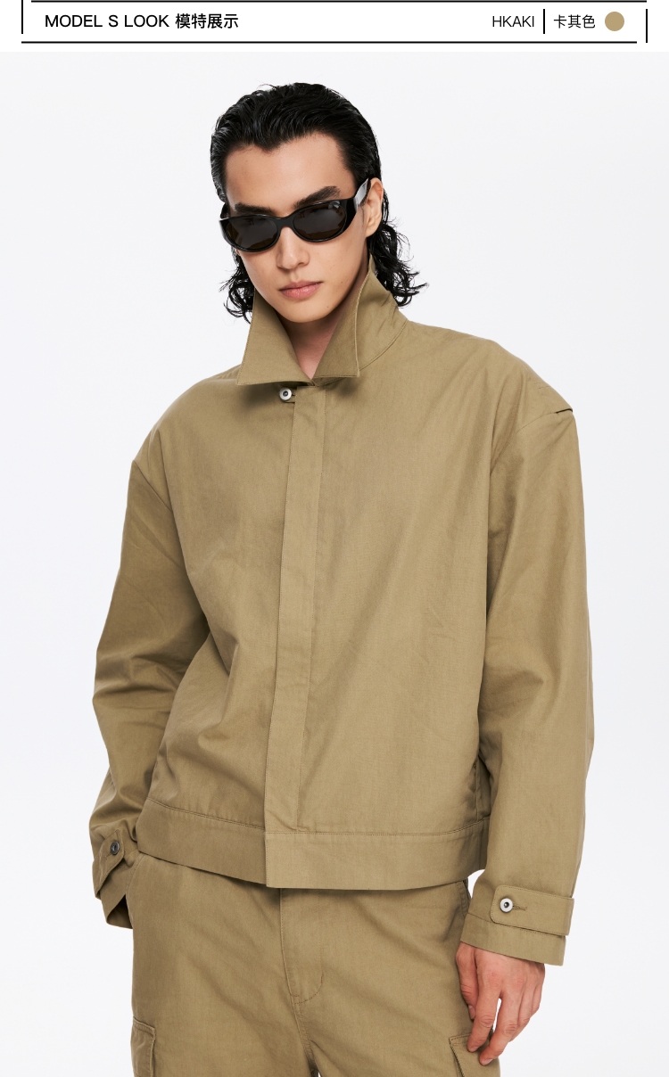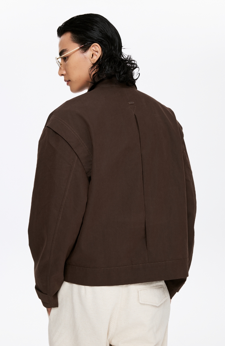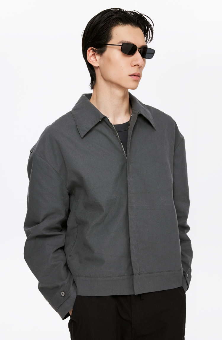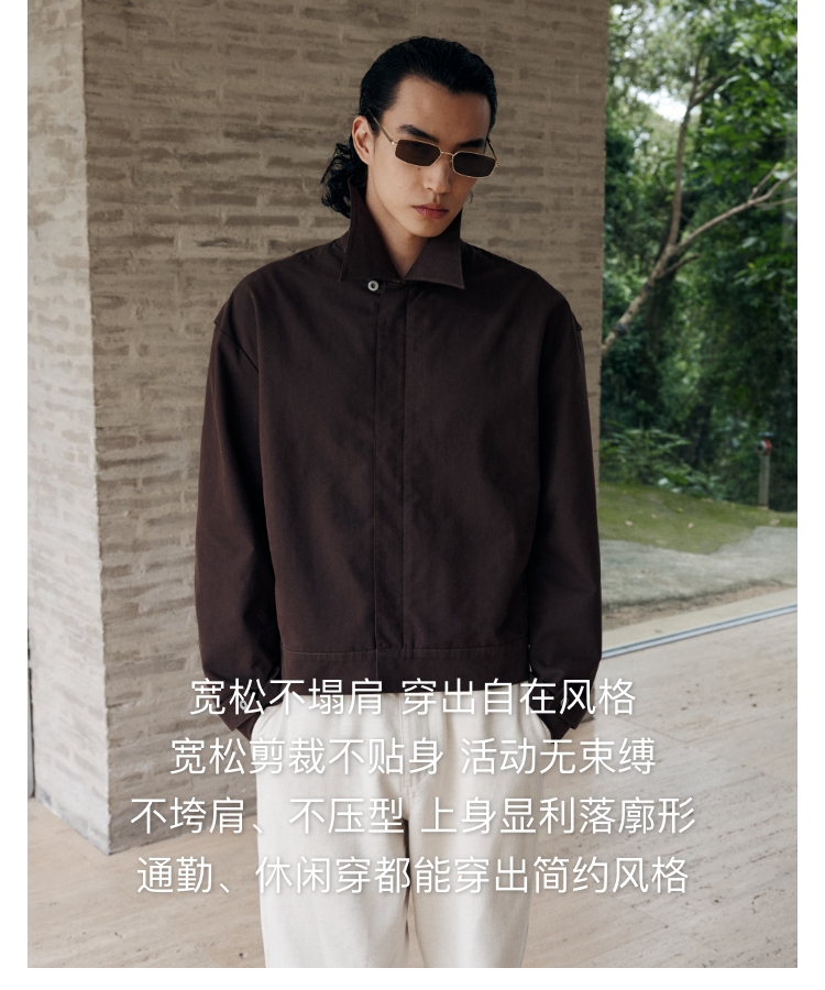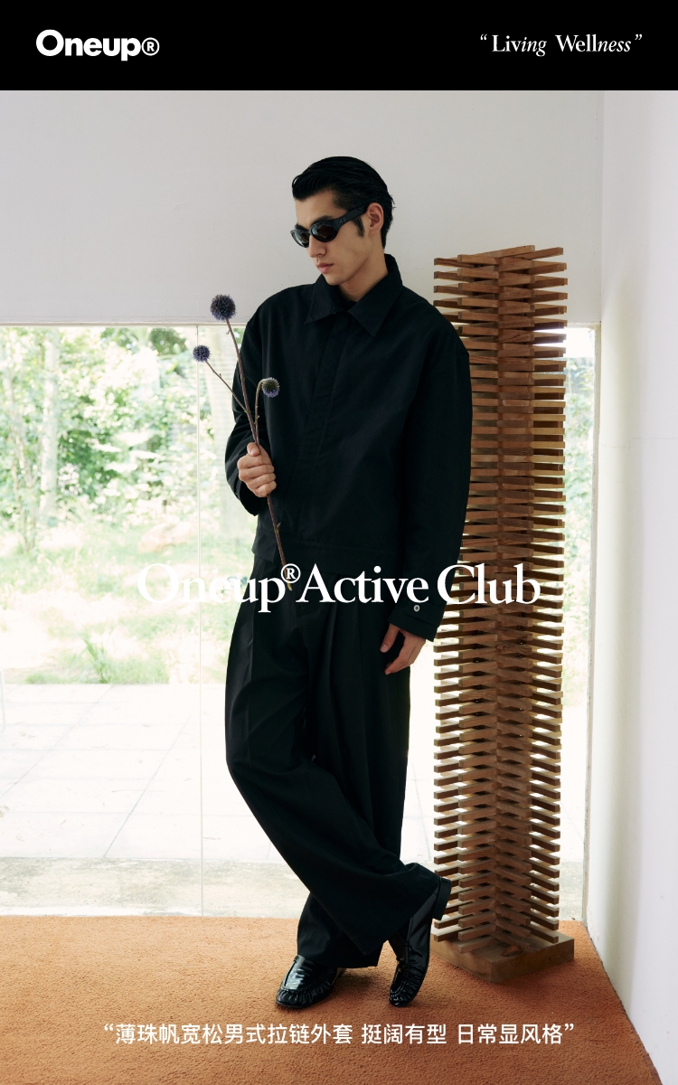 oneup薄珠帆宽松男式拉链外套