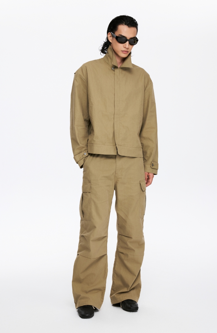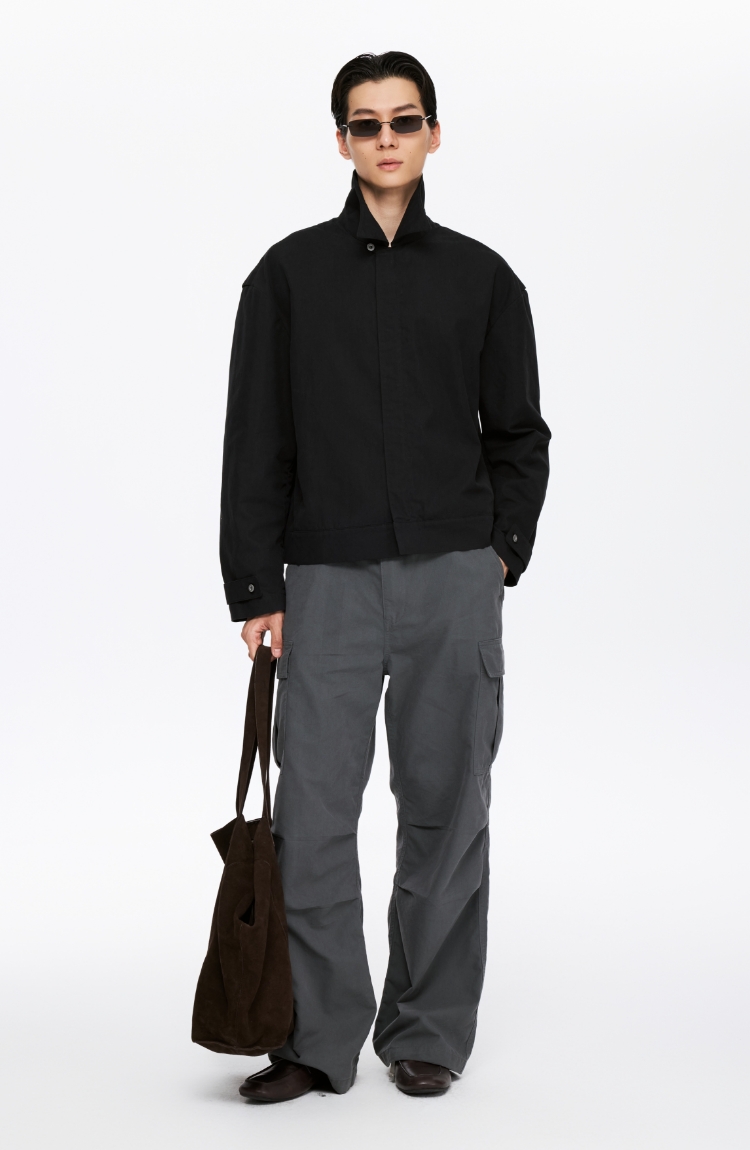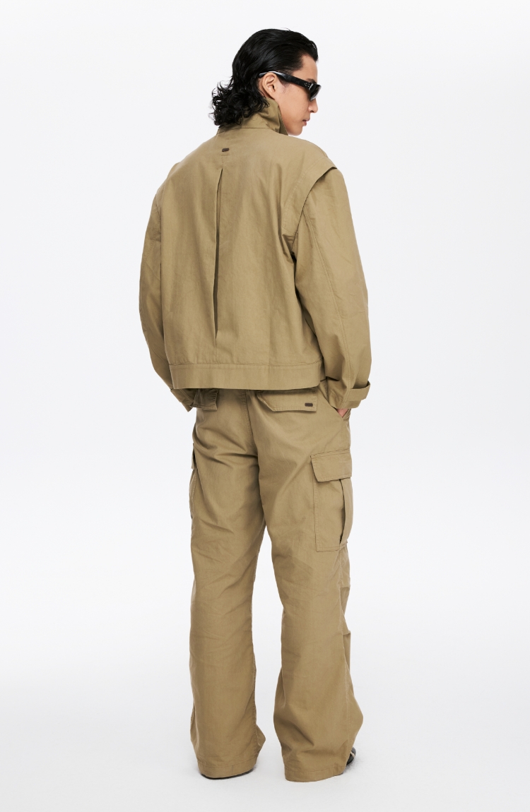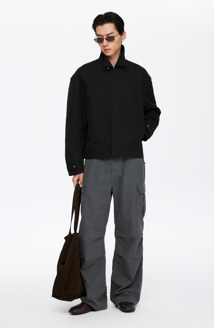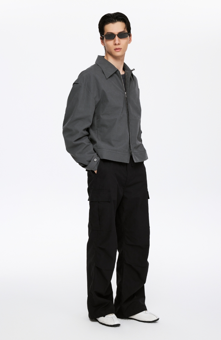 oneup薄珠帆宽松男式拉链外套