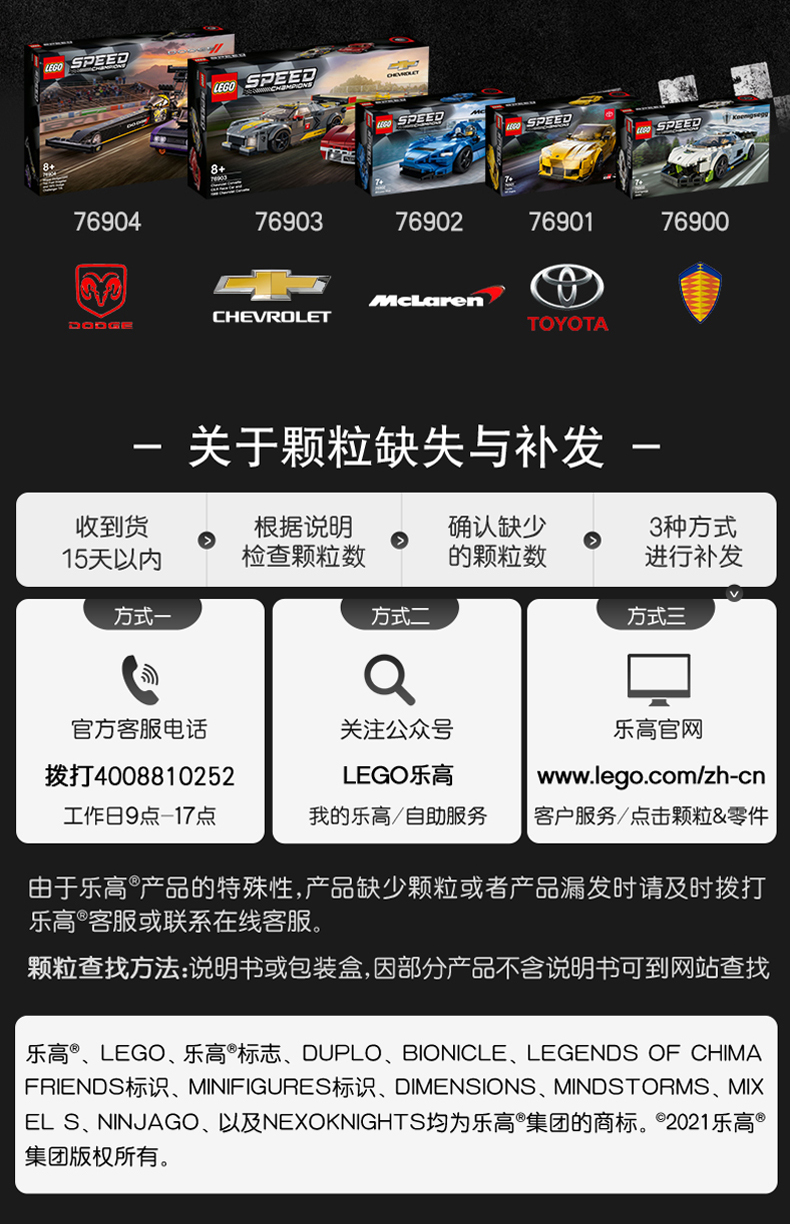 乐高超级赛车系列76904道奇挑战者
