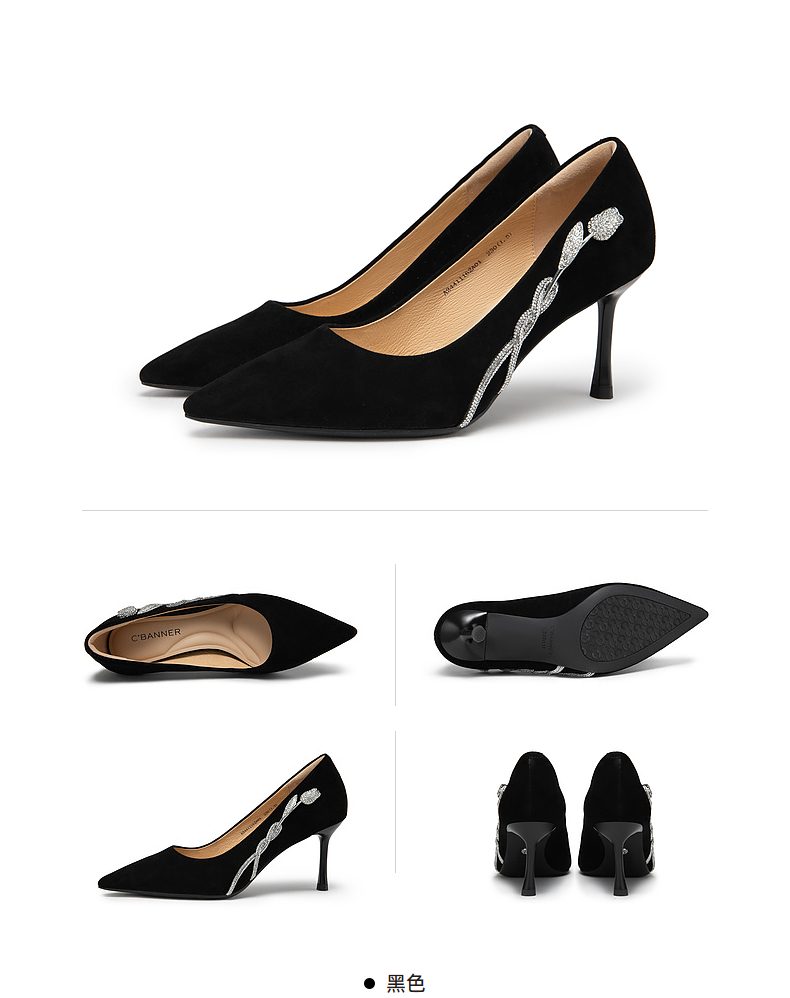 【静音系列】千百度2026春季新款裸色细高跟鞋春季通勤单鞋女真皮浅口A26171611