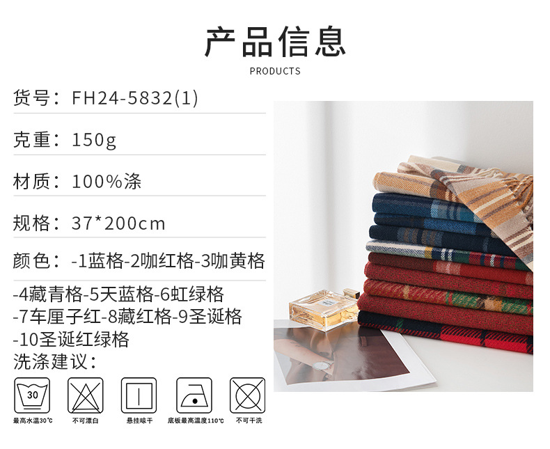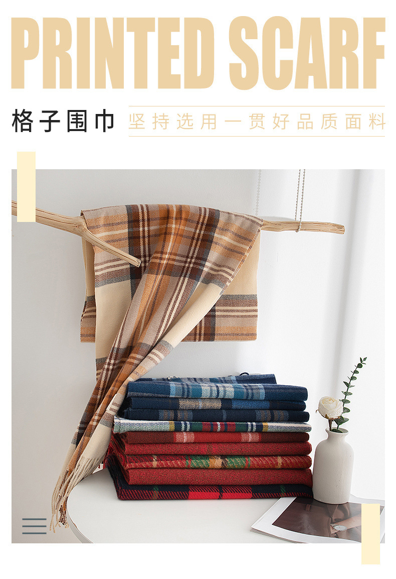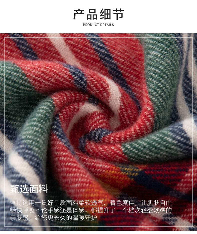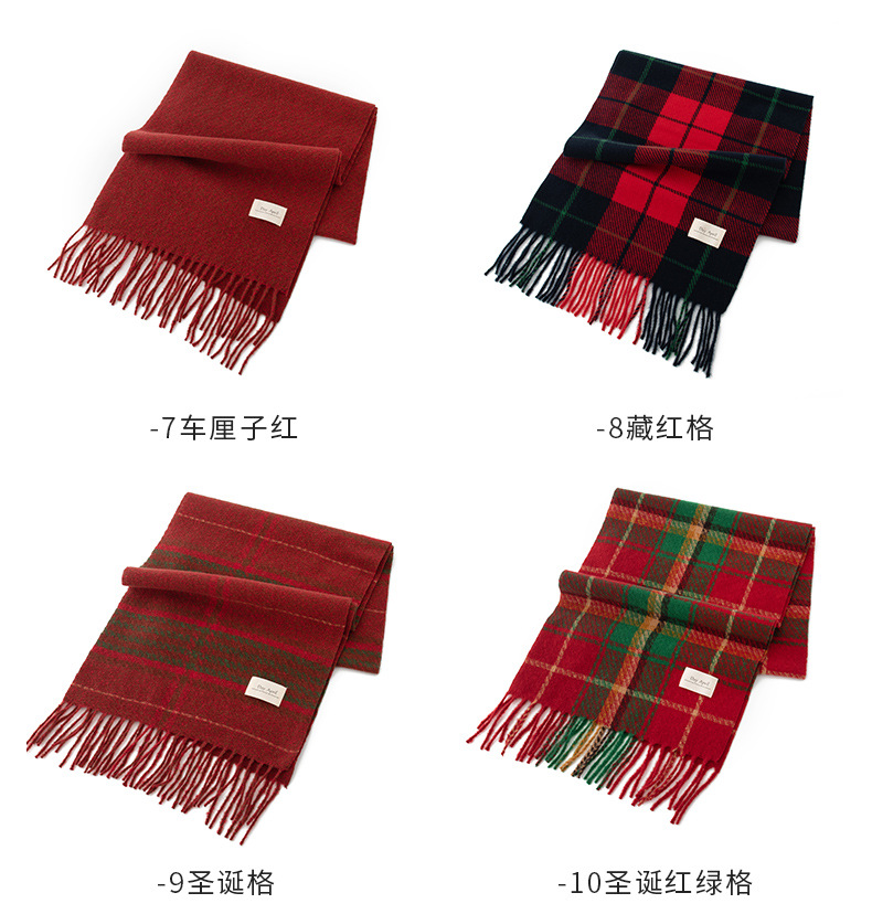 英伦风围巾圣诞节礼品围巾羊绒手感秋冬新年格子围巾韩系氛围感女士仿羊绒安可拉红围脖披肩