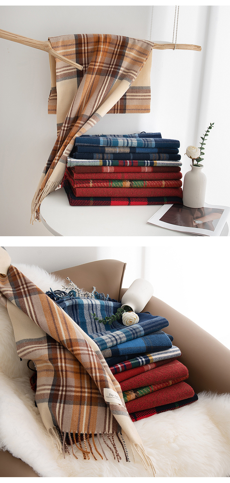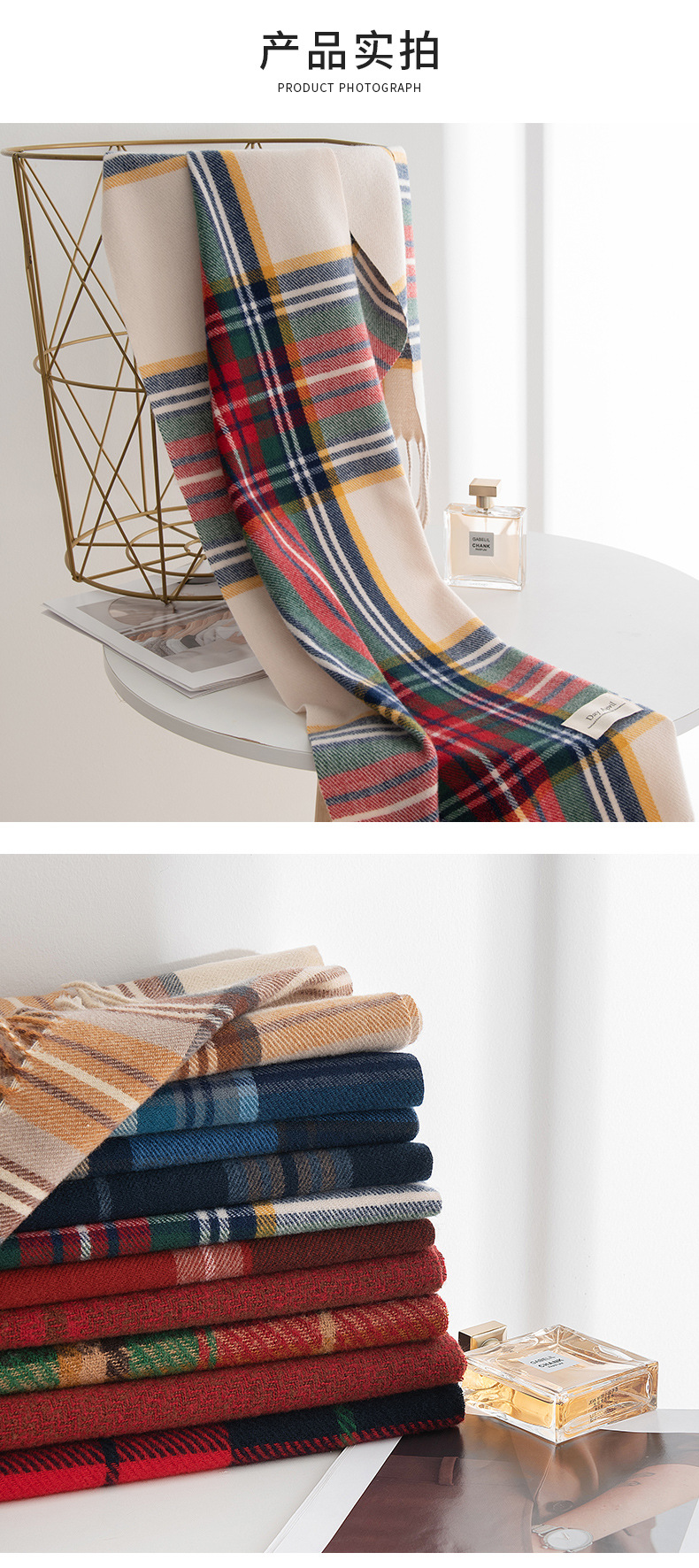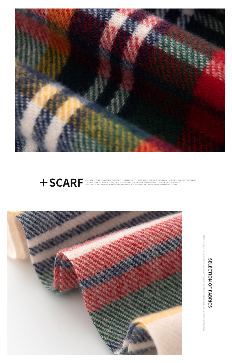 英伦风围巾圣诞节礼品围巾羊绒手感秋冬新年格子围巾韩系氛围感女士仿羊绒安可拉红围脖披肩