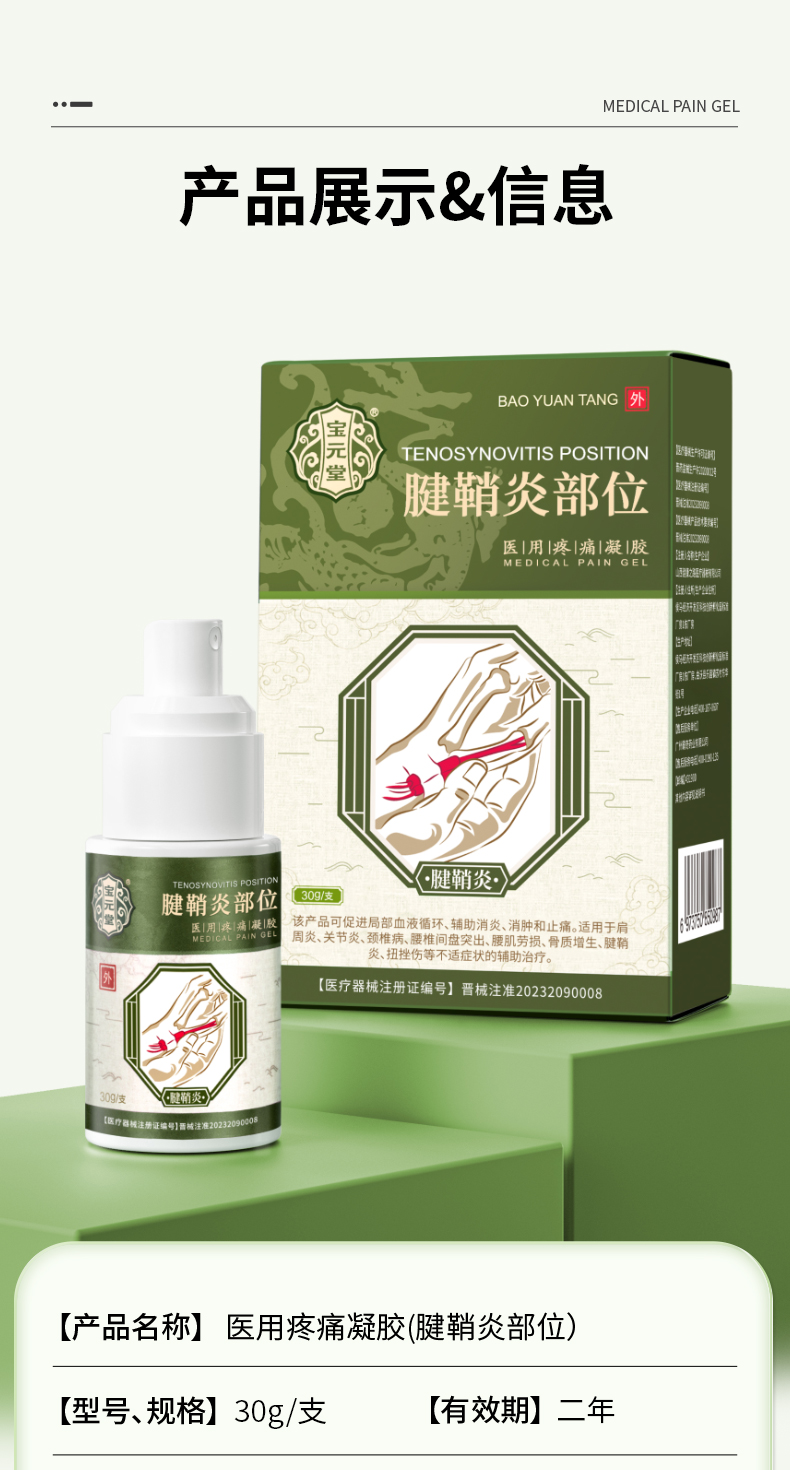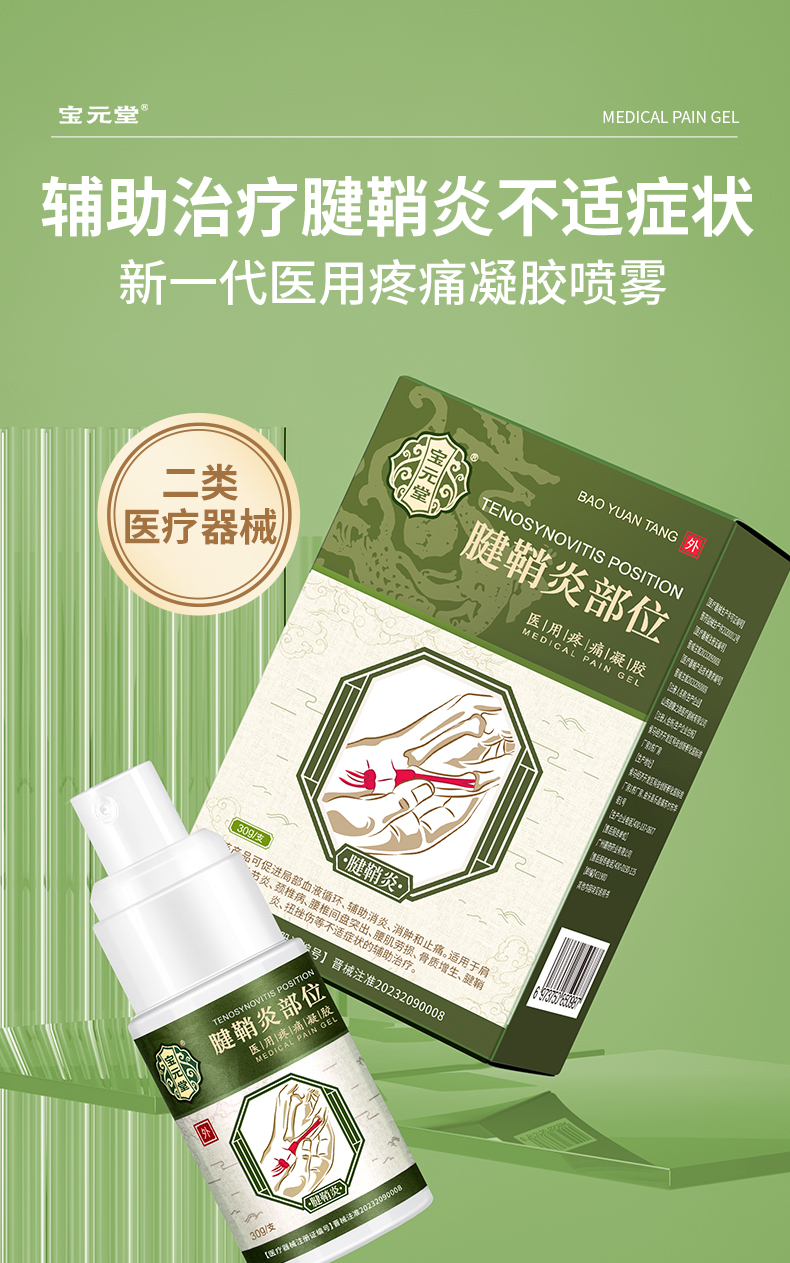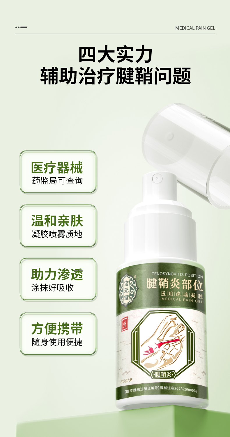 宝元堂腱鞘炎型医用疼痛凝胶手腕扭伤手指鼓包大拇指炎网球肘喷剂