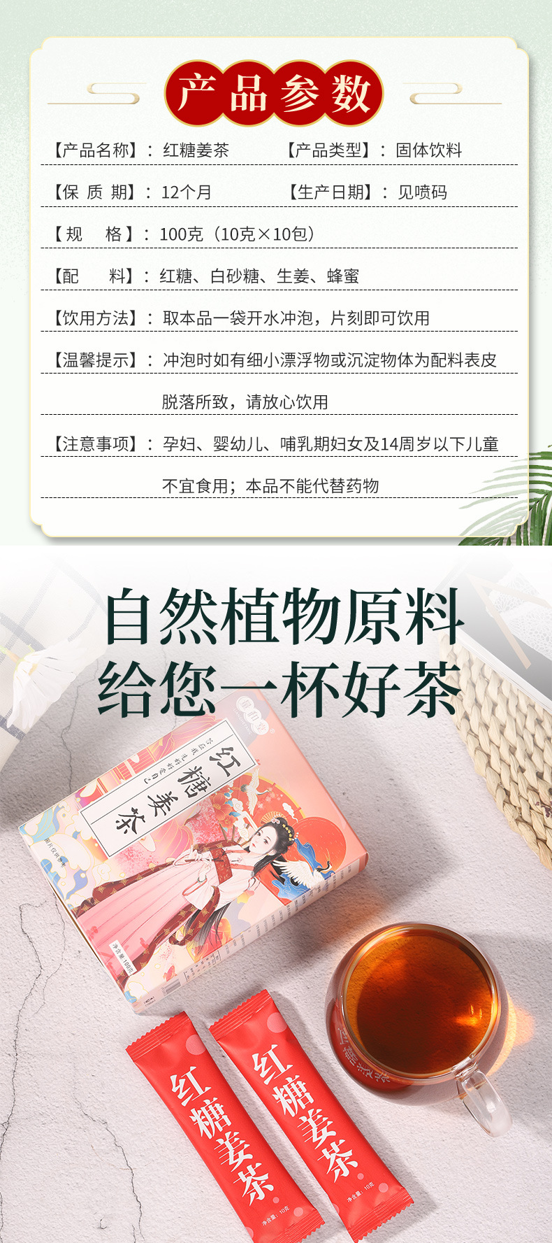 「拍1发3!19.9到手3盒」红糖姜茶黑糖姜枣茶 速溶颗粒固体饮料茶饮
