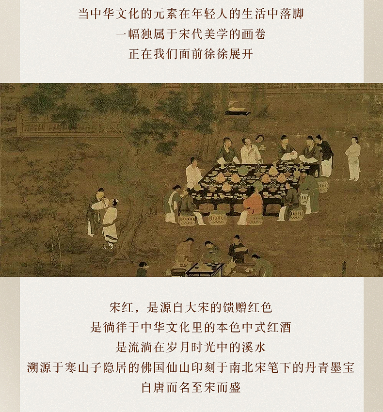 - 宋红,是源自大宋的馈赠 自唐而名,至宋而盛 宋红,年轻人的中国红酒!