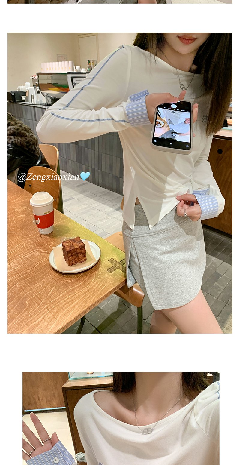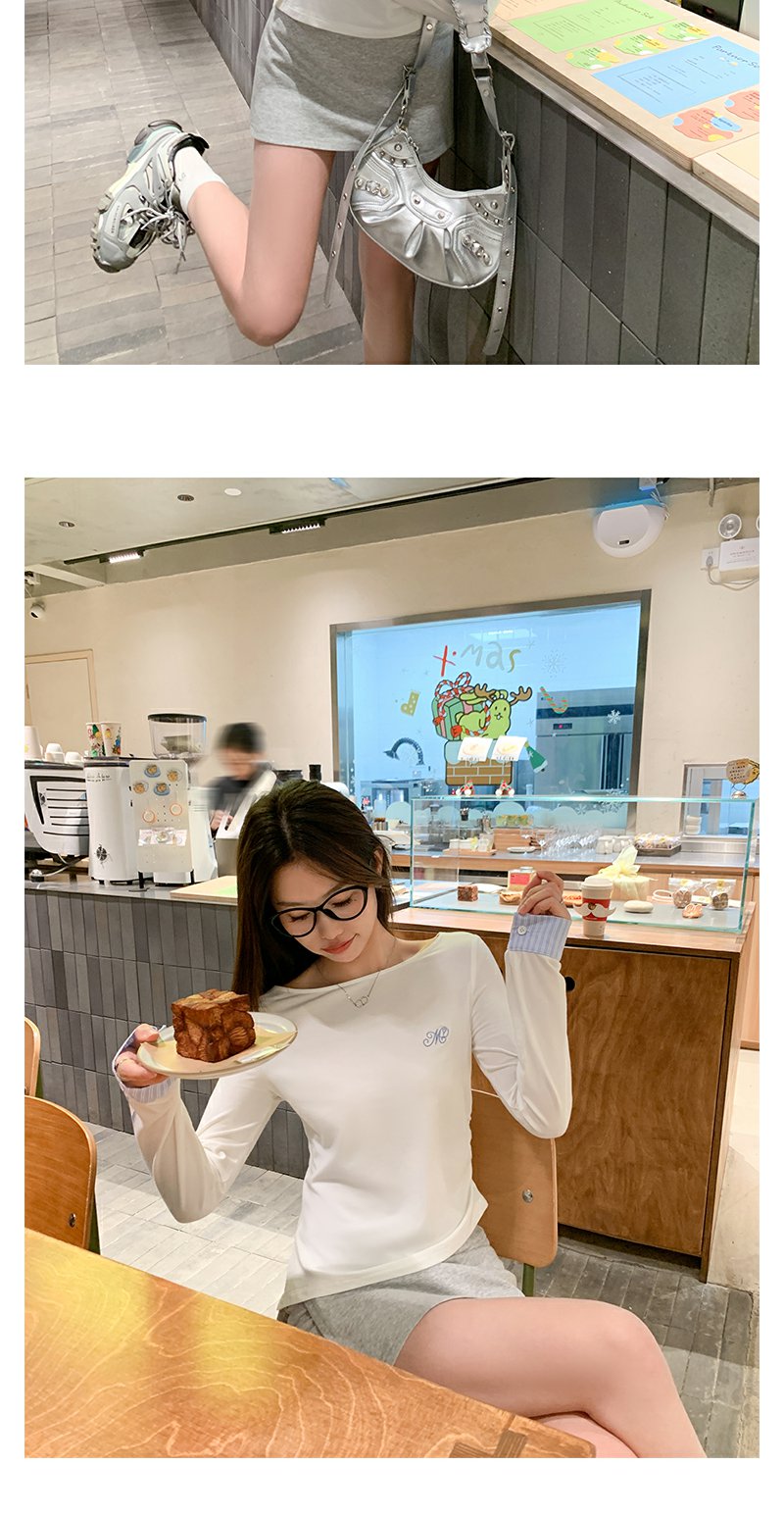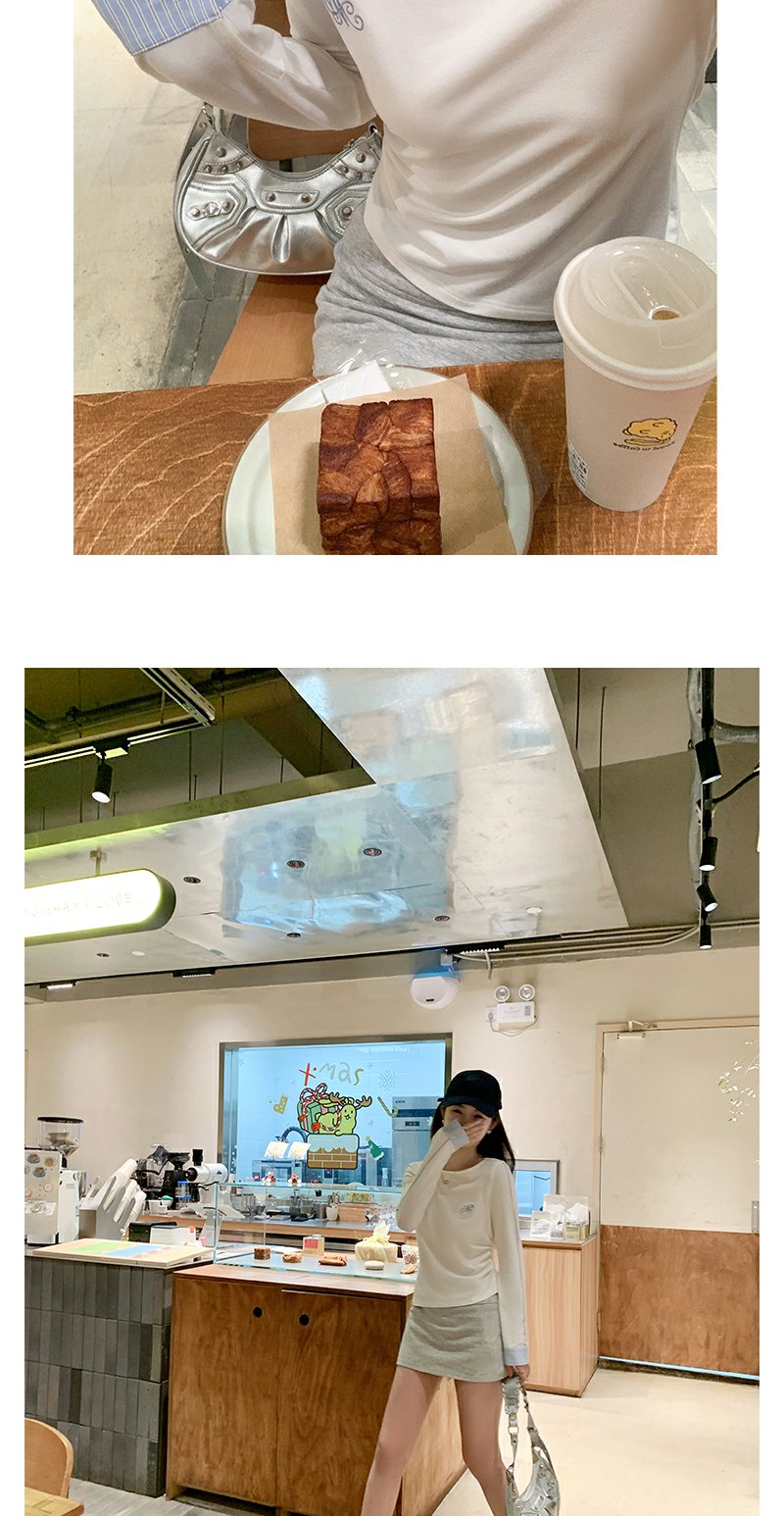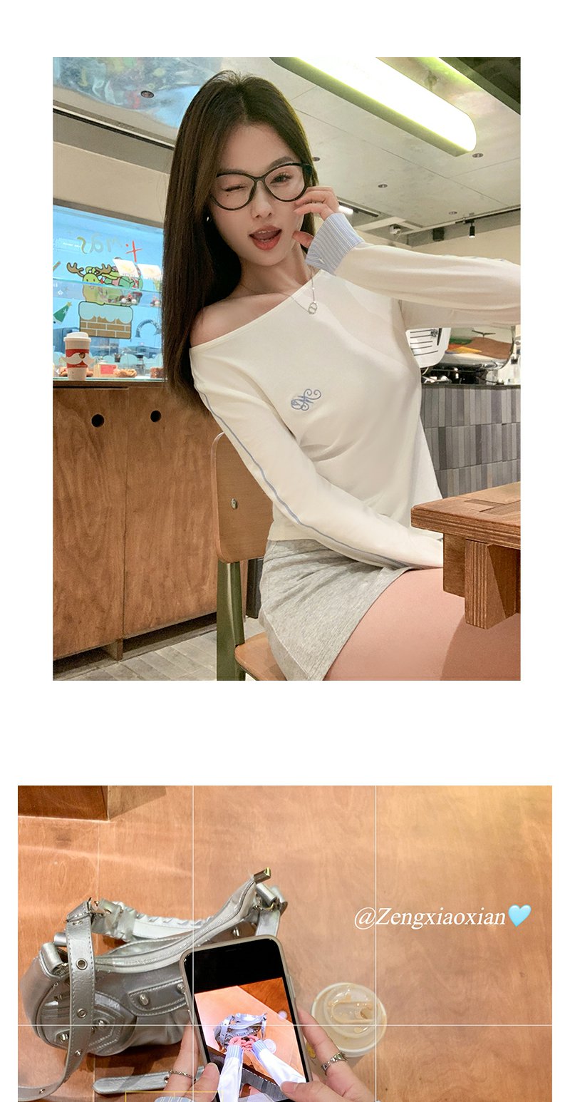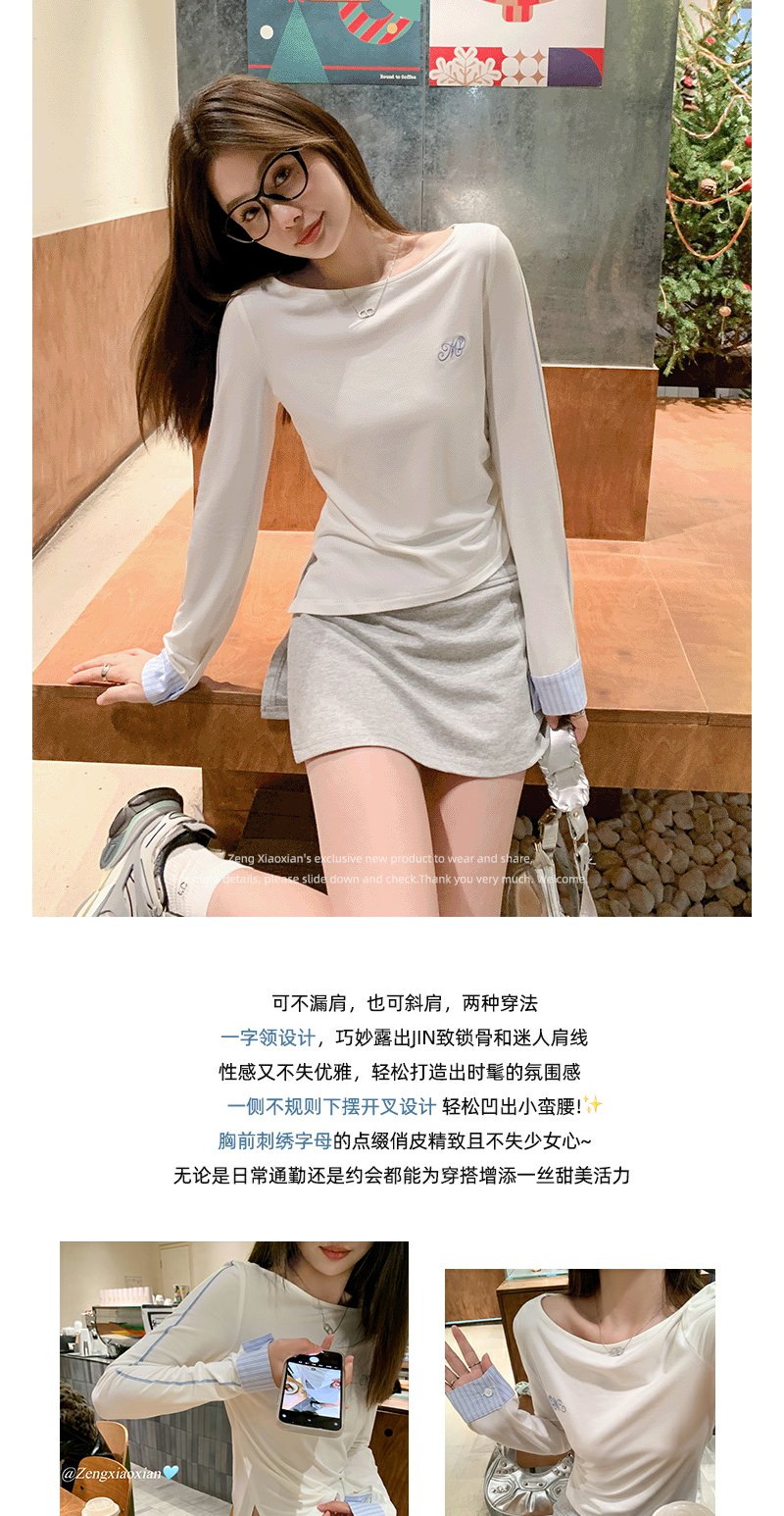 <曾小咸推荐>慵懒风米白色字母绣花一字领T恤