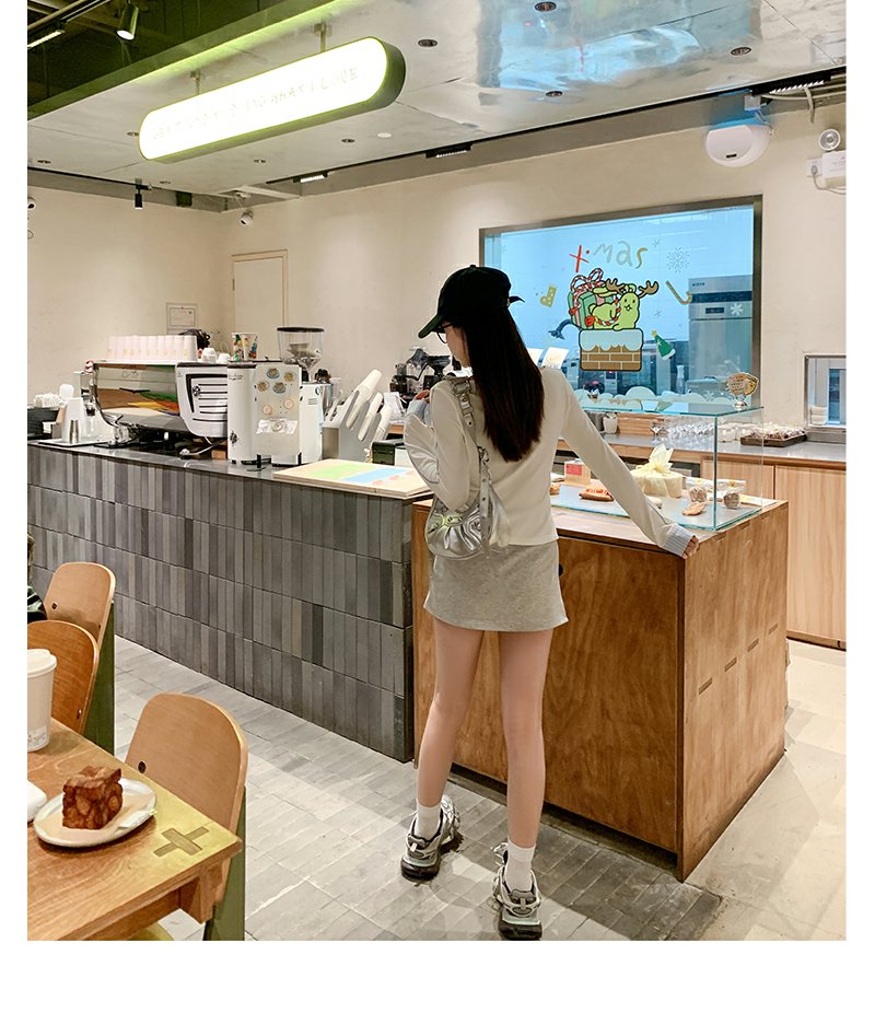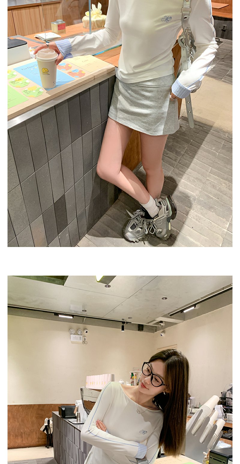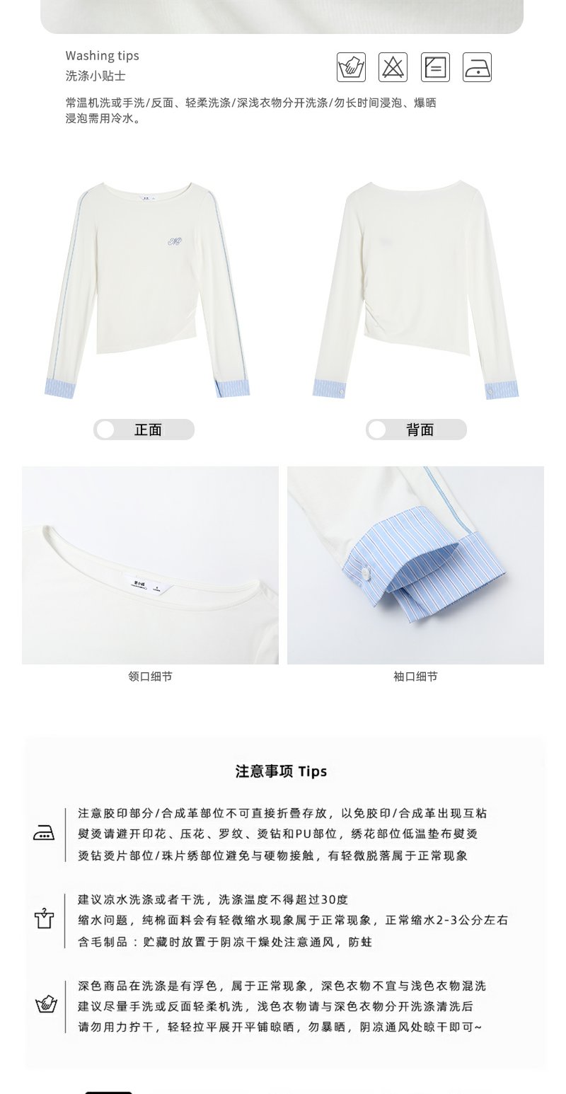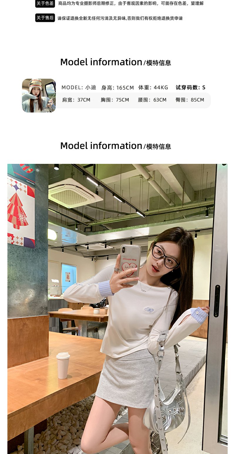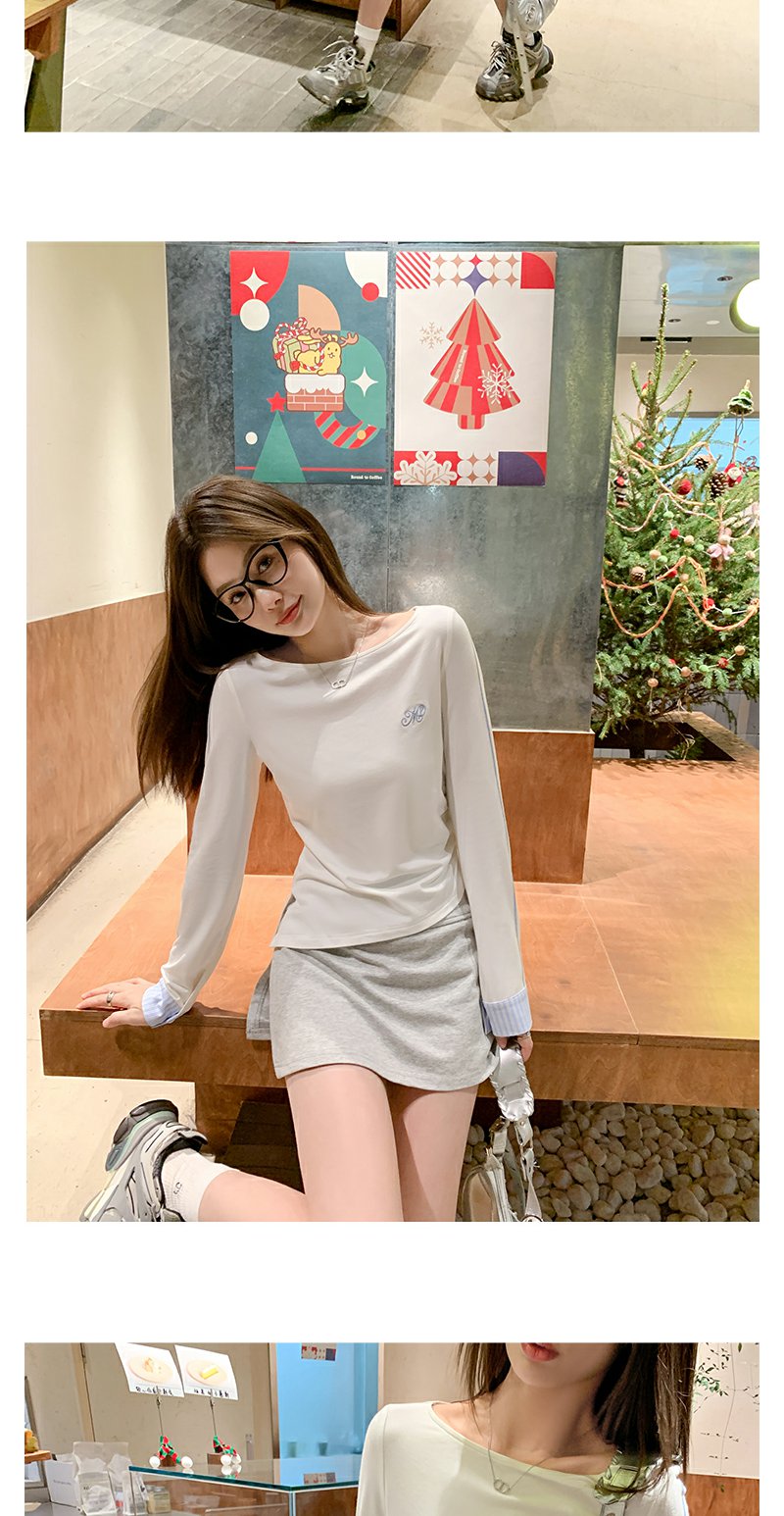 <曾小咸推荐>慵懒风米白色字母绣花一字领T恤