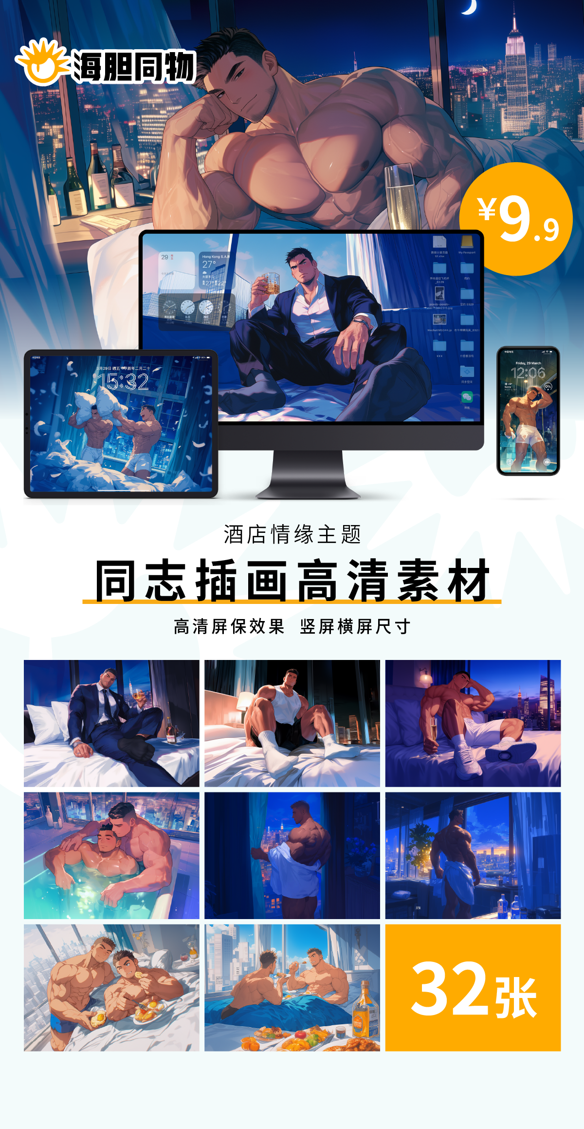【酒店情缘】海胆同志插画素材高清图包
