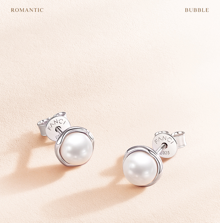 Fanci范琦珠光泡泡耳钉流光款贝珠耳饰送女友生日礼物