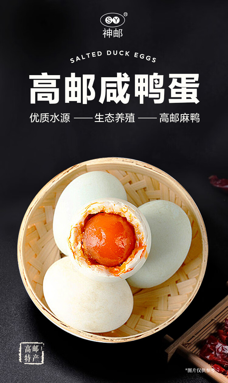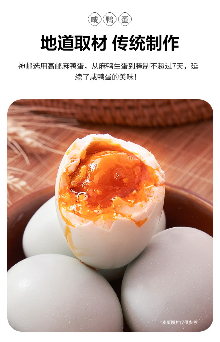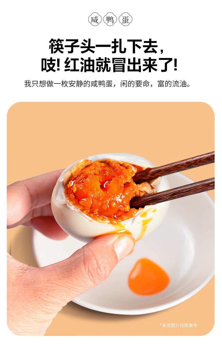神邮 高邮单黄6枚×60克 360g 简装即食流油咸蛋黄鸭蛋