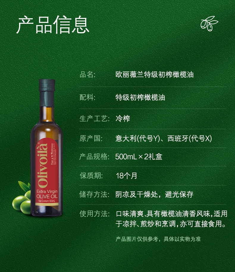 欧丽薇丨兰特级初榨橄榄油(红标) 500mL*2
