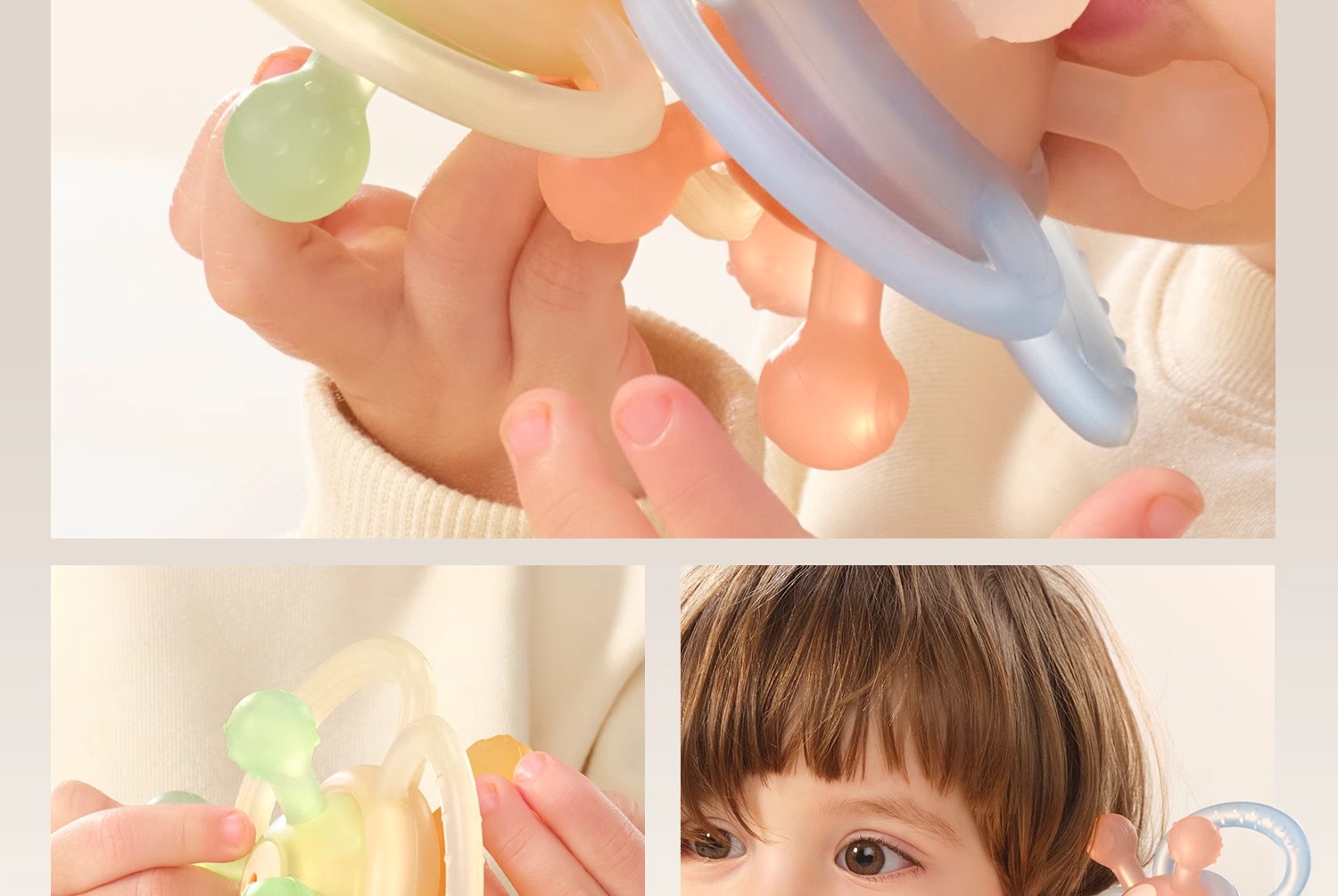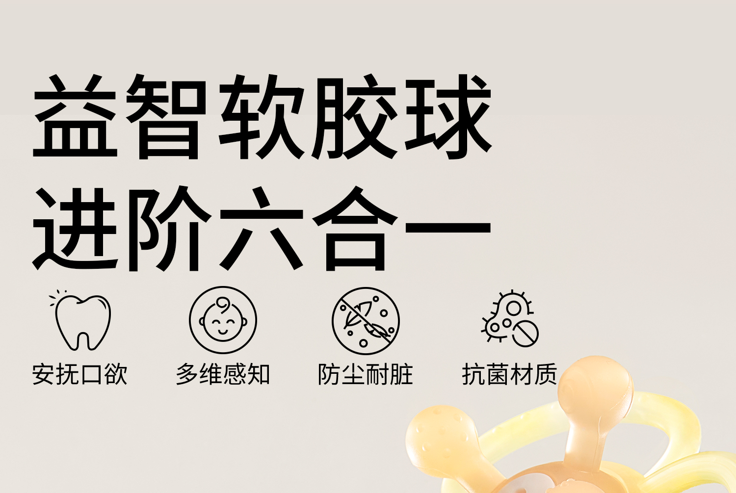 科巢曼哈顿手抓球婴儿玩具硅胶可咬牙胶小宝宝3到6个月握磨0一1岁