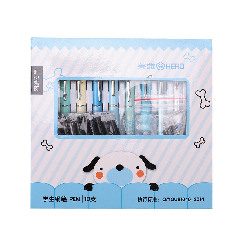 HERO英雄学生钢笔 10支装礼盒套装 送墨囊 笔尖儿童书法练字 开学季必备 送同学礼物