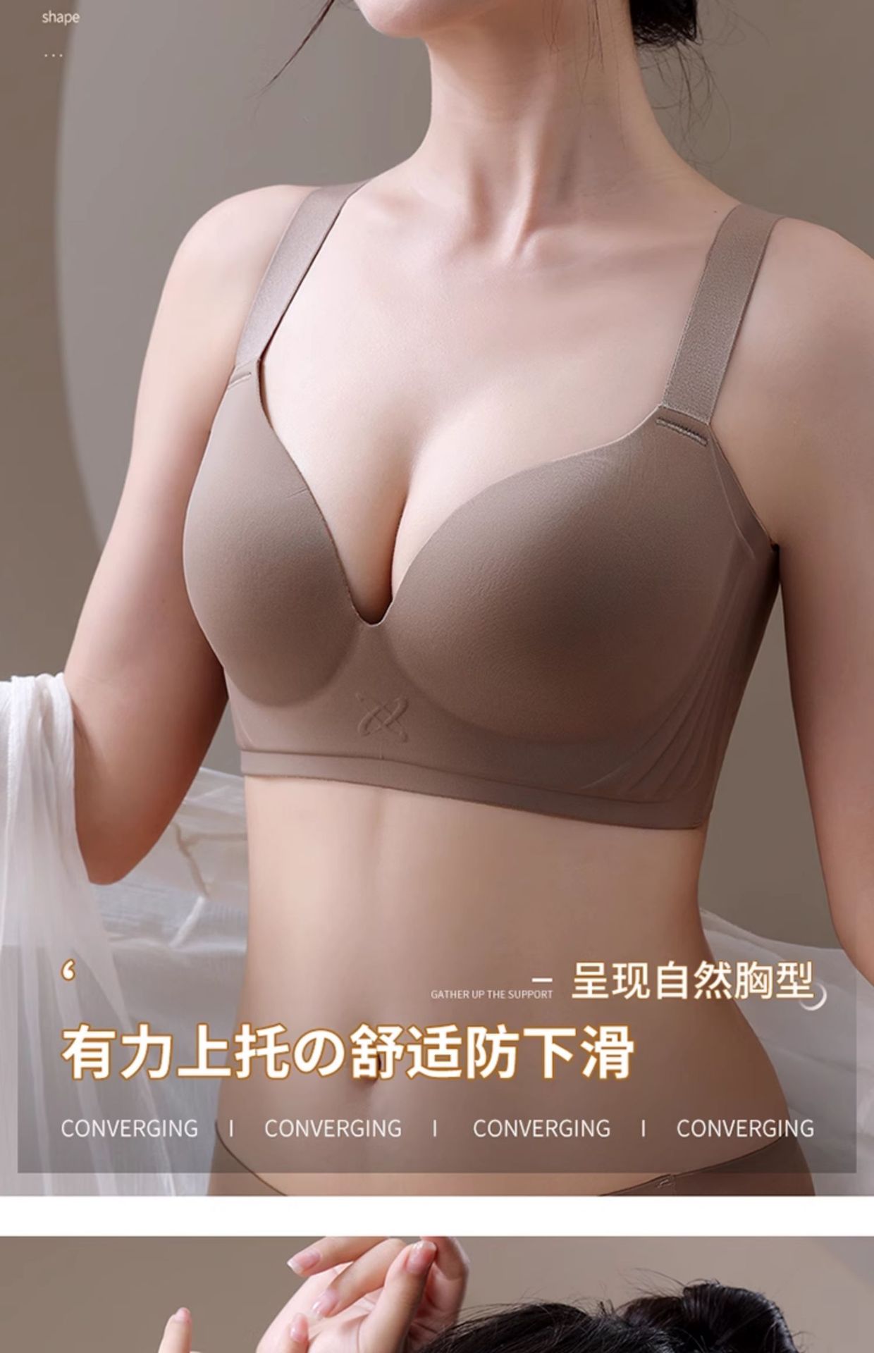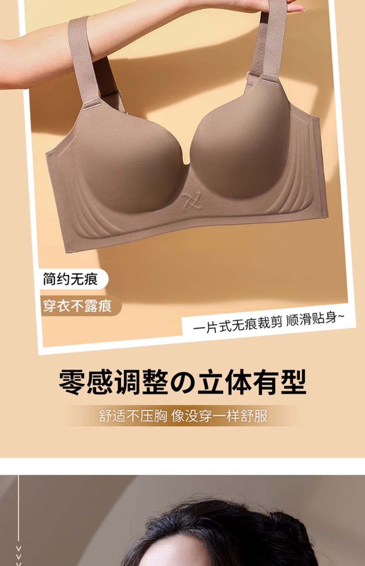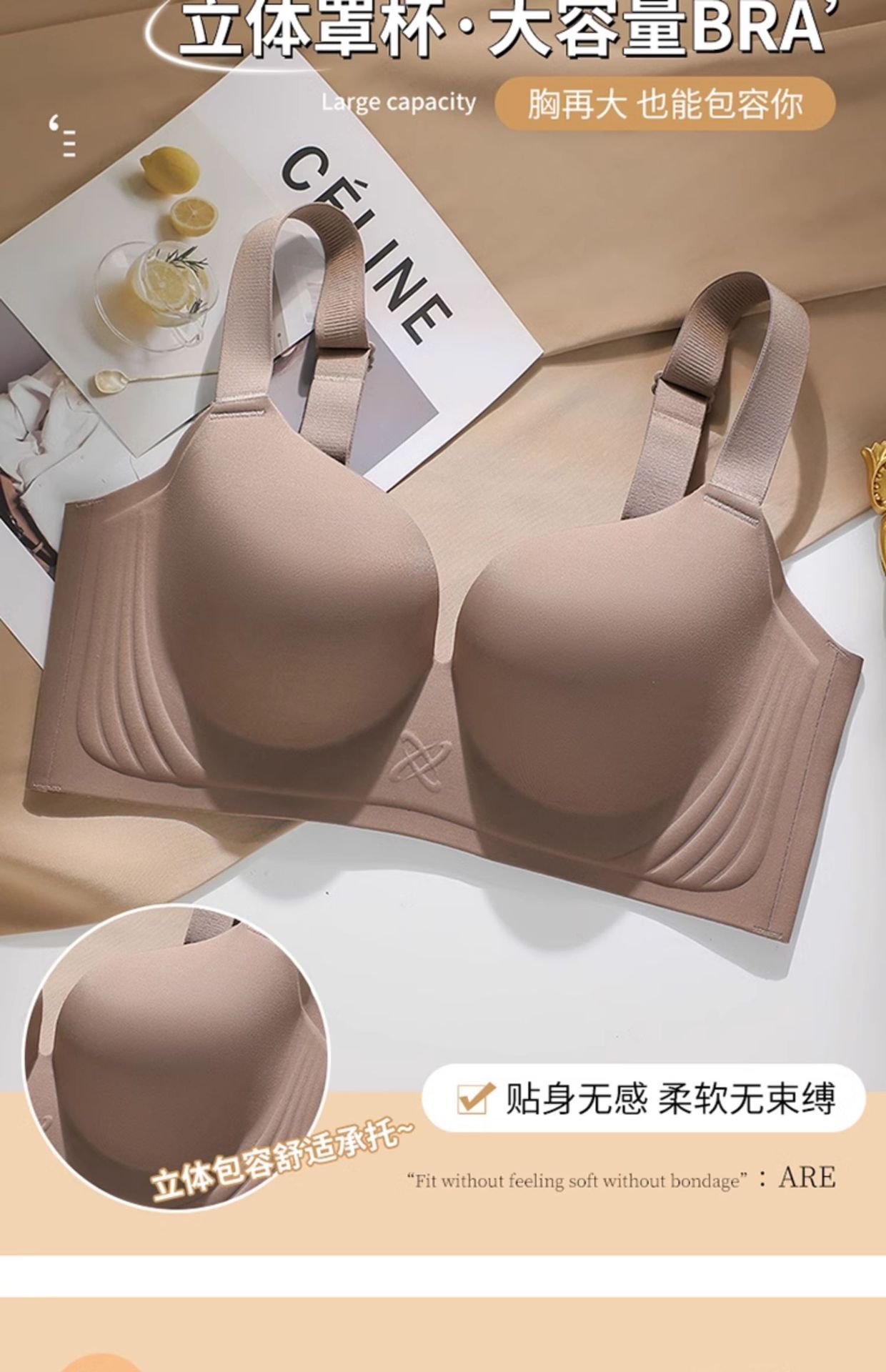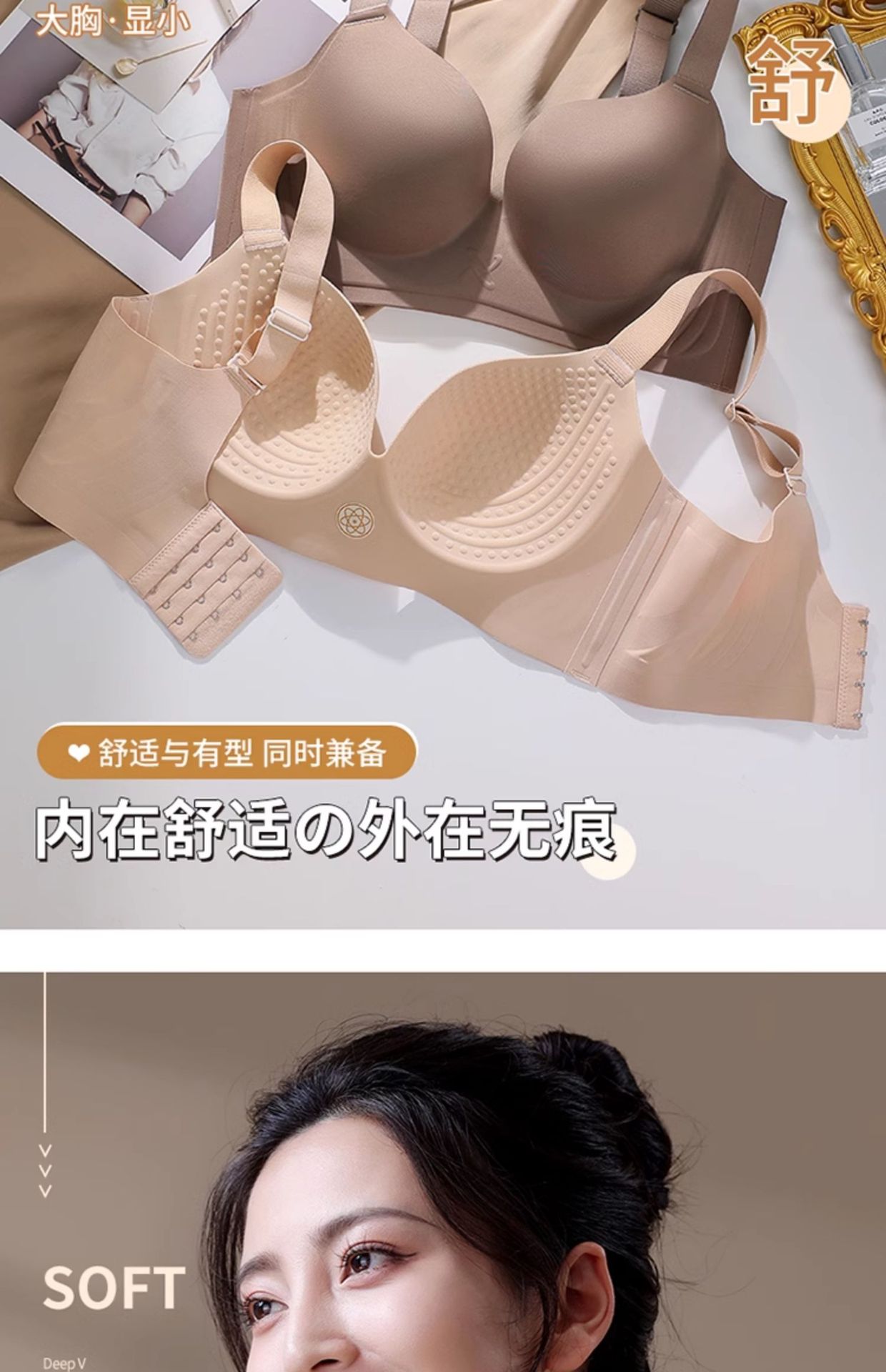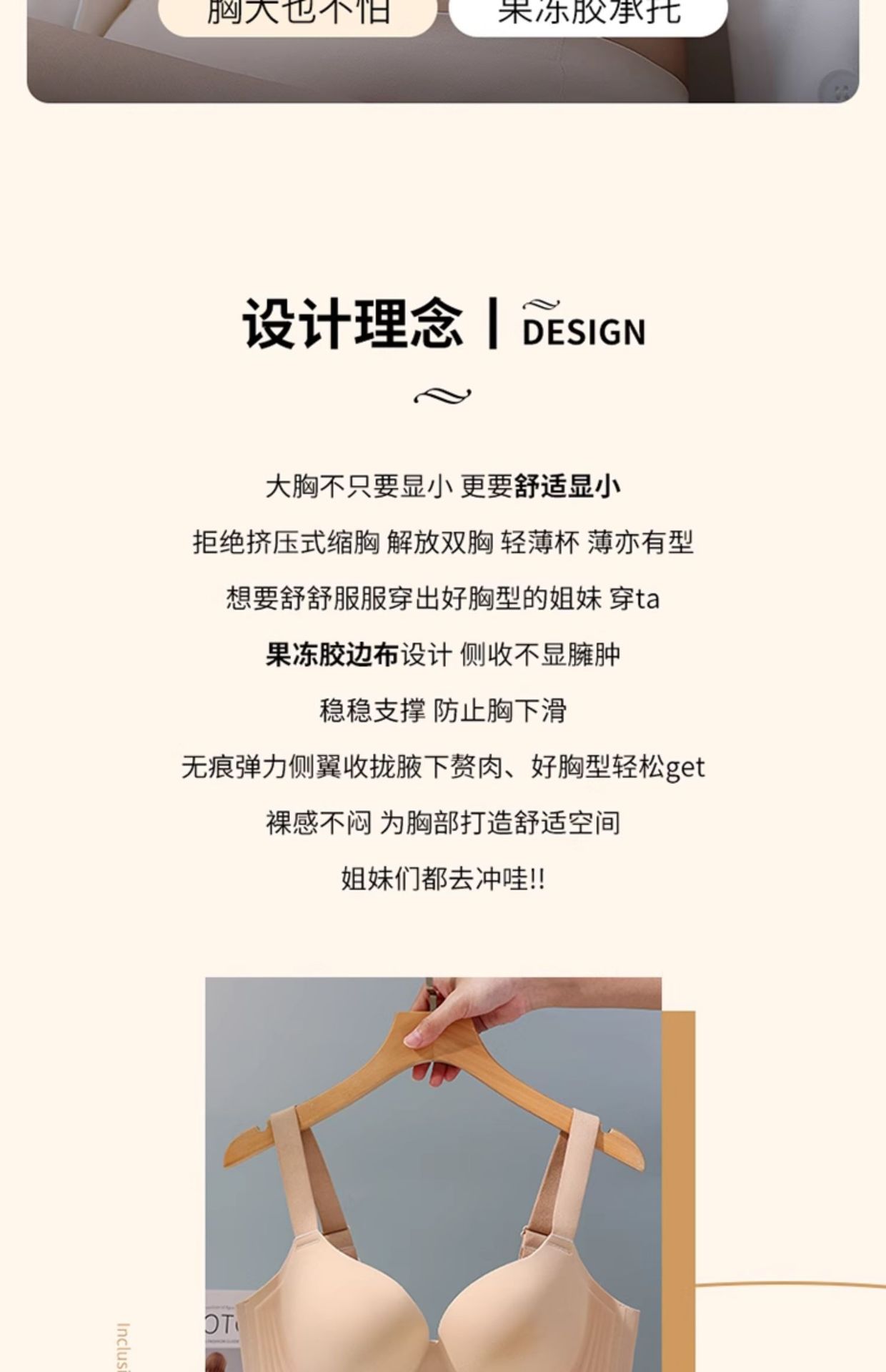 大胸专用内衣 大码无痕内衣女薄款大胸显小聚拢文胸上托收副乳调整型一片式大码胸罩