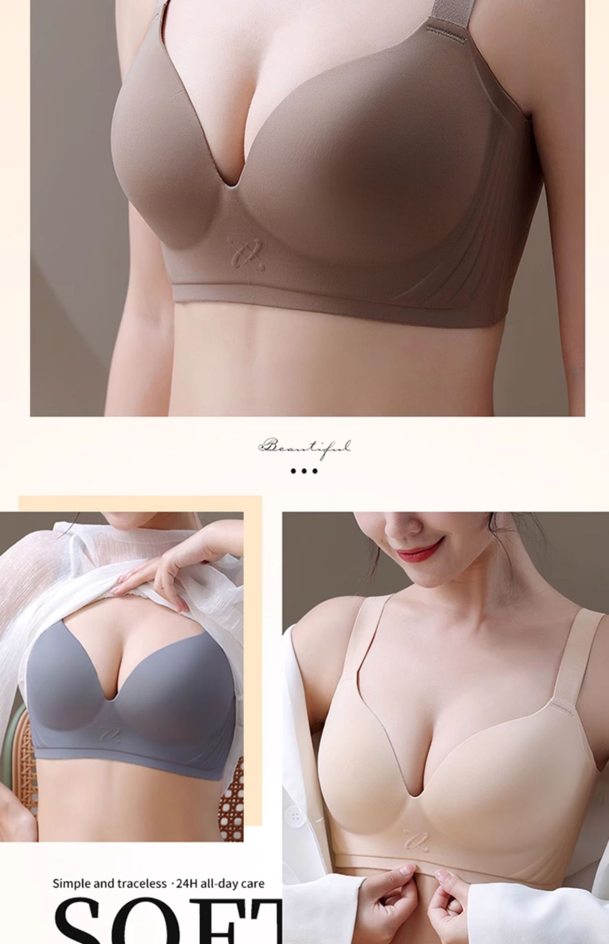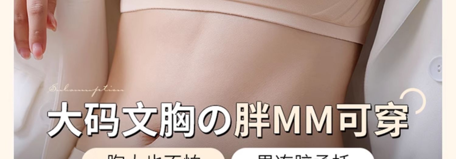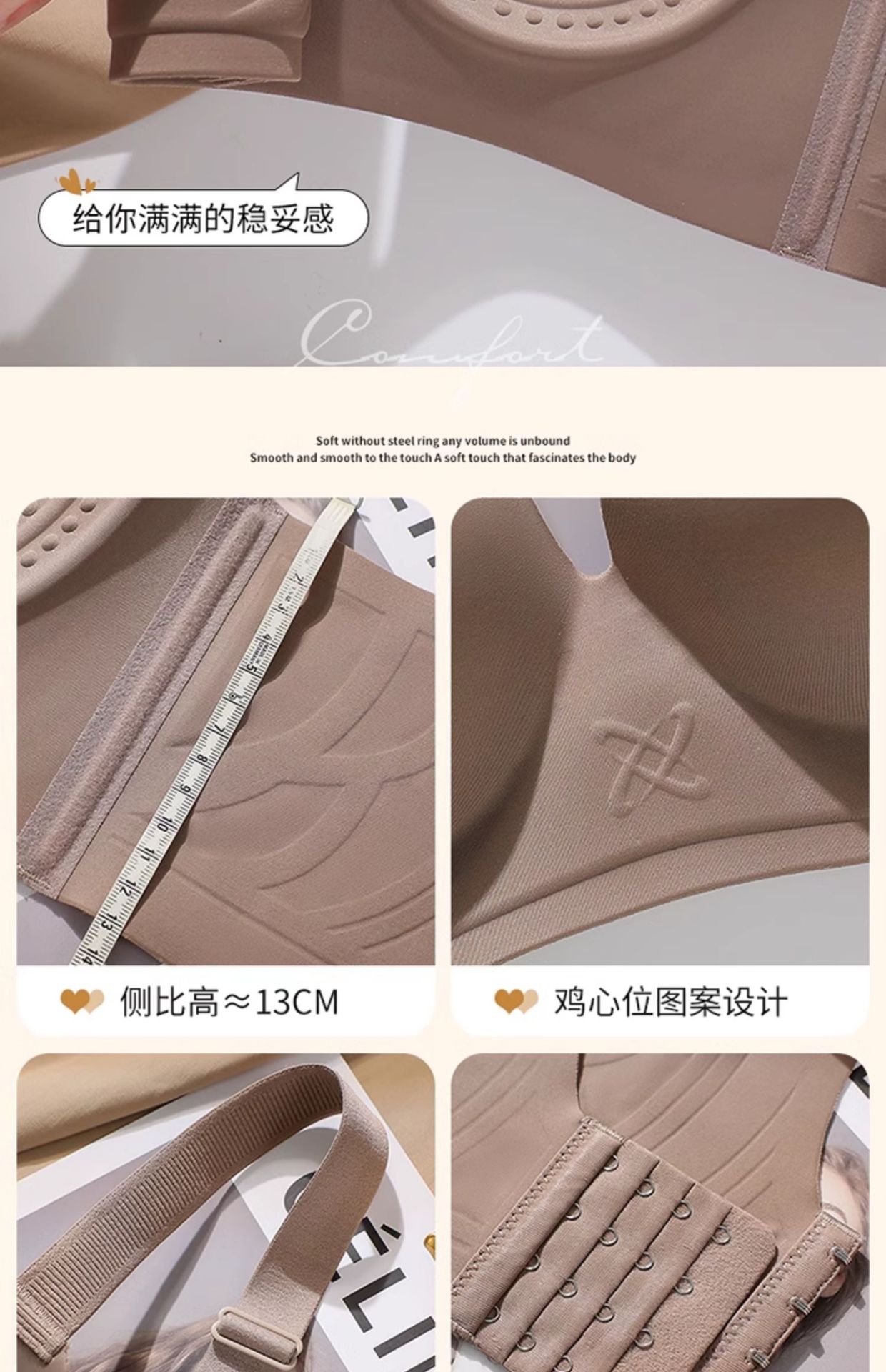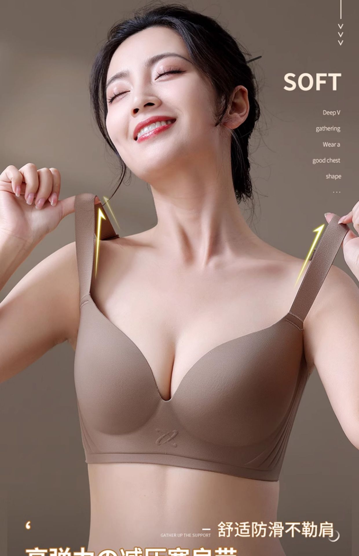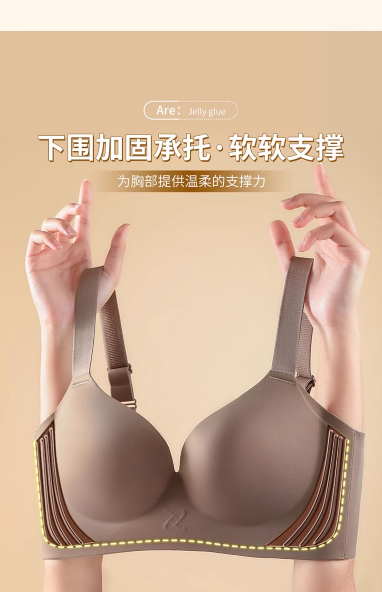 大胸专用内衣 大码无痕内衣女薄款大胸显小聚拢文胸上托收副乳调整型一片式大码胸罩